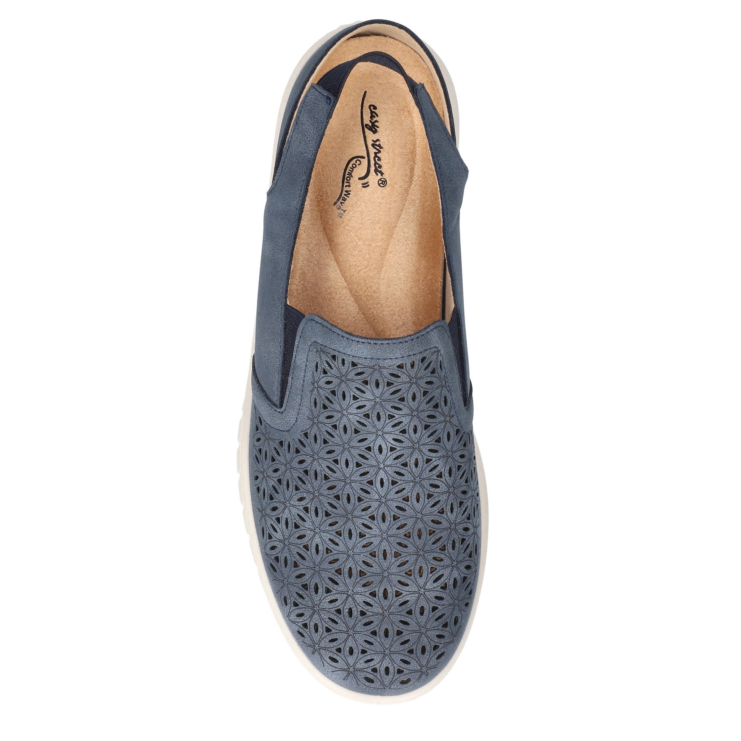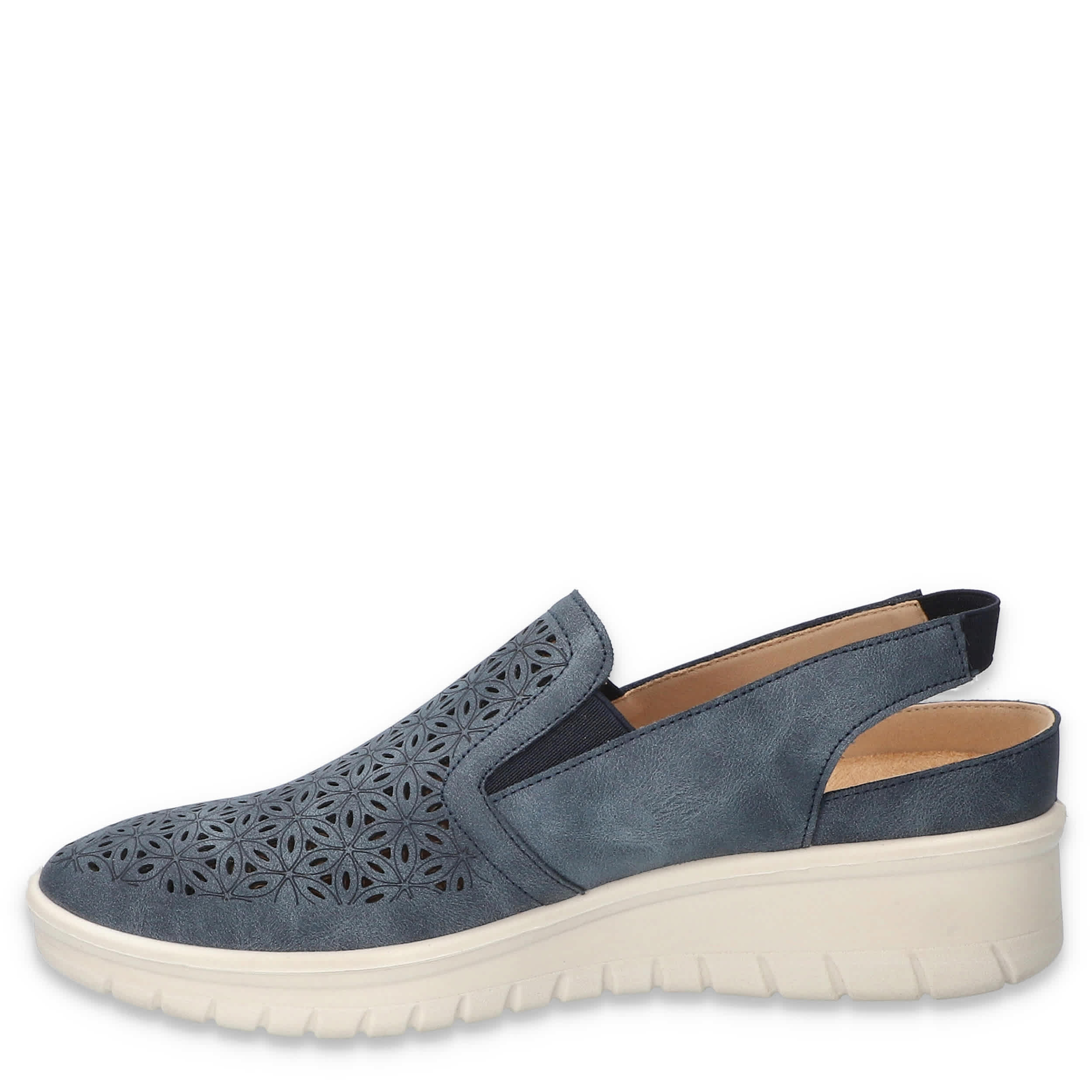 Hop into spring in style with the Easy Street Petal Wedge slip-on sneaker. Featuring a modern perfed upper and elastic inserts, this Comfort Wave slingback is a casual staple you need in your closet. The ultra-light Easy Motion by Easy Street insole cushions, while the wedge heel offers flexible lift.