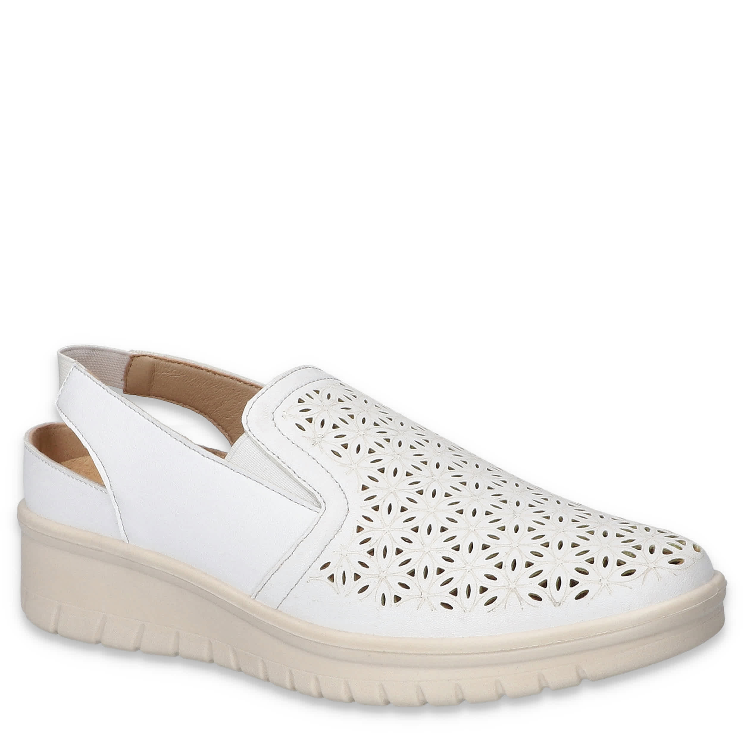 Hop into spring in style with the Easy Street Petal Wedge slip-on sneaker. Featuring a modern perfed upper and elastic inserts, this Comfort Wave slingback is a casual staple you need in your closet. The ultra-light Easy Motion by Easy Street insole cushions, while the wedge heel offers flexible lift.