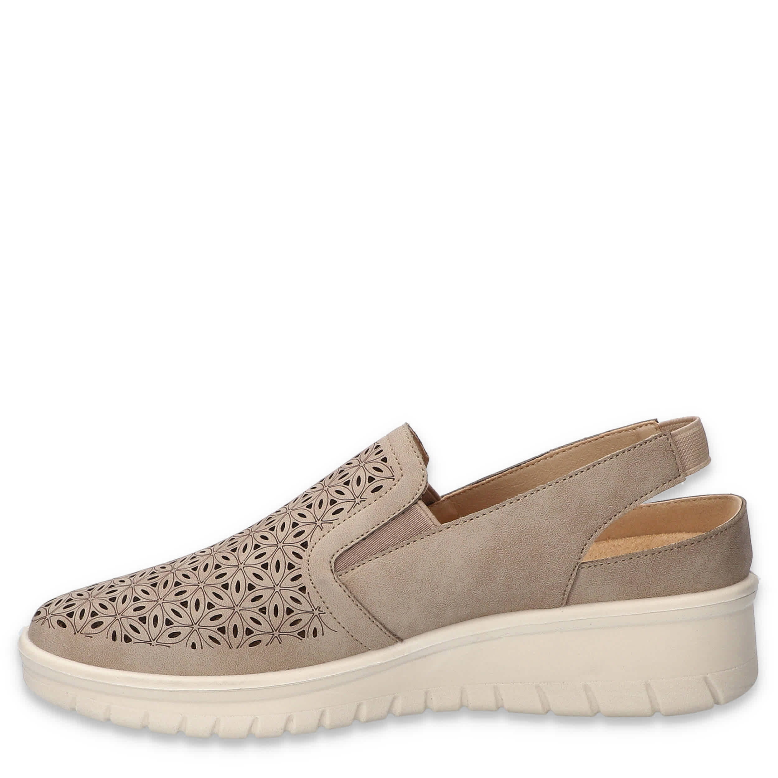 Hop into spring in style with the Easy Street Petal Wedge slip-on sneaker. Featuring a modern perfed upper and elastic inserts, this Comfort Wave slingback is a casual staple you need in your closet. The ultra-light Easy Motion by Easy Street insole cushions, while the wedge heel offers flexible lift.