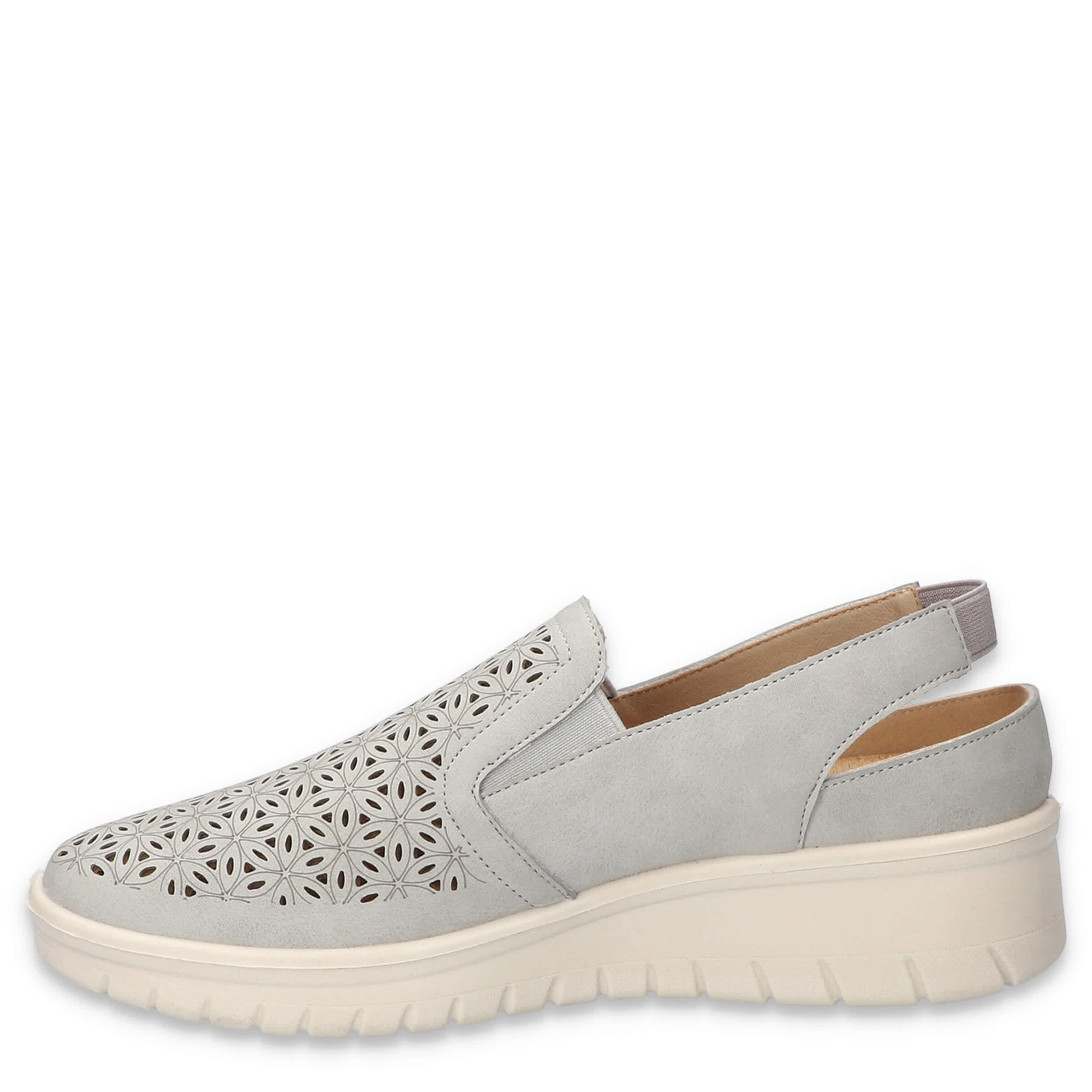 Hop into spring in style with the Easy Street Petal Wedge slip-on sneaker. Featuring a modern perfed upper and elastic inserts, this Comfort Wave slingback is a casual staple you need in your closet. The ultra-light Easy Motion by Easy Street insole cushions, while the wedge heel offers flexible lift.
