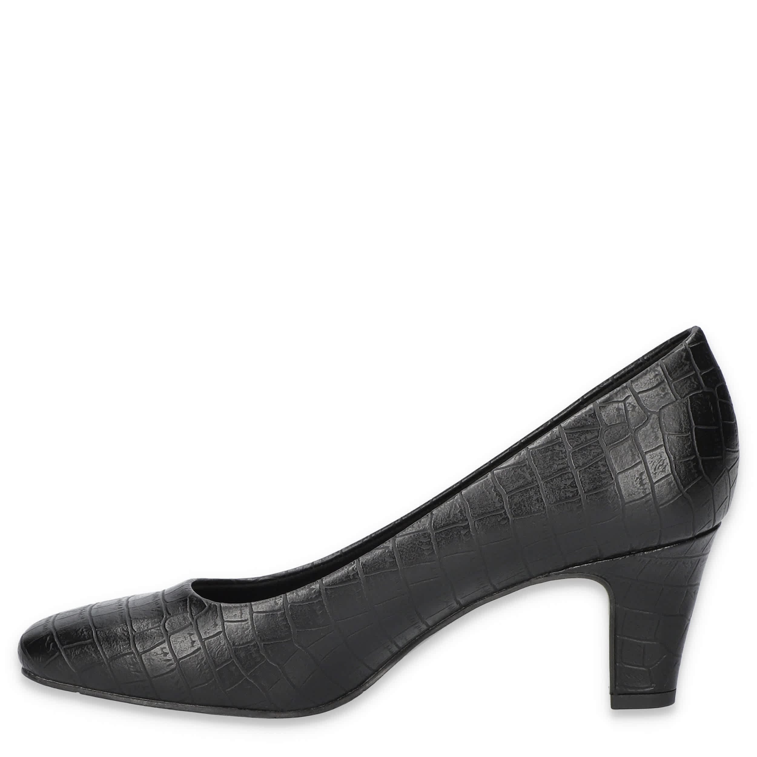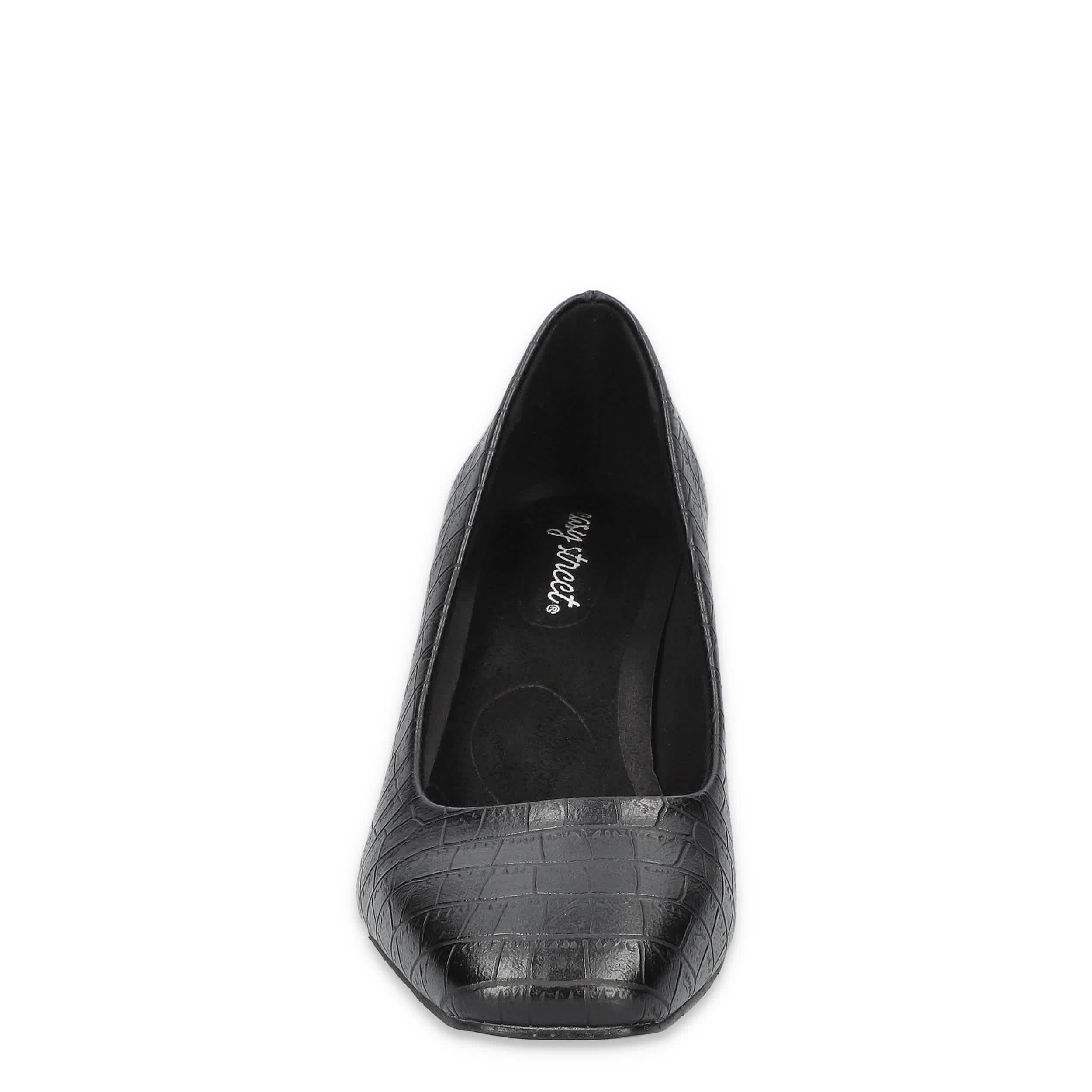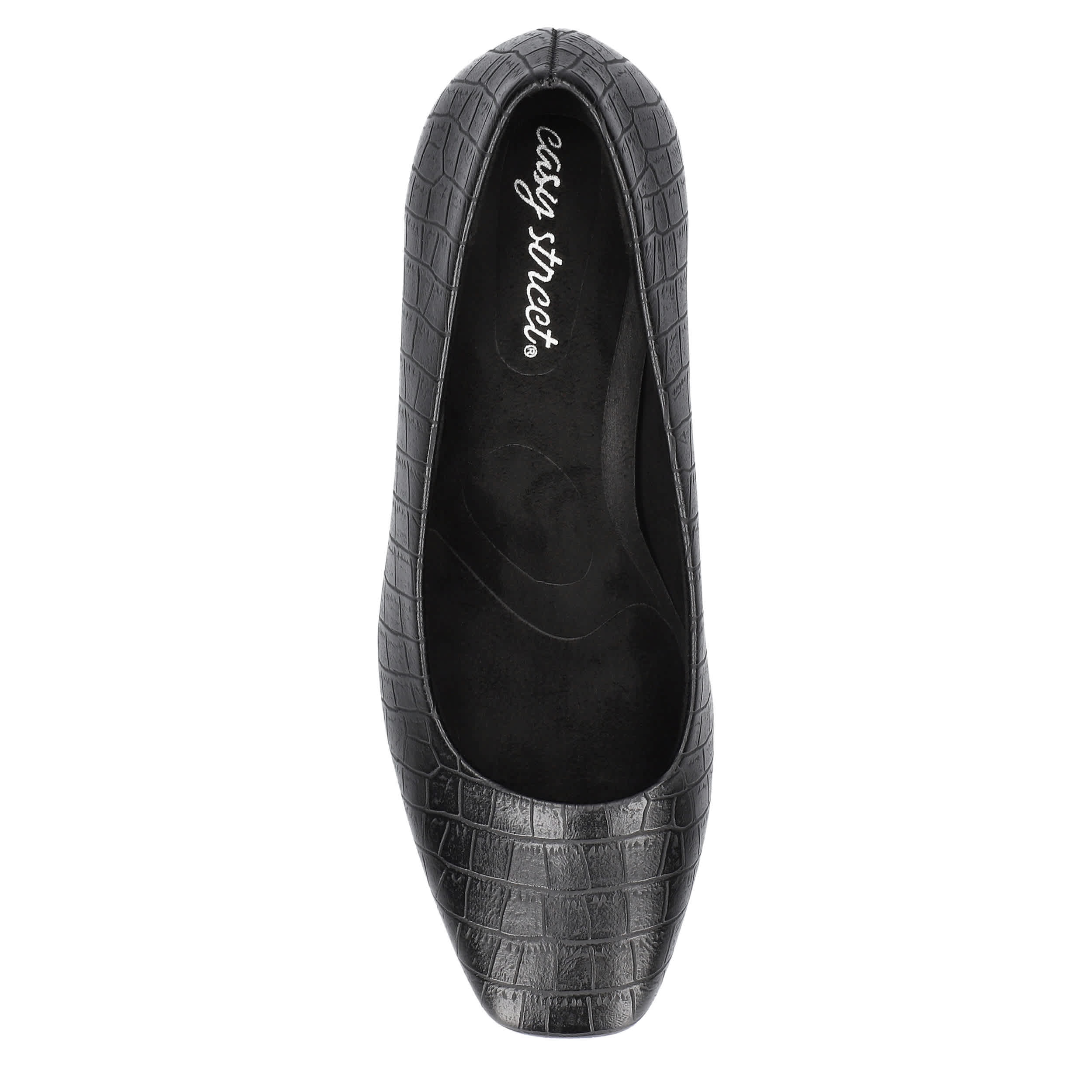 Turn your fashion into beatiful art with the Poet women's pump from Easy Street. Featuring a crocodile print-embossed faux leather upper with a square toe for on-trend appeal, this slip-on is versatile enough to work in office or for events. The insole cushions your steps while the sturdy heel offers just enough lift to elevate your look.