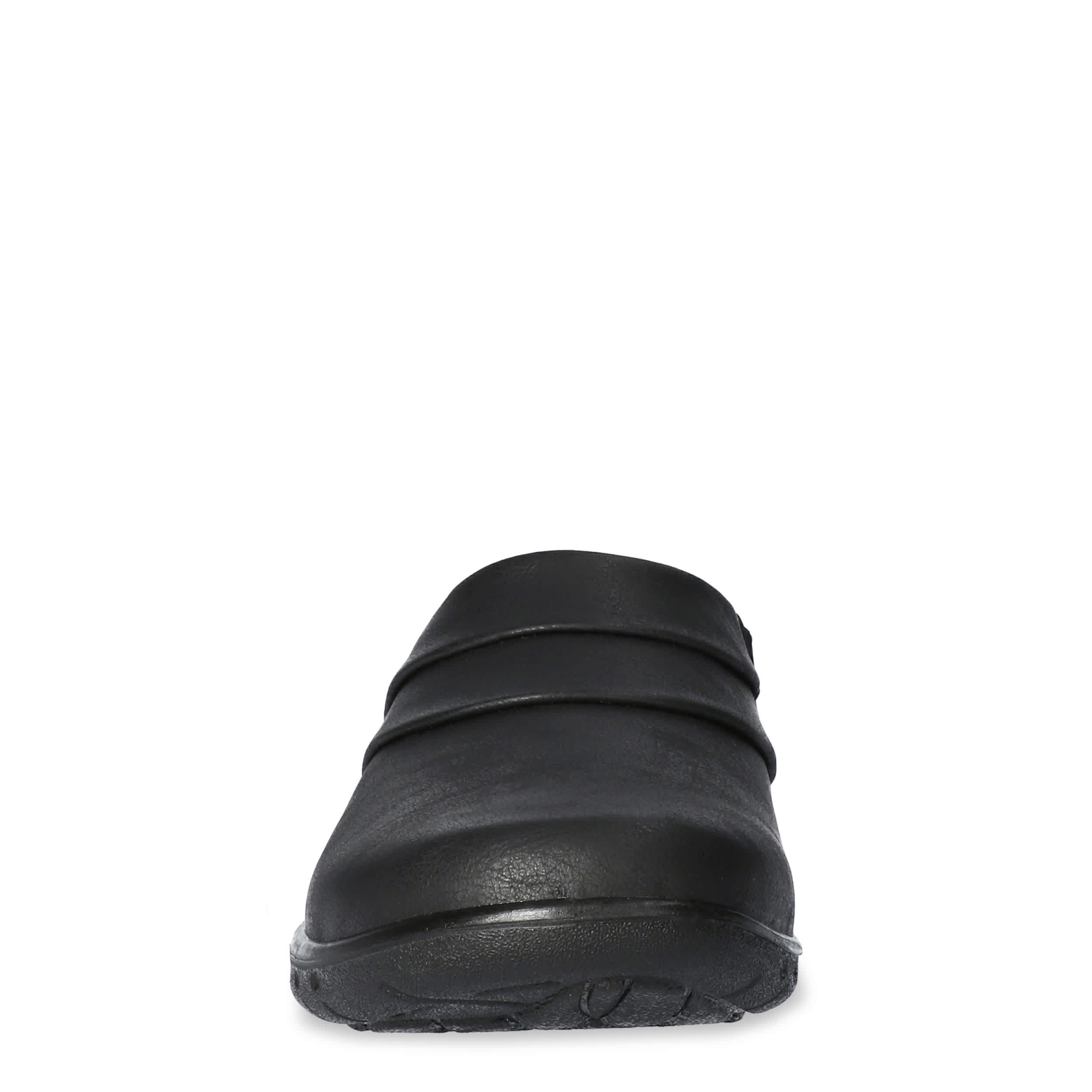 You'll reach for the simply chic Easy Street Swing women's clog again and again. With a faux leather upper and pleated overlay, this slip-on mule is so comfy that it will become a wardrobe staple. The padded footbed offers cushioning while the synthetic outsole provides stability.