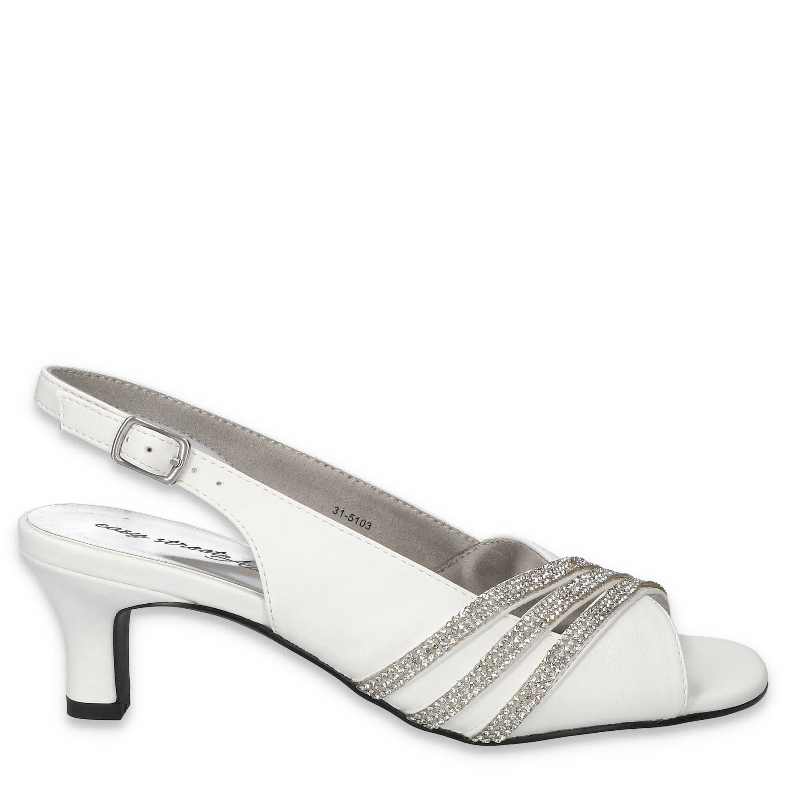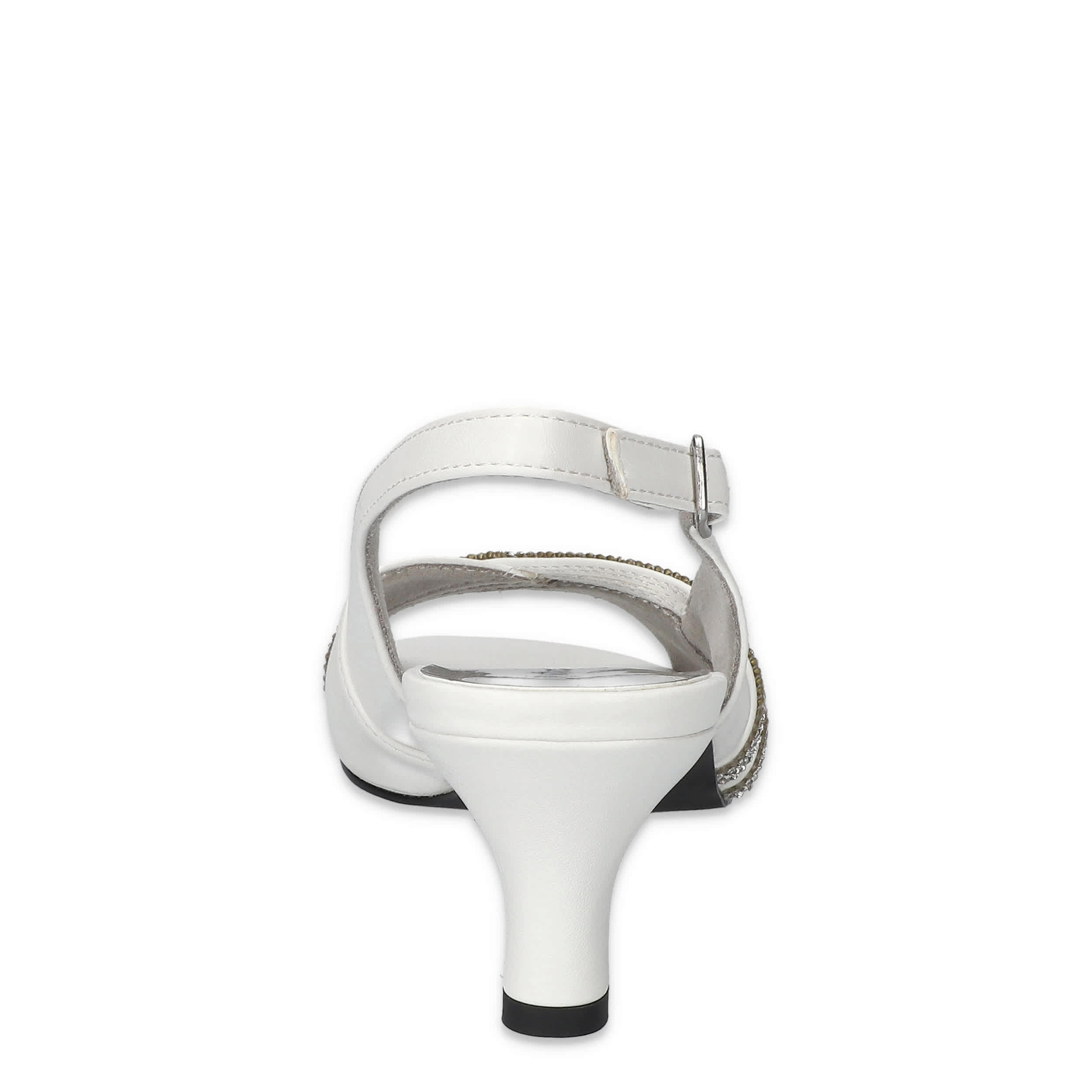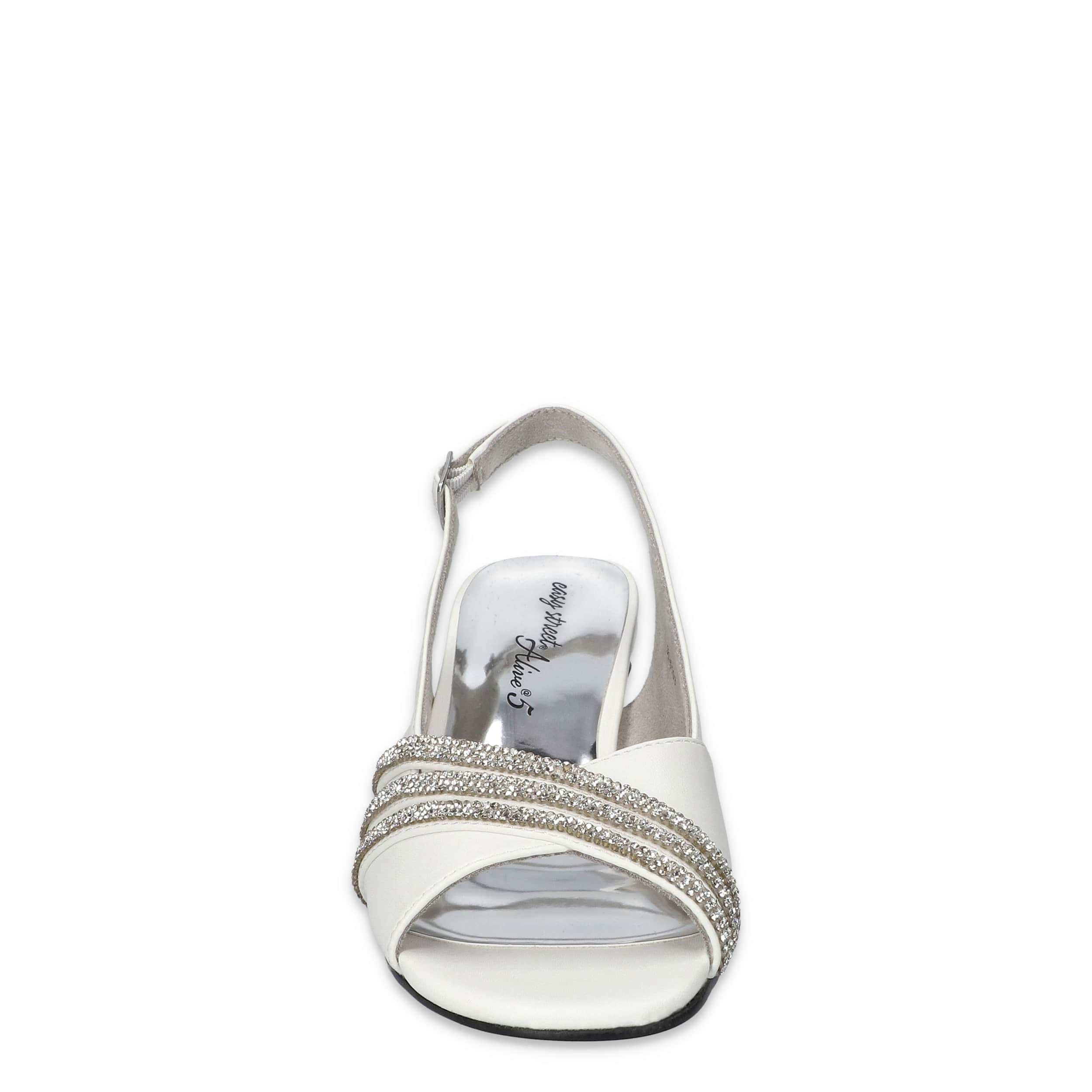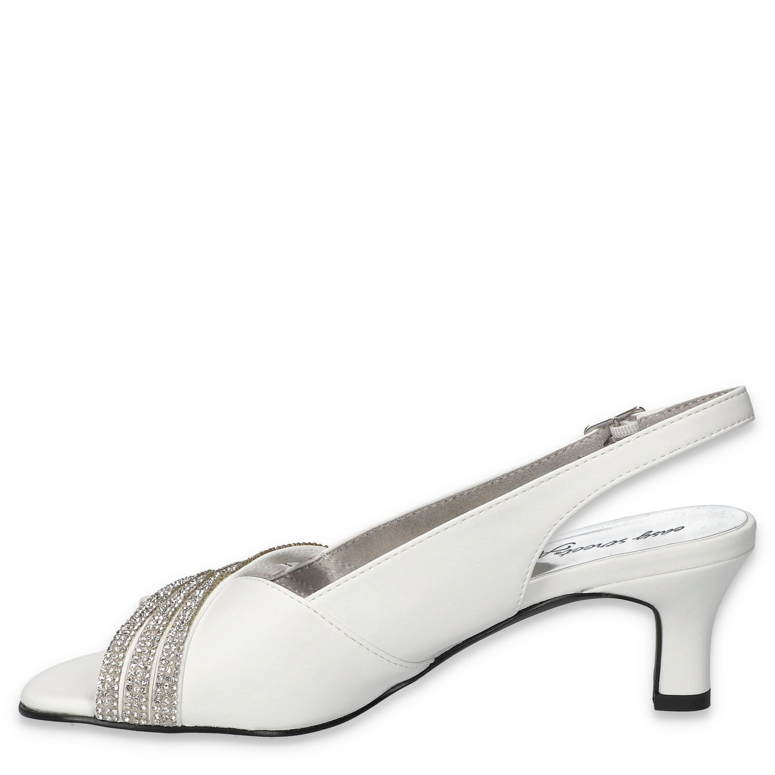 Be ready for the good in the Teton women's pump from Easy Street. With a flattering overlay pattern featuring rhinestones, this slingback pump is perfect for summer nights in the city. The footbed soothes, while the low heel adds stable lift.