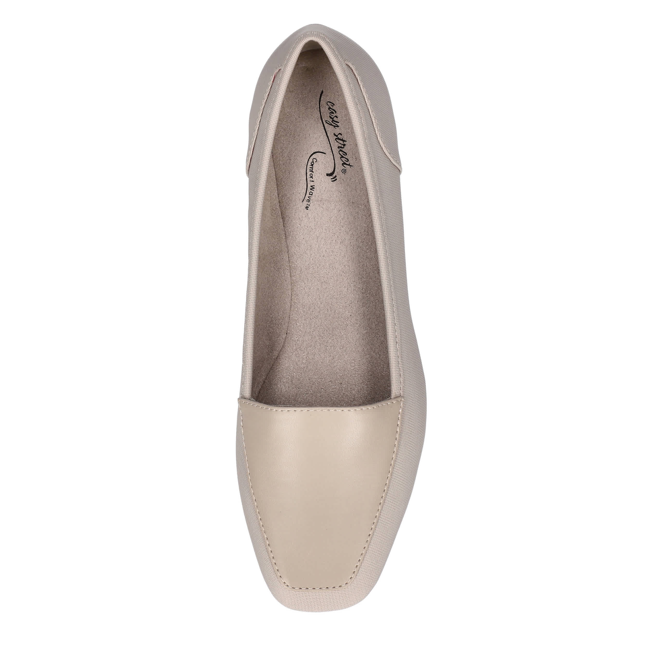 Highlight a casual-chic look with the Thrill women's loafer from Easy Street. With a synthetic and linen upper featuring a flattering square-toe design, this trendy loafer is guaranteed to class up any outfit. Comfort Wave construction with a cushioned footbed provides support for hours of wear.