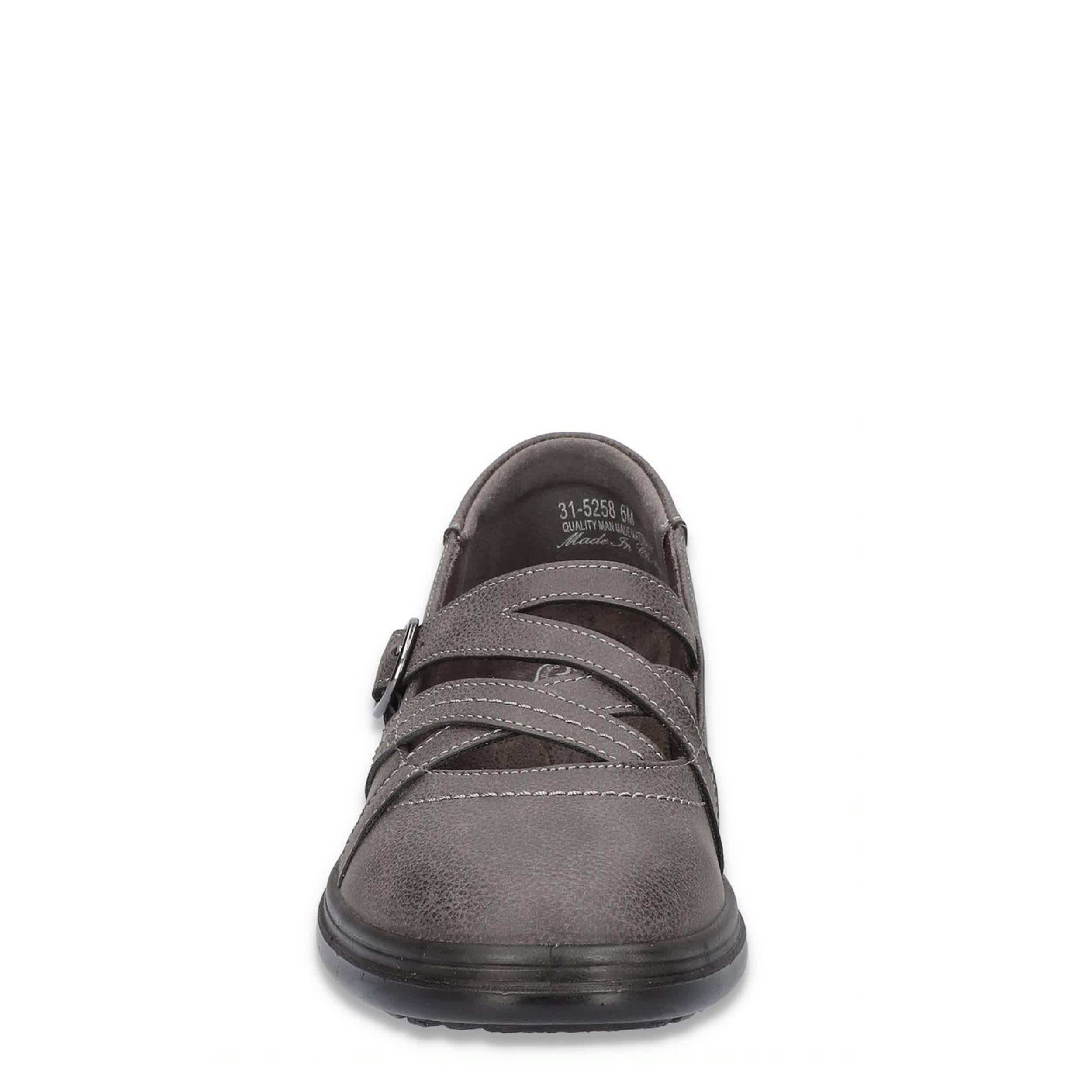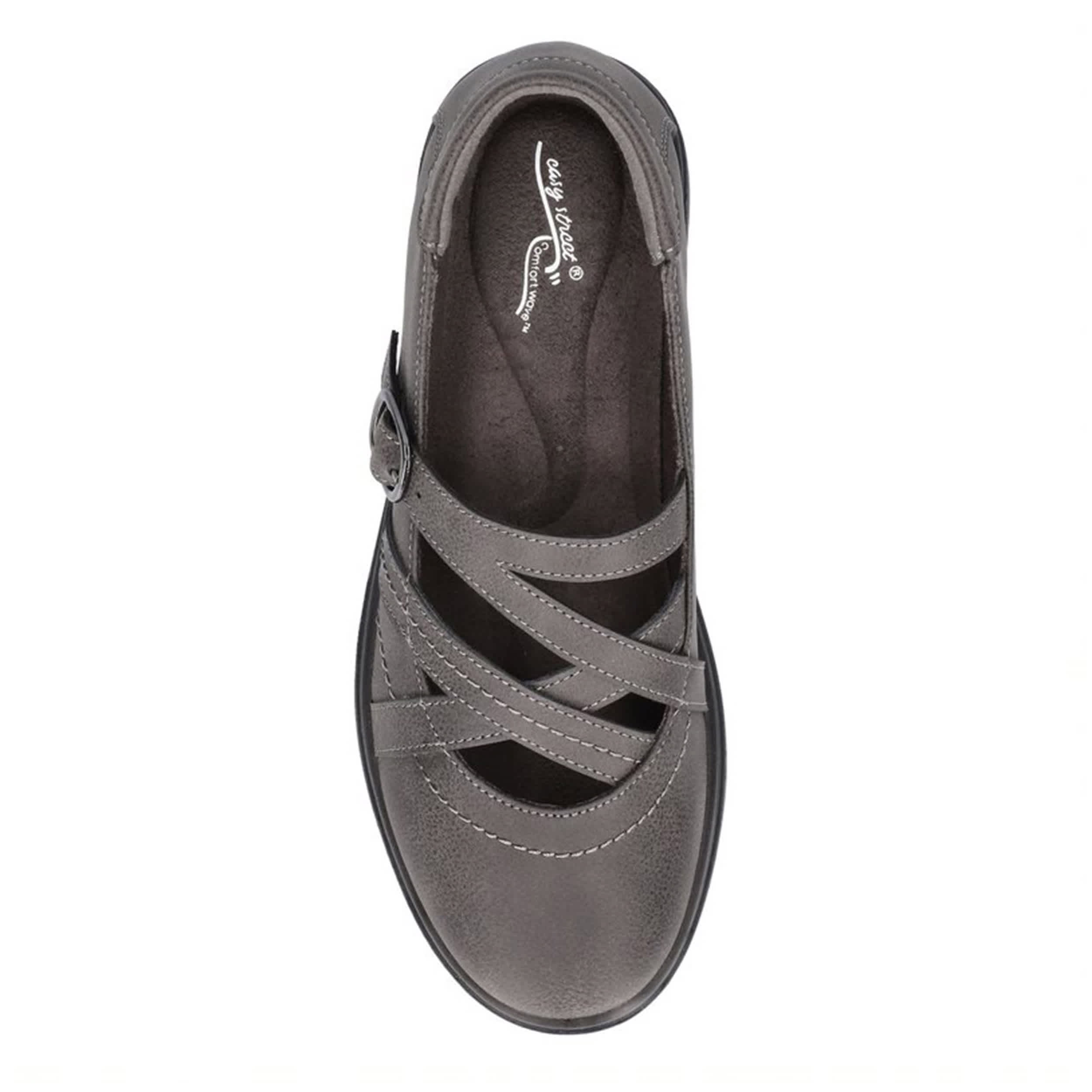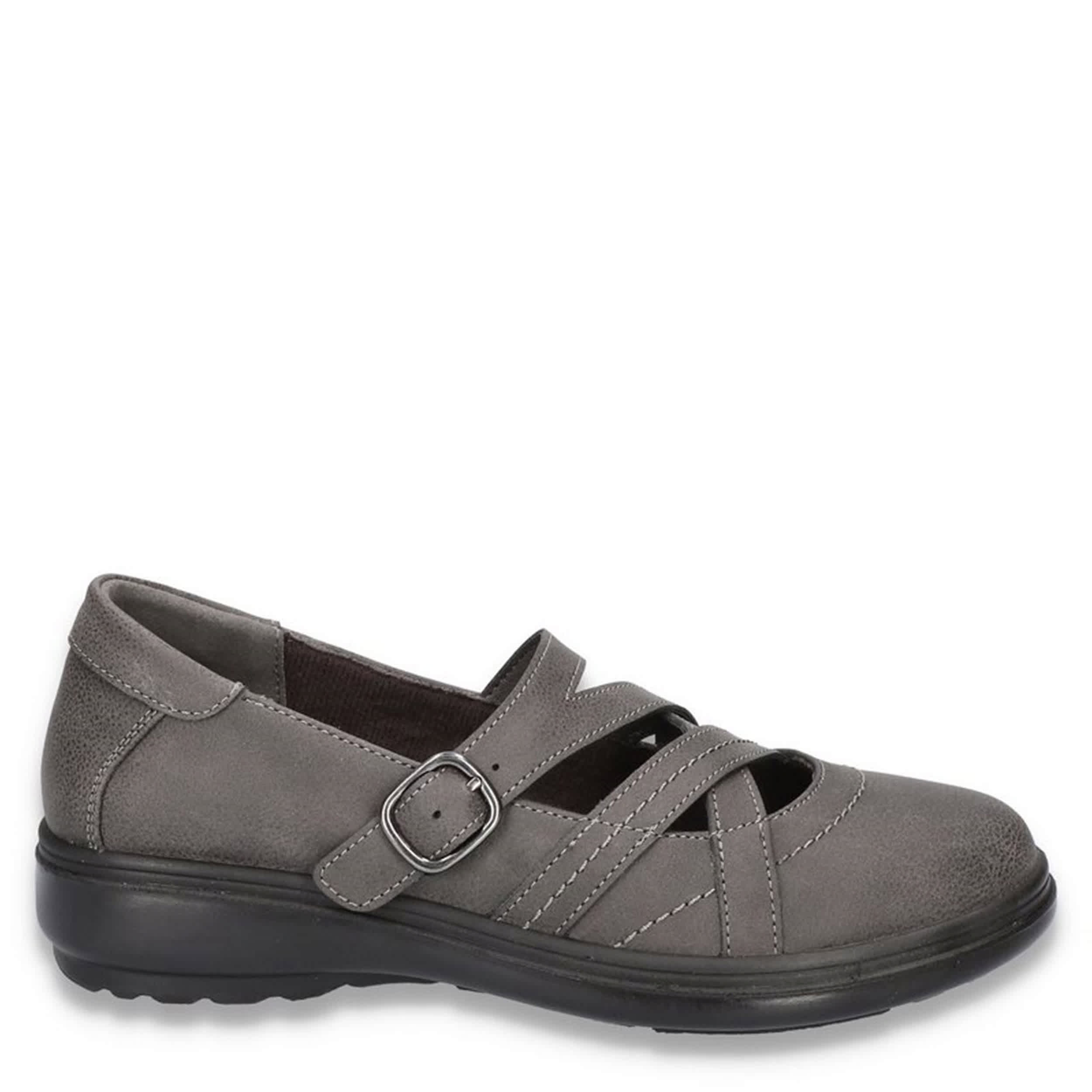 Update your schoolgirl style in the Easy Street Wise women's sneaker. With a faux suede upper featuring an asymmetrical strap design, this buckle strap Mary Jane-styled sneaker is perfect for running errands or taking a walk.The ultralight Easy Motion insole enhanced with Comfort Wave construction provides all-day support and cushioning.