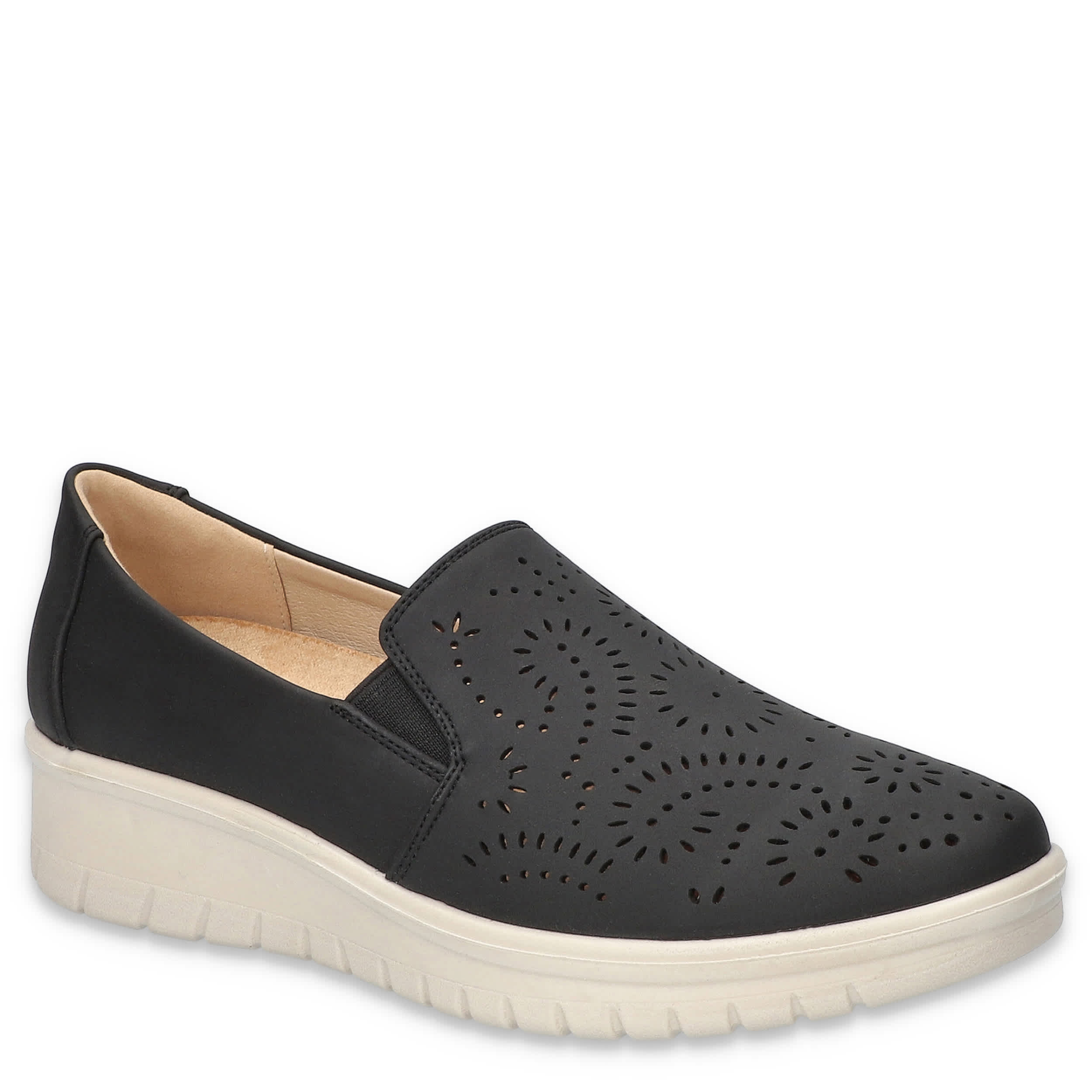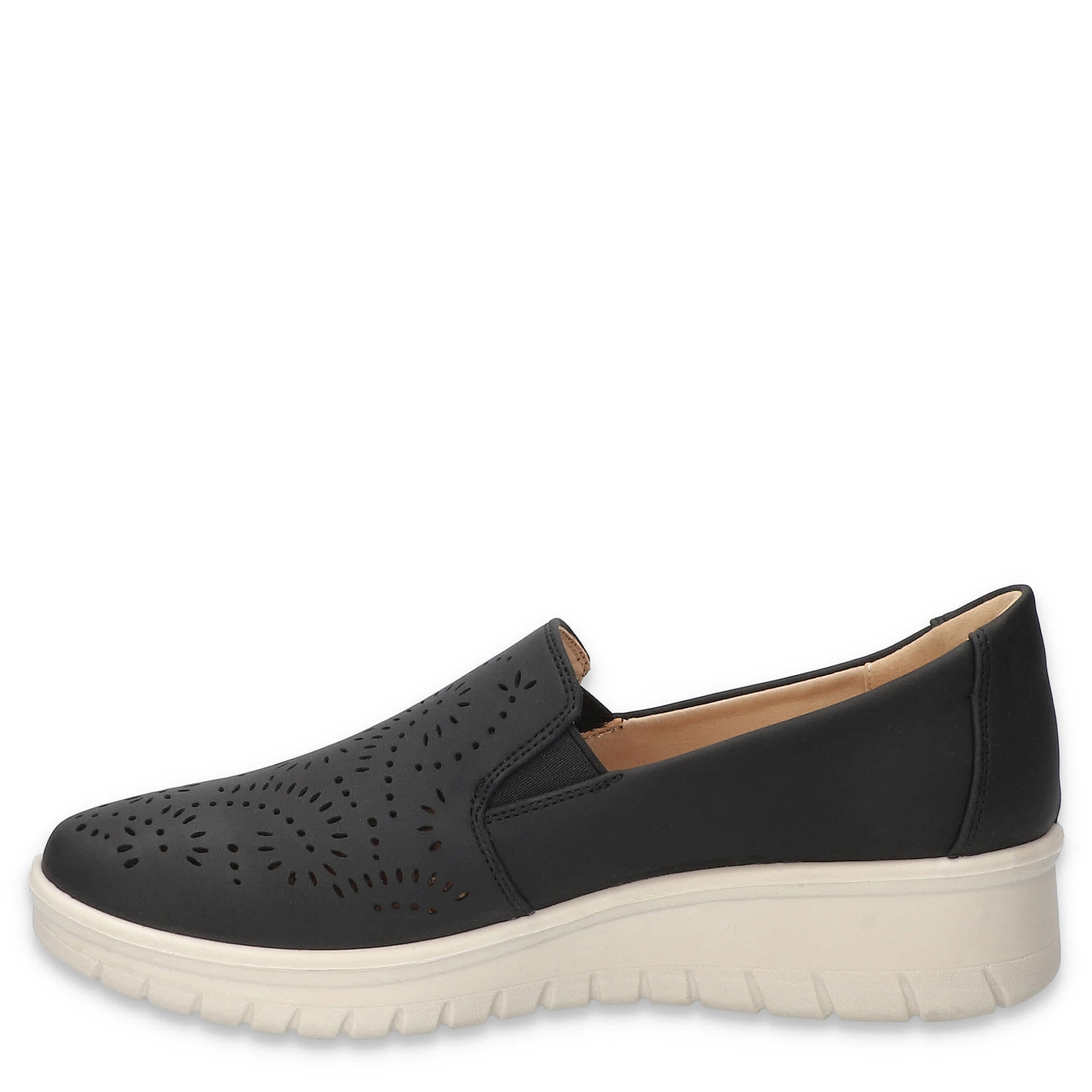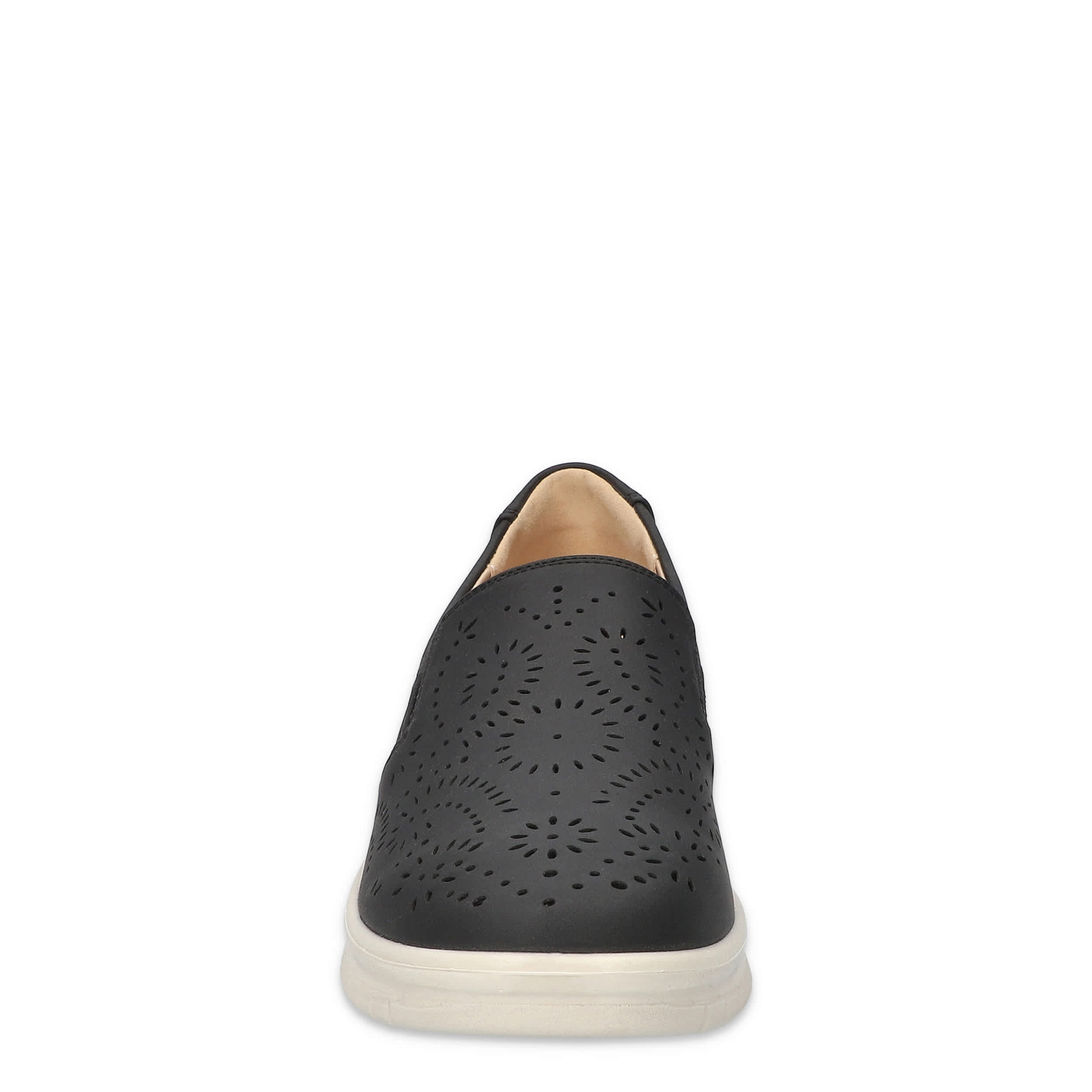 Athleisure looks best in the Easy Street Ying slip-on sneaker. With a breezy perfed upper, this ultra-light slip-on has elastic gore inserts for a secure fit. The Easy Motion by Easy Street insole uses super-flexible, comfort wave cushioning, while the wedge heel offers a stable lift.
