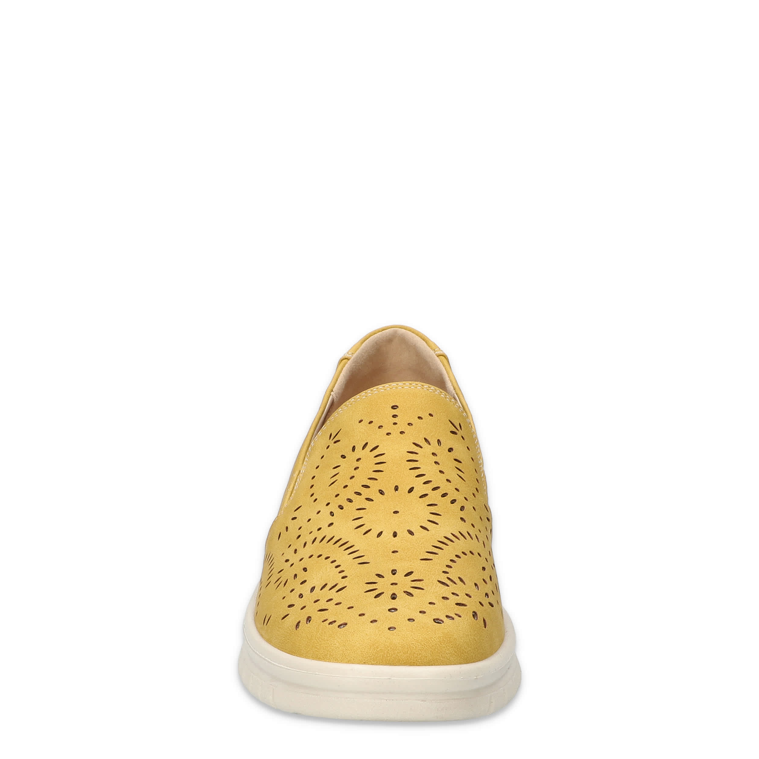 Athleisure looks best in the Easy Street Ying slip-on sneaker. With a breezy perfed upper, this ultra-light slip-on has elastic gore inserts for a secure fit. The Easy Motion by Easy Street insole uses super-flexible, comfort wave cushioning, while the wedge heel offers a stable lift.