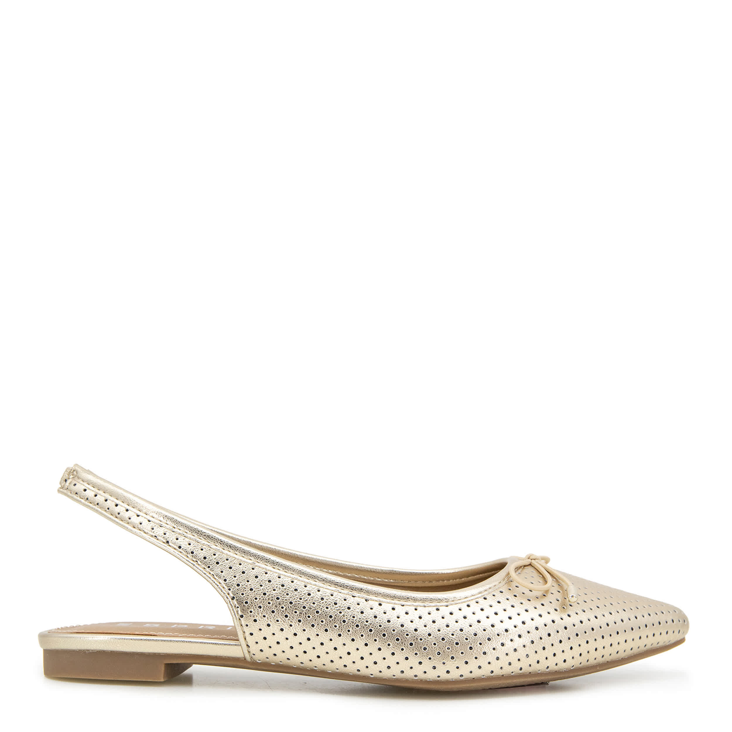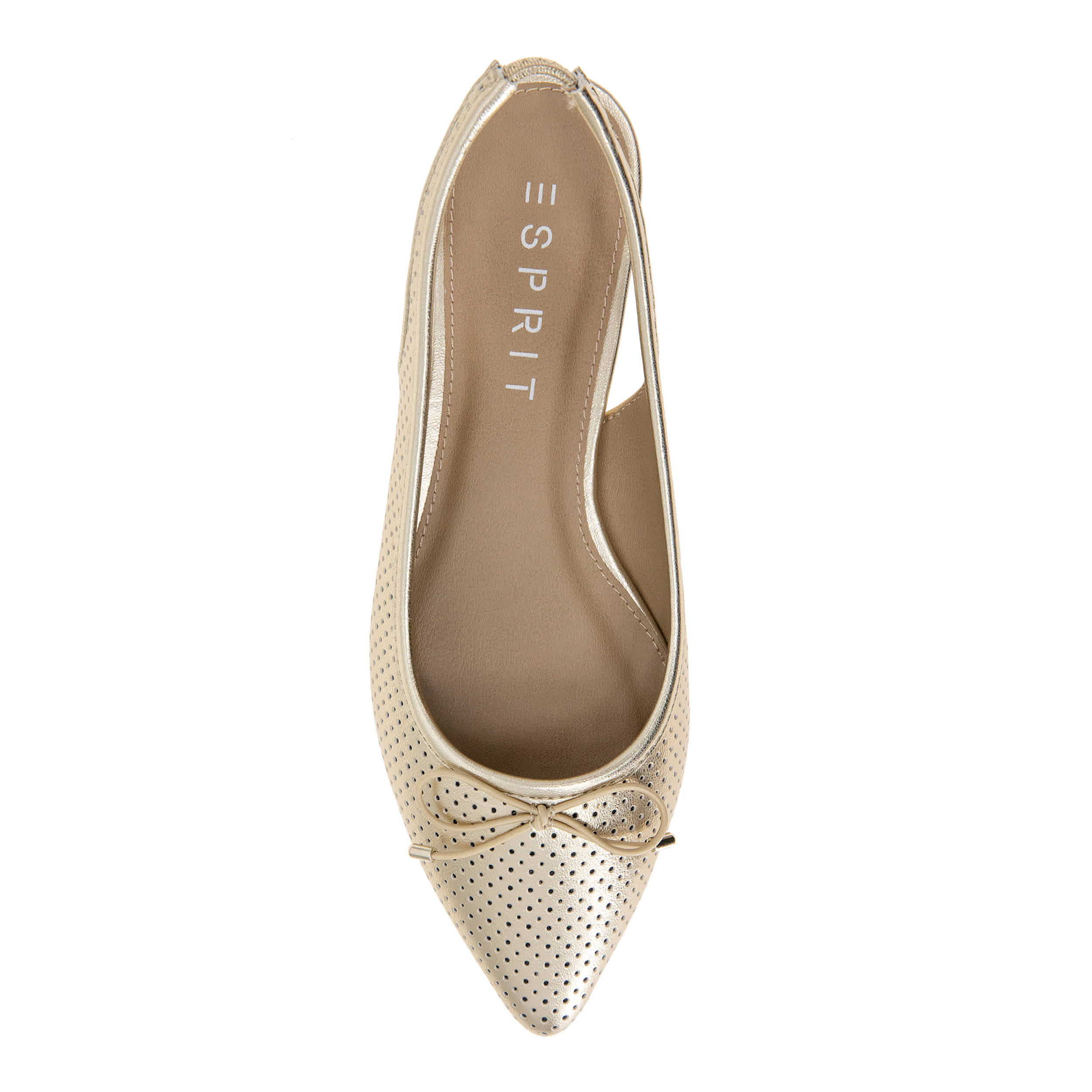 Spring for smarter fashion in the Petria Slingback women's flat from Esprit. Featuring a denim, linen or perforated faux leather upper with a metal-trimmed bow for extra style, this pointed toed flat has classic good looks for versatility. The insole cushions your foot, while the outsole adds durability.