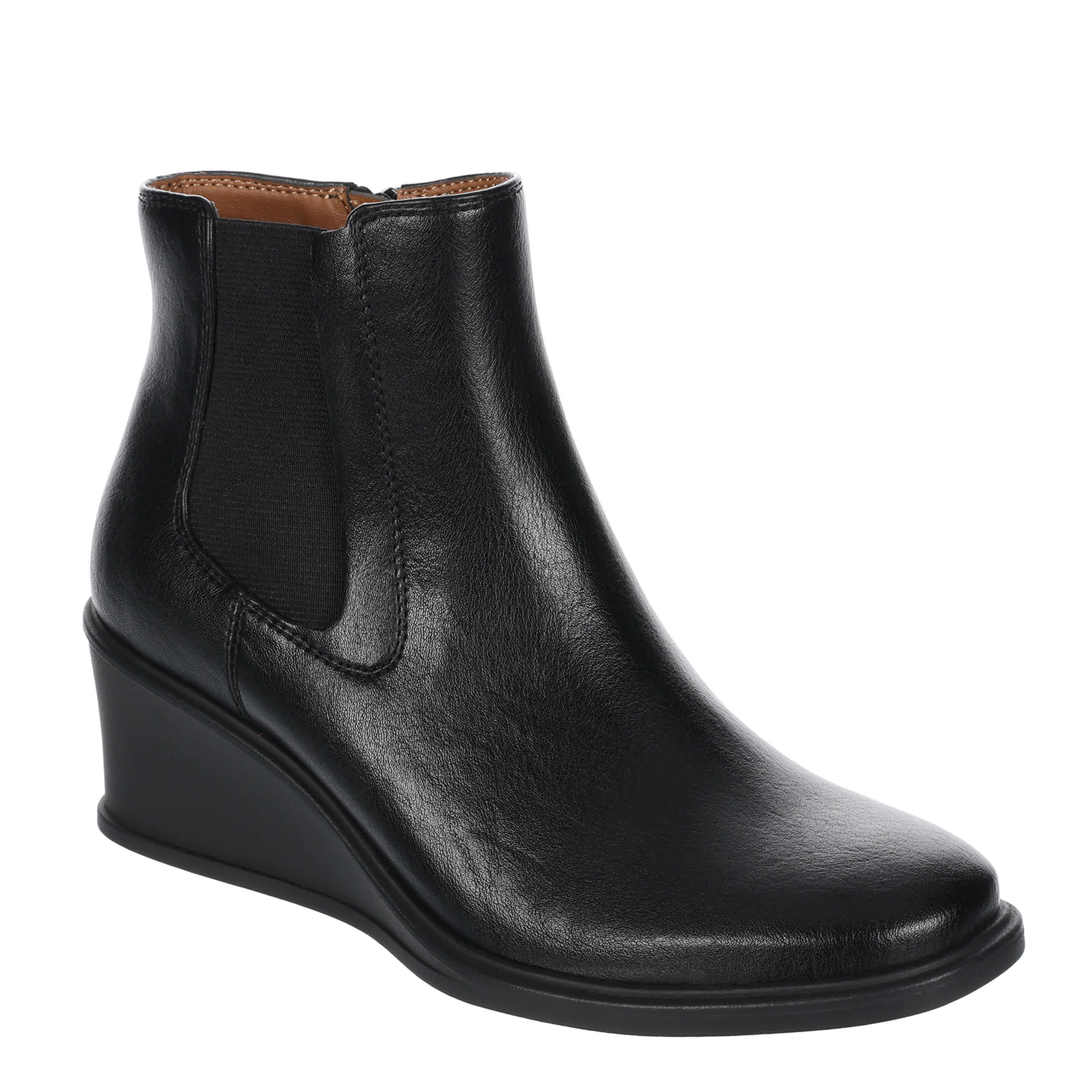 Fall in love with the versatility of the Rhodes women's ankle boot from Eurosoft. Featuring a faux leather upper with an elastic gore panel for a secure fit, this bootie has style to spare. The insole offers a cushioned feel while the wedge heel adds stable lift.