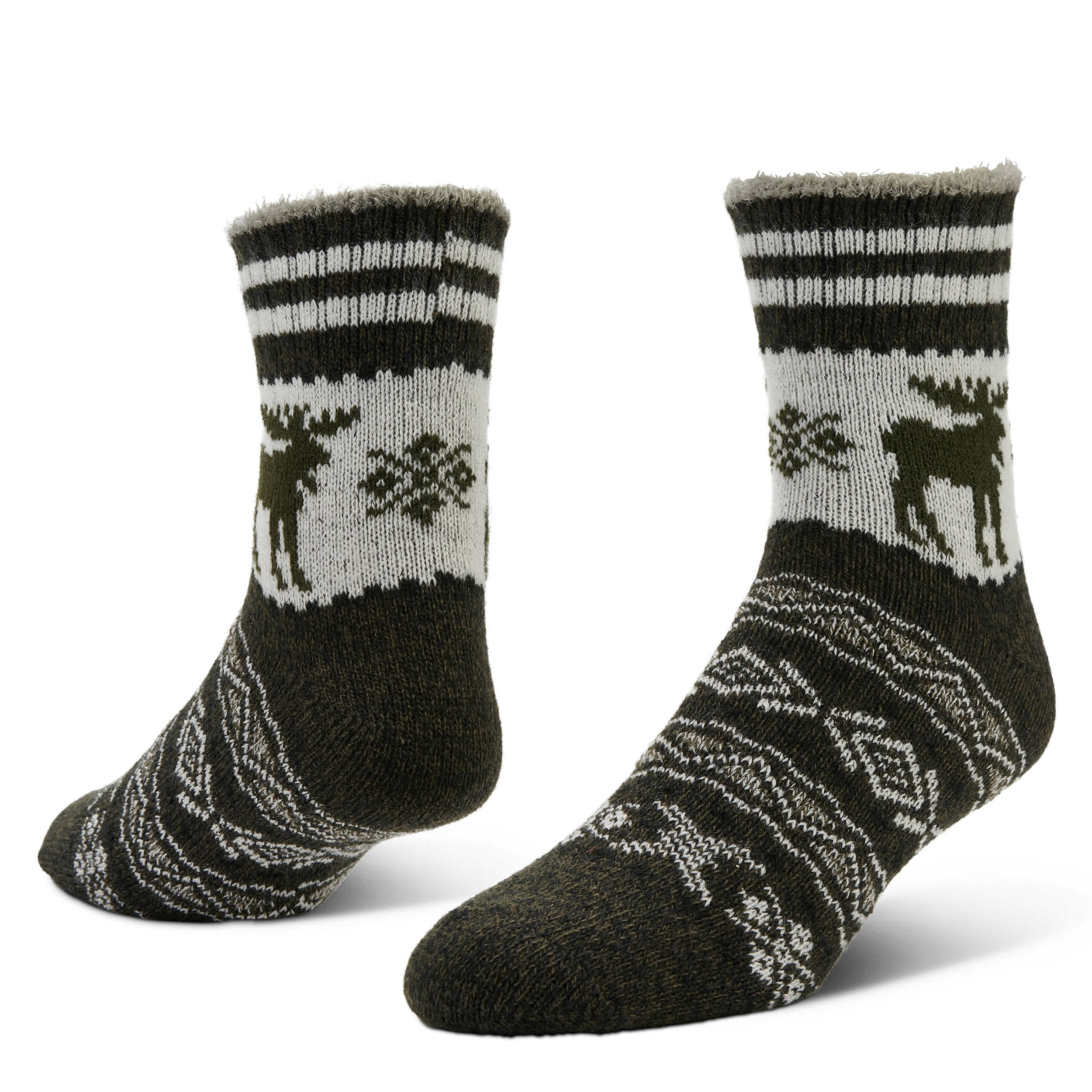 Stay warm in the Fireside Aloe Infused Crew socks 1 pair. Reaching mid-calf, these moose print socks are your go-to for lounging. A plush aloe-infused lining soothes and comforts your foot.