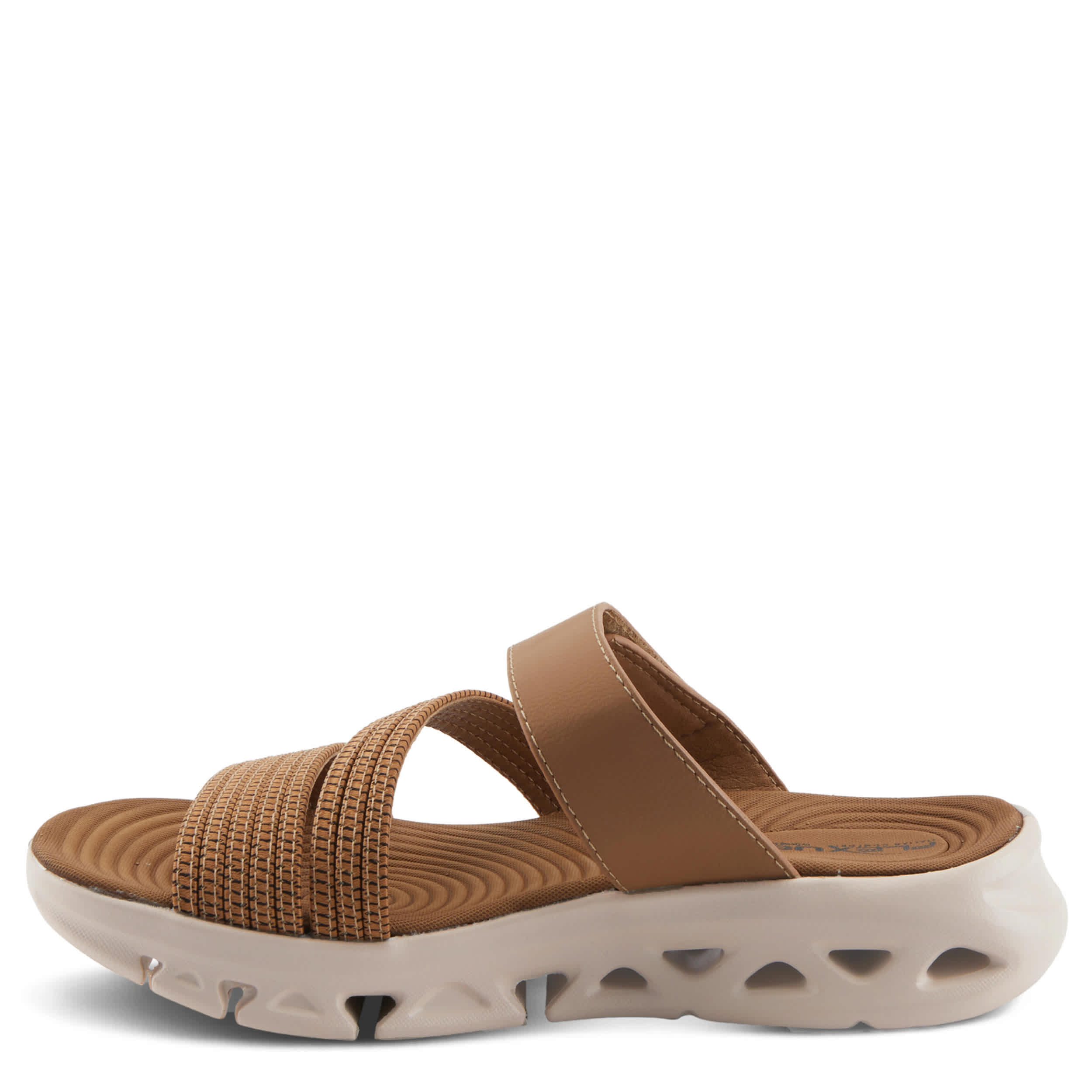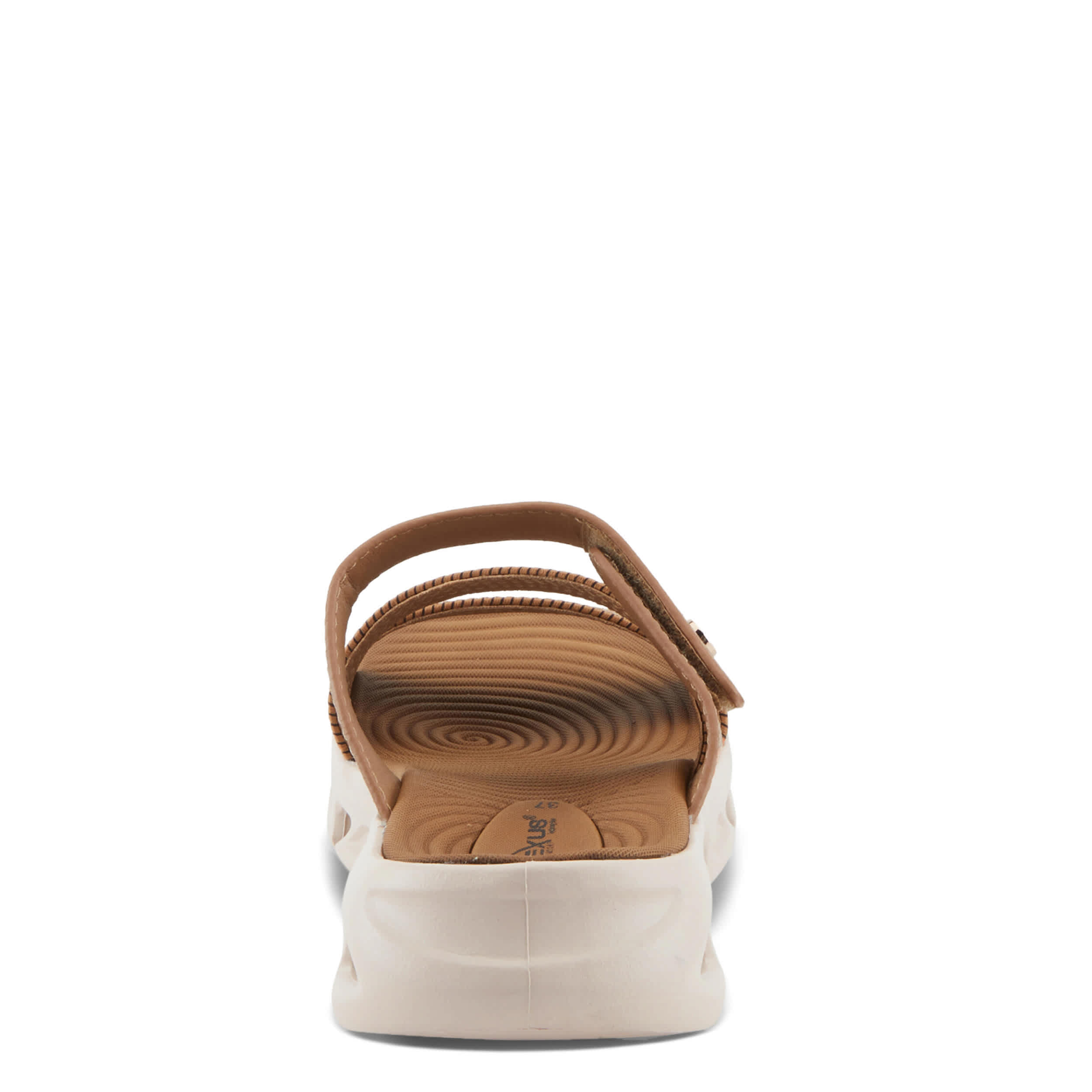 Upgrade your everyday outfits with the Galvanesa slide sandal from Flexus. This shoe blends style & comfort with a strappy fabric upper and secure hook/loop strap. The synthetic insole and EVA outsole offers all-day support, while the platform design & heel subtly lifts your look.