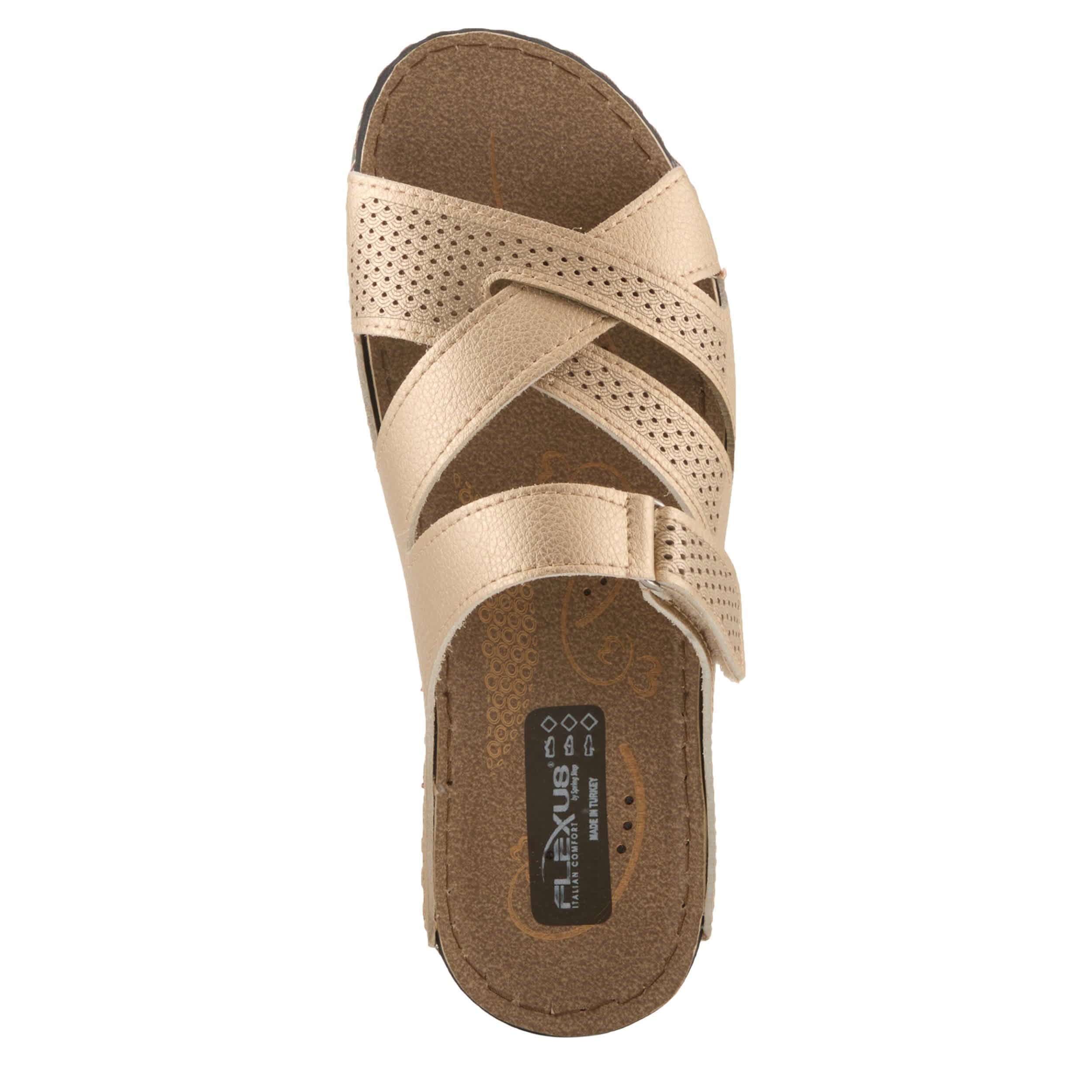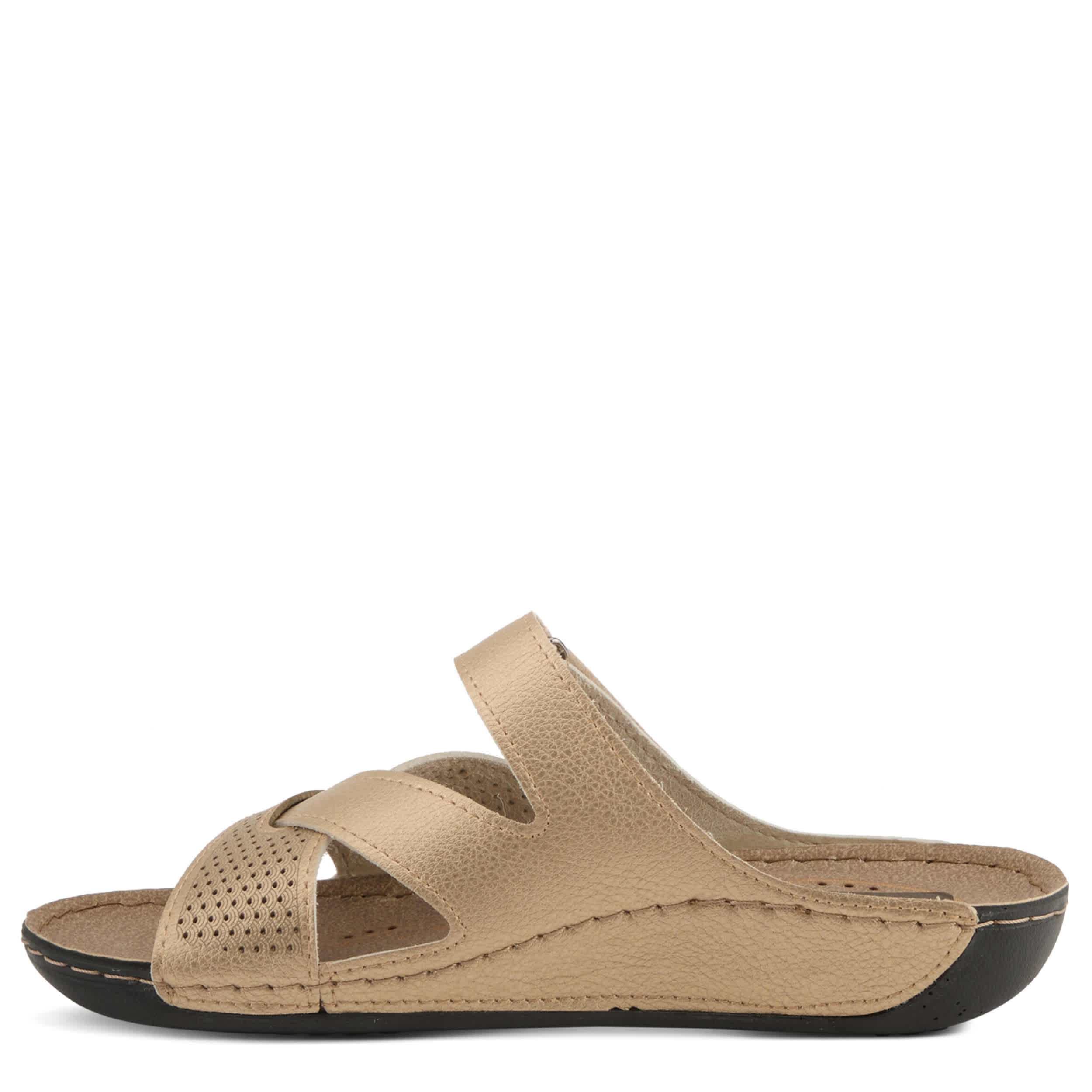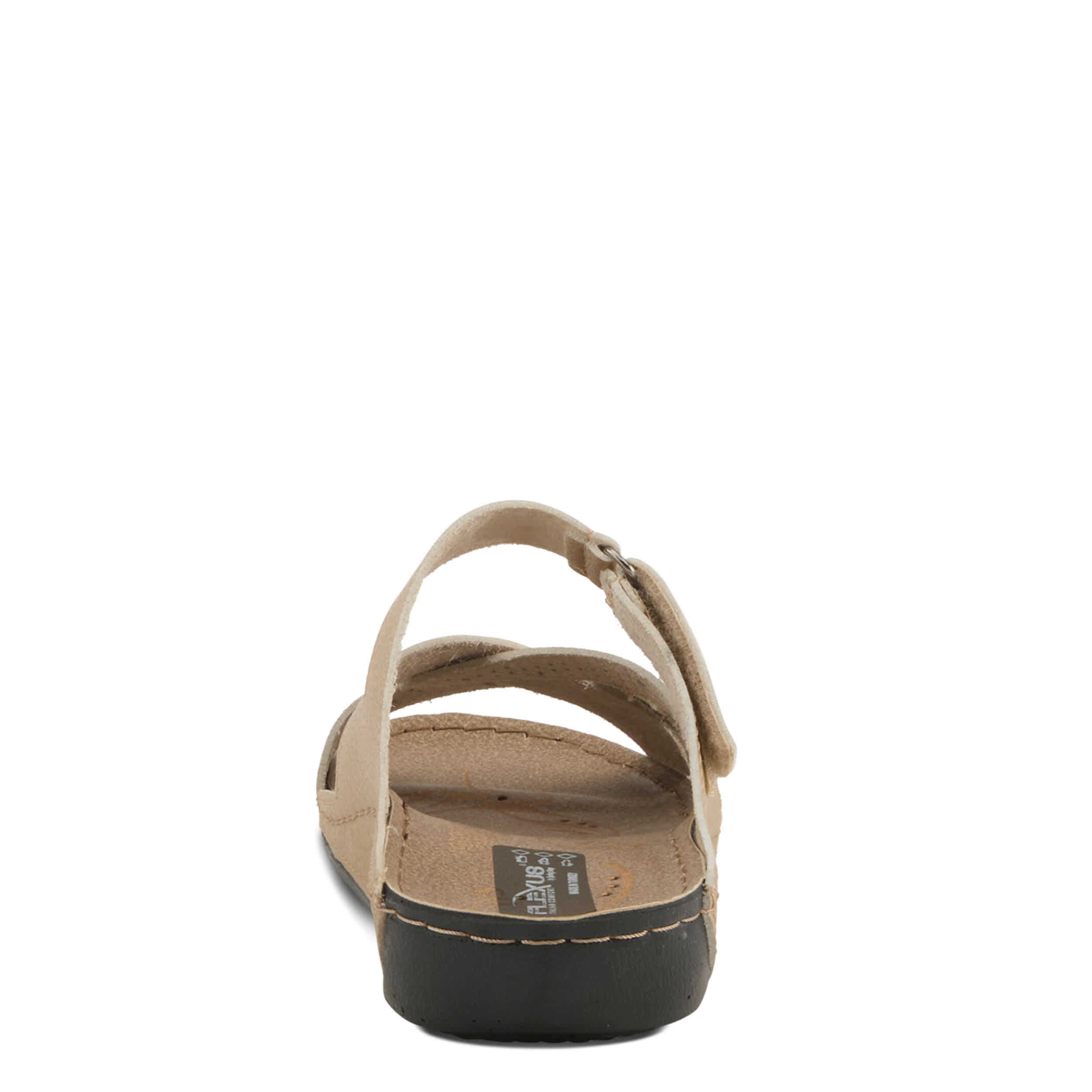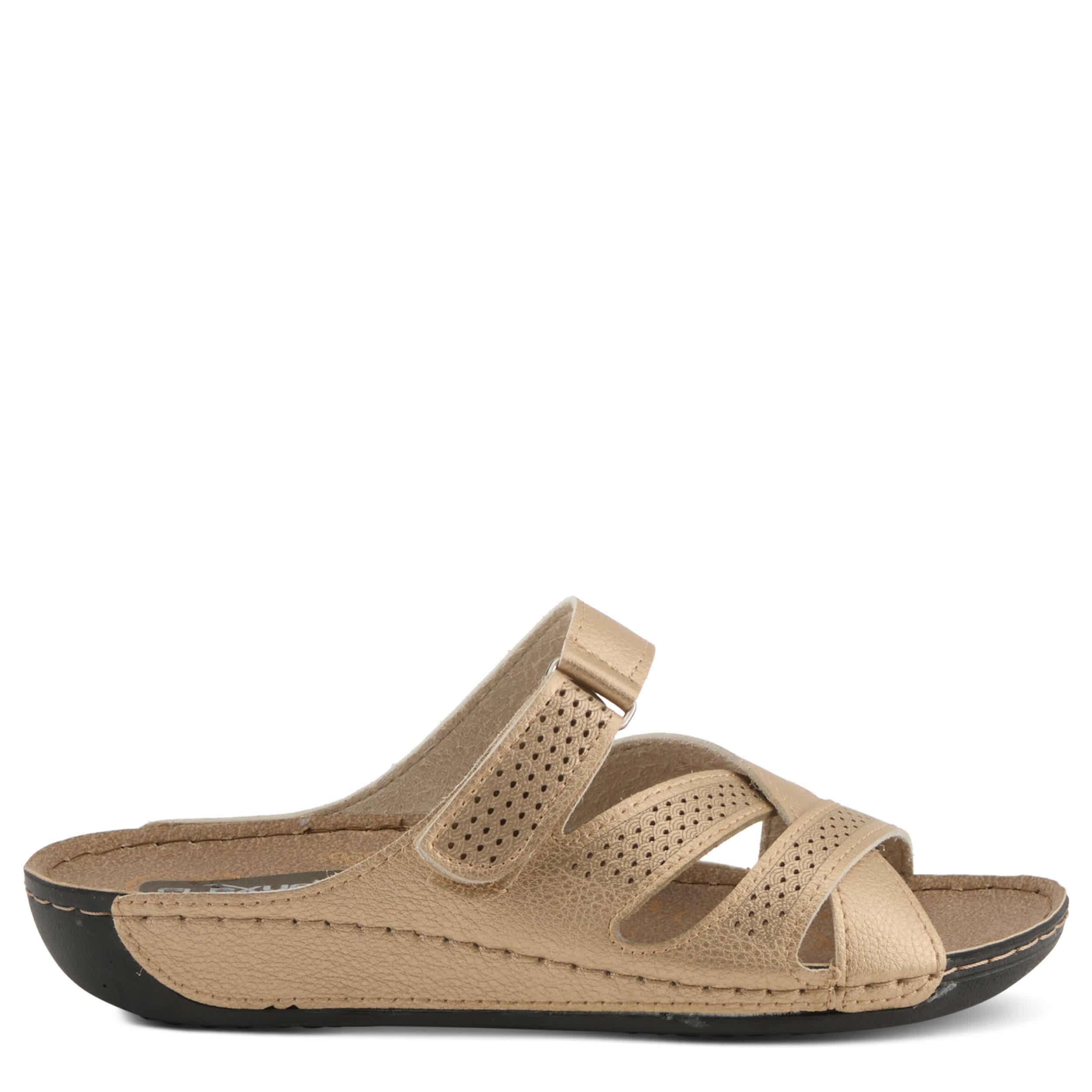 Simply slip on and go with the Flexus Karl slide sandal. With a strappy faux leather upper featuring a hook/loop strap for a secure fit, this shoe is great for running errands or walking around town. The leather footbed comforts your steps and the synthetic outsole supports with traction.