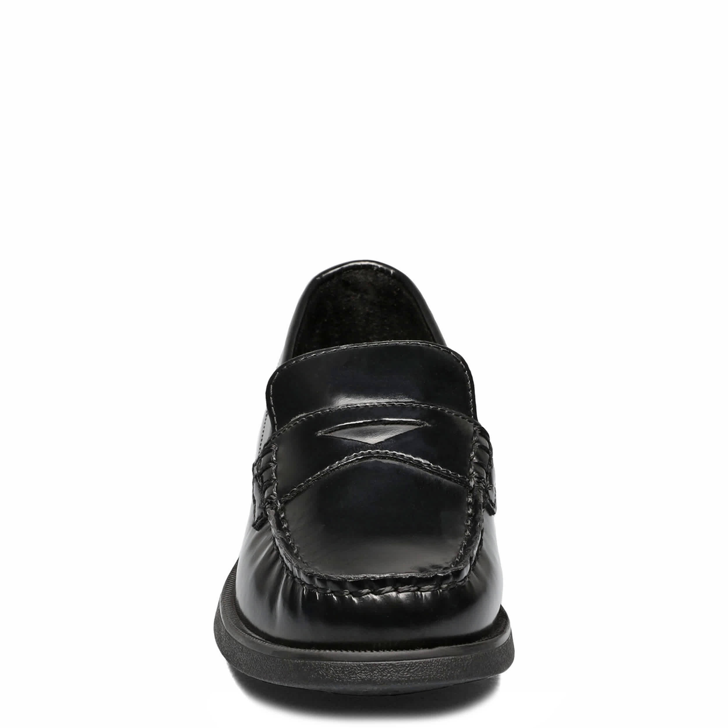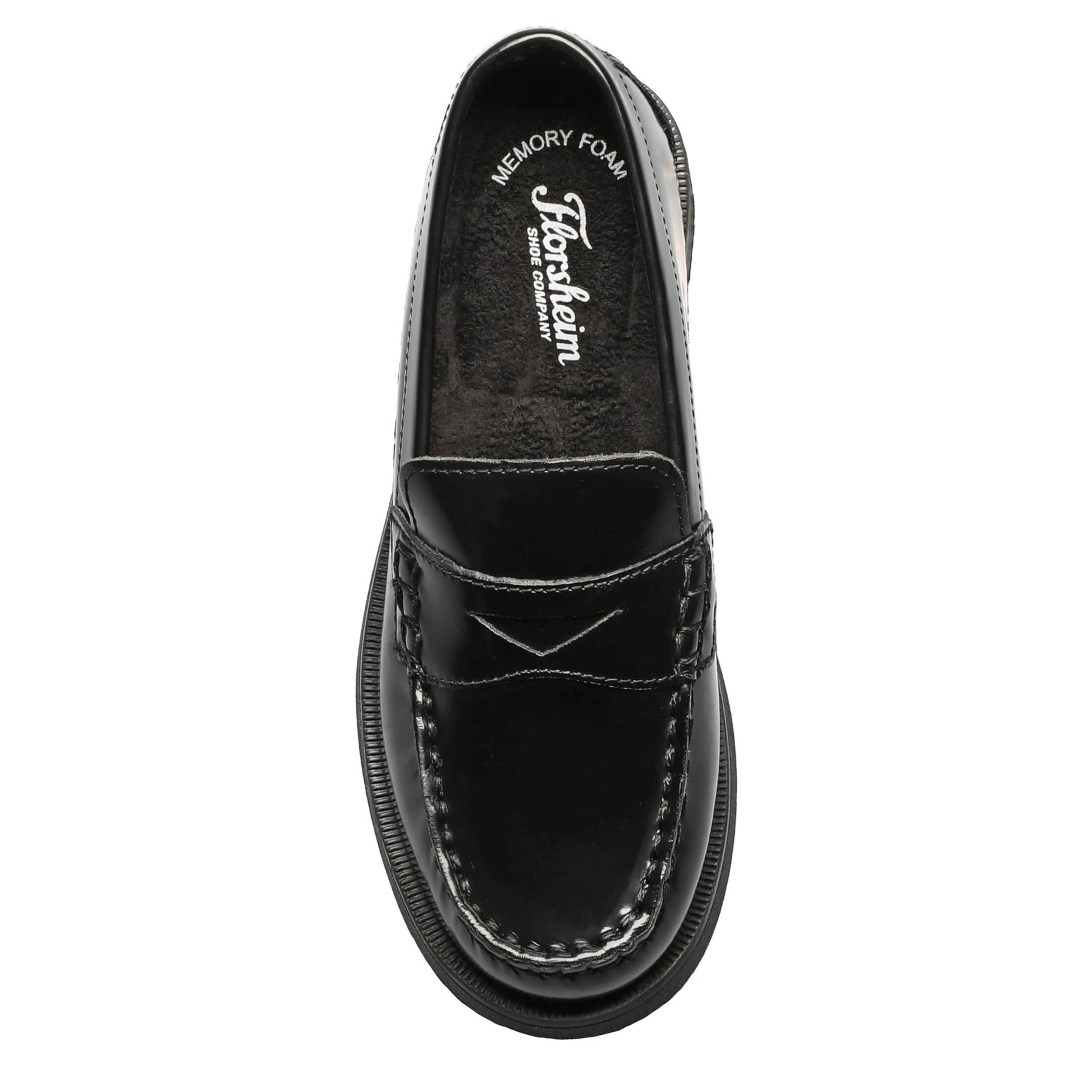 Start him early with timeless style in the Croquet Jr. boys' penny loafer from Florshiem. With a smooth leather upper featuring the stitched moc toe and penny holder, this beefroll penny loafer is an instant classic. The Memory Foam comforts his foot, while the durable sole adds some bounce.