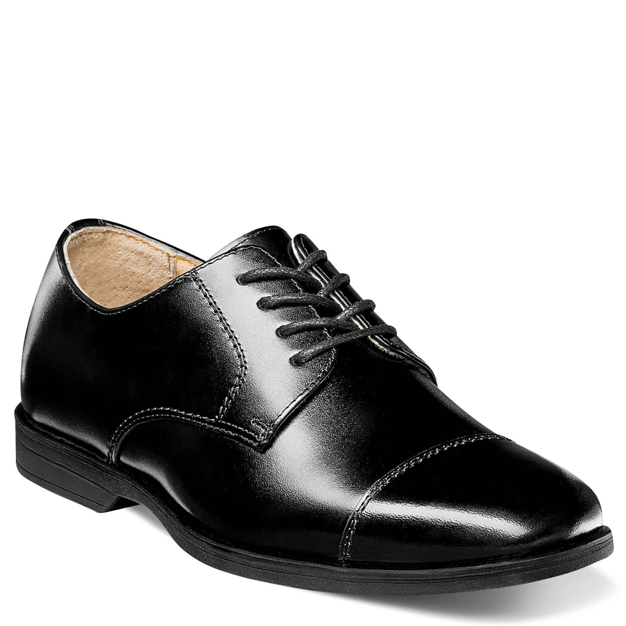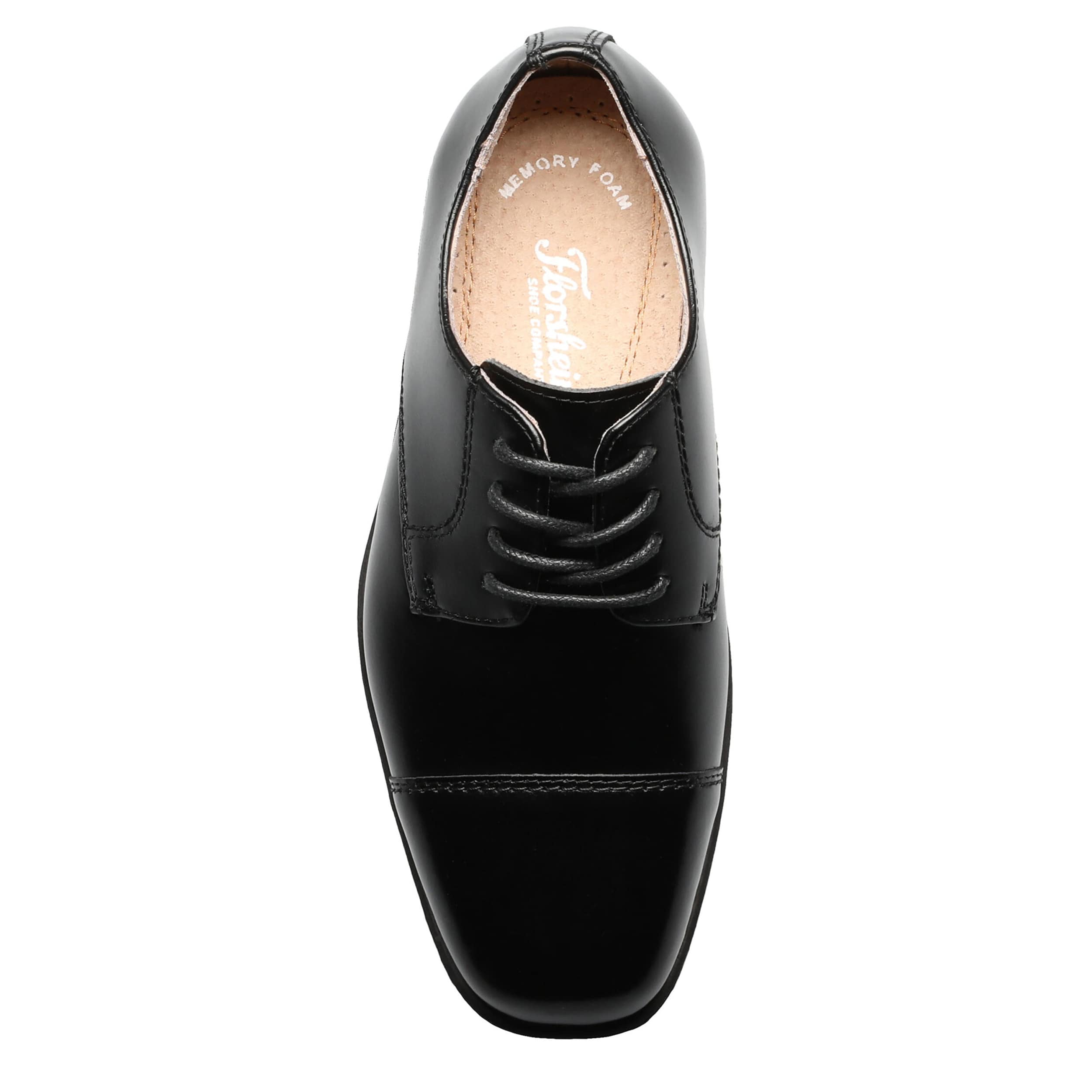Show off your little man in the Reveal Jr. Cap Toe boys' oxford from Florsheim. Featuring a leather or patent leather upper with breathable leather linings, this oxford also has a beautifully squared cap toe. The Memory Foam footbed cushions every step, while the durable outsole offers springy traction.