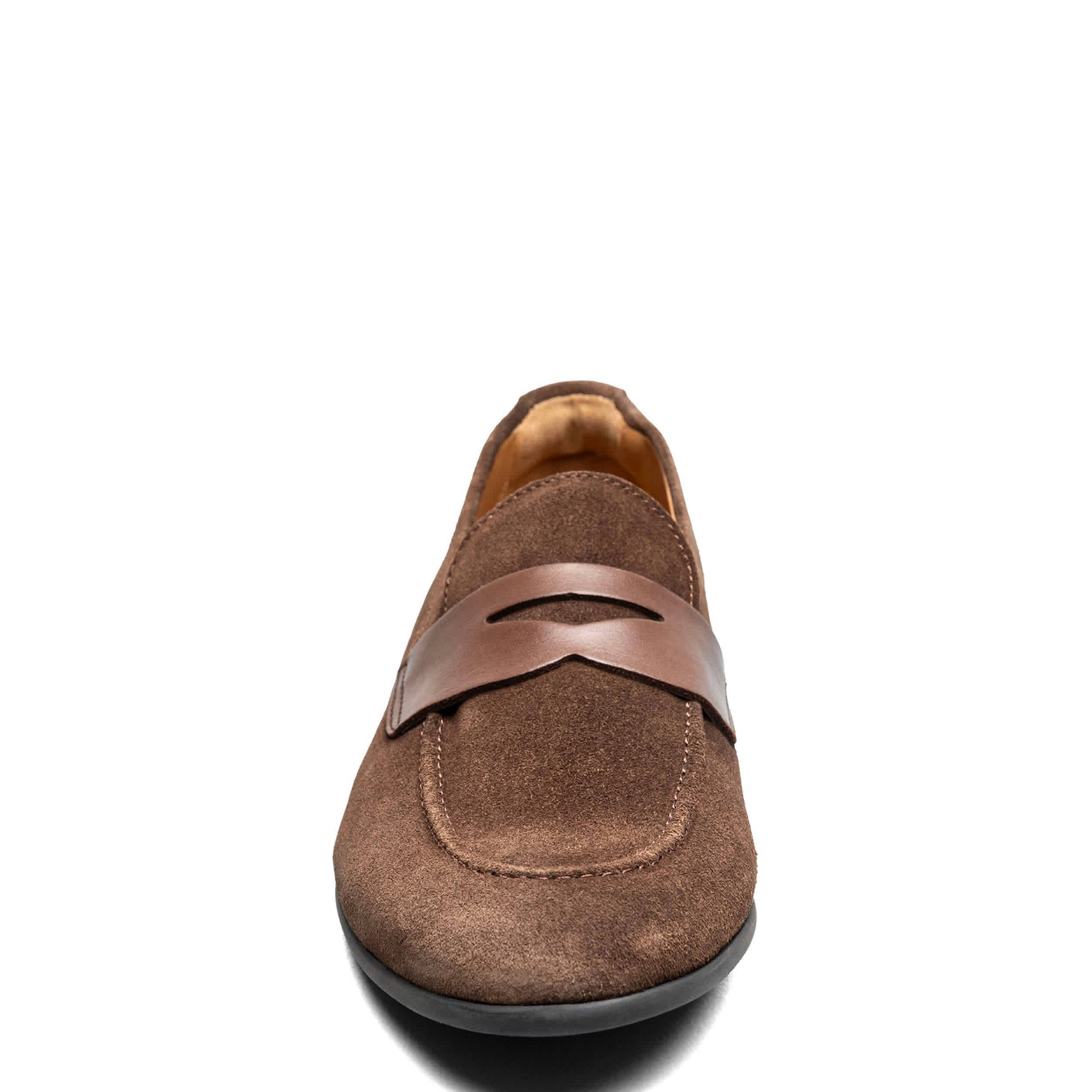 Flexsole comfort and refined taste, the Modena Moc men's penny loafer from Florsheim is a versatile classic. Featuring a leather or suede upper with a penny holder detail and breathable leather linings, this loafer complements your chinos or jeans. The leather-covered footbed contains high rebound foam, while the outsole offers durability.