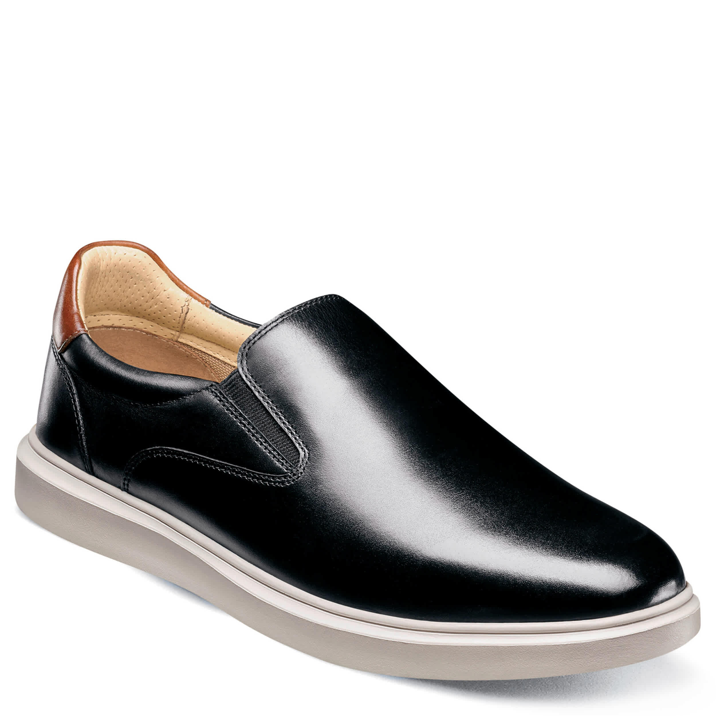 A bit fancier than your usual kick, the Social Plain Toe men's slip-on sneaker from Florsheim is a sneaker/oxford hybrid. Featuring a leather upper with breathable mesh linings, this shoe is cool enough for a weekend away or a business casual office. The leather covered Comfortech footbed cushions every step, while the durable EVA & Flexsole technology make for even more comfort right away.