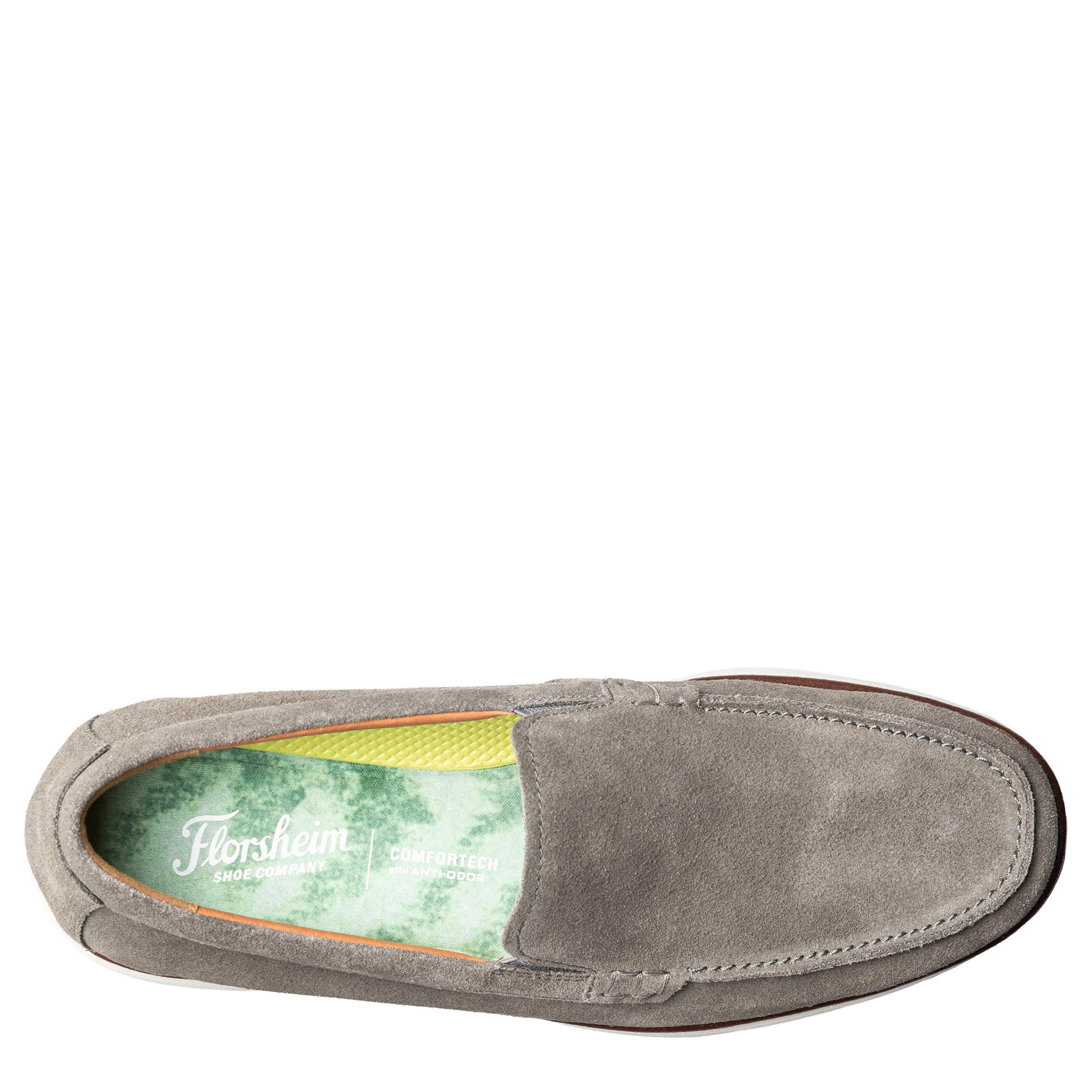 Go barefoot this summer in the Tropics Venetian loafer from Florsheim. Made with a breathable suede upper, this slip-on is laid-back, but polished. The cushioned Comfortech footbed contains an anti-odor treatment to ensure long-term wear, while the durable EVA outsole offers abrasion resistance with a rubber traction pod.