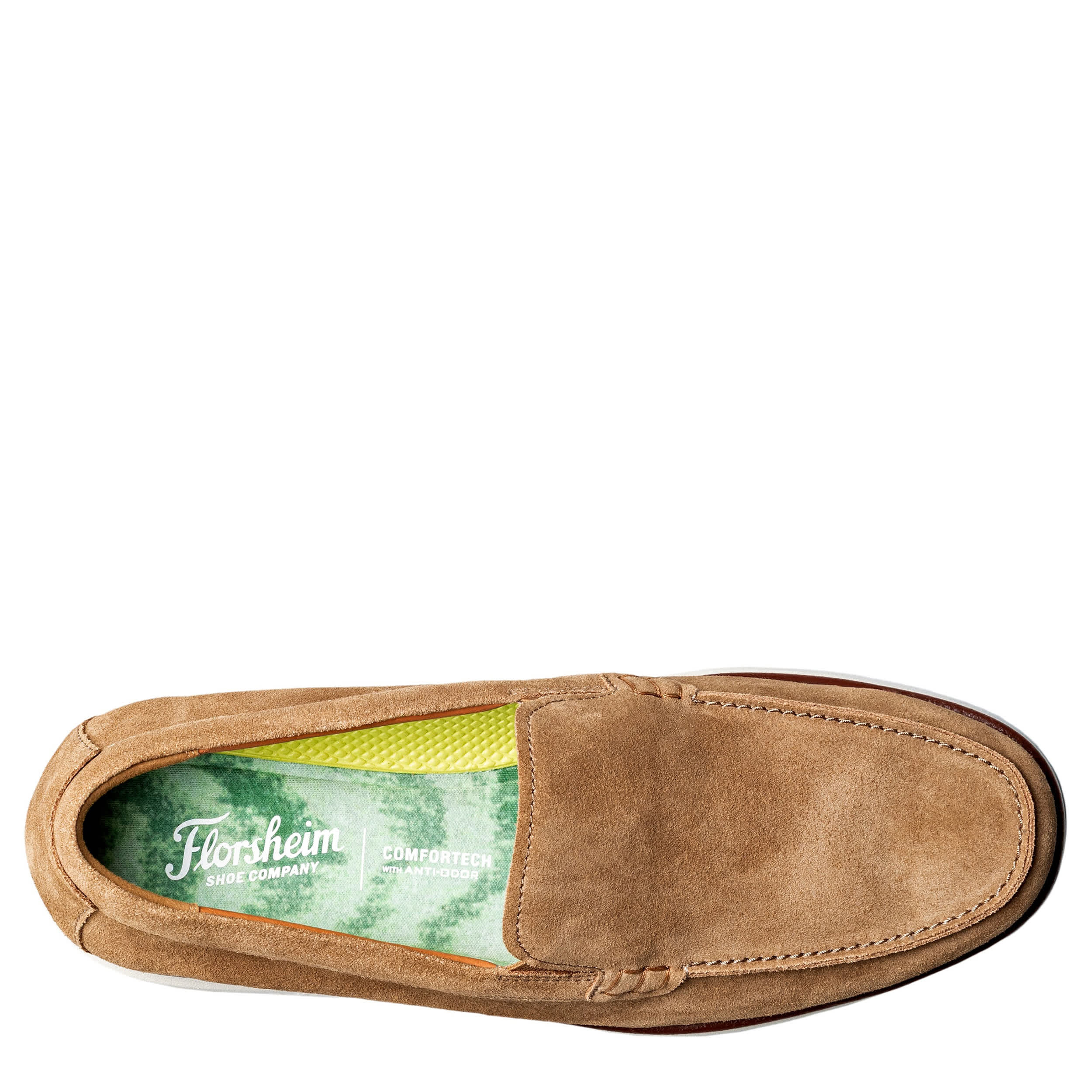 Go barefoot this summer in the Tropics Venetian loafer from Florsheim. Made with a breathable suede upper, this slip-on is laid-back, but polished. The cushioned Comfortech footbed contains an anti-odor treatment to ensure long-term wear, while the durable EVA outsole offers abrasion resistance with a rubber traction pod.