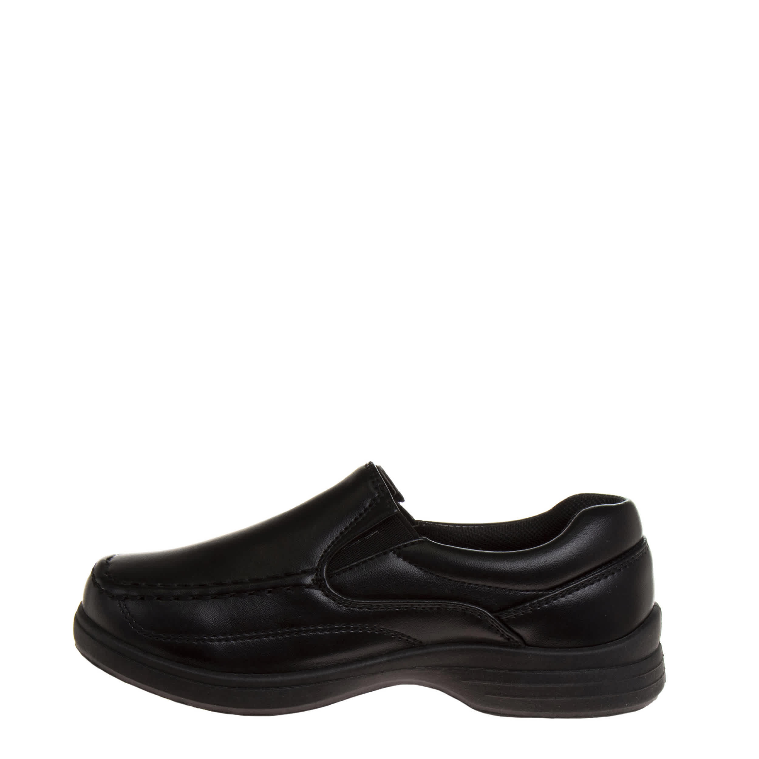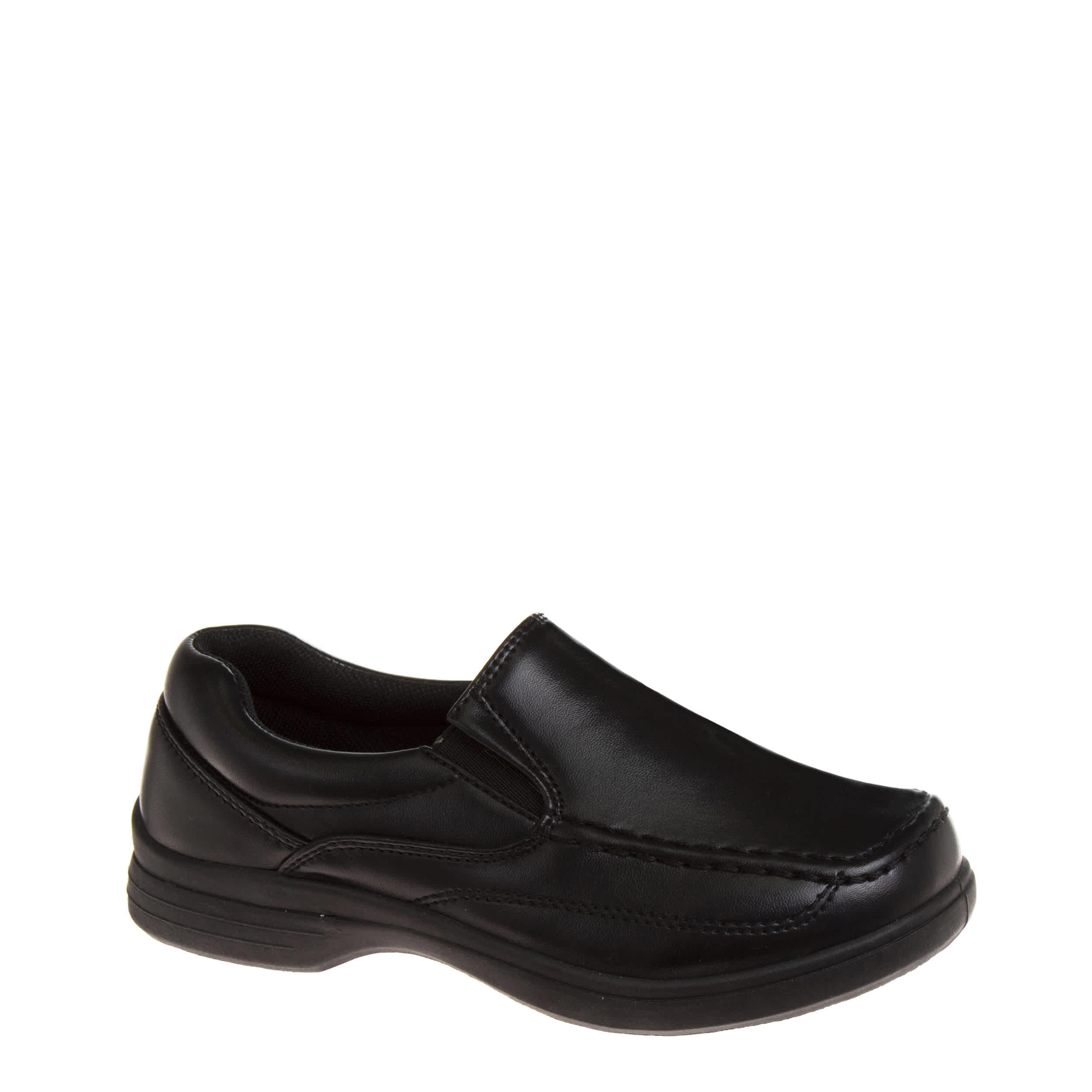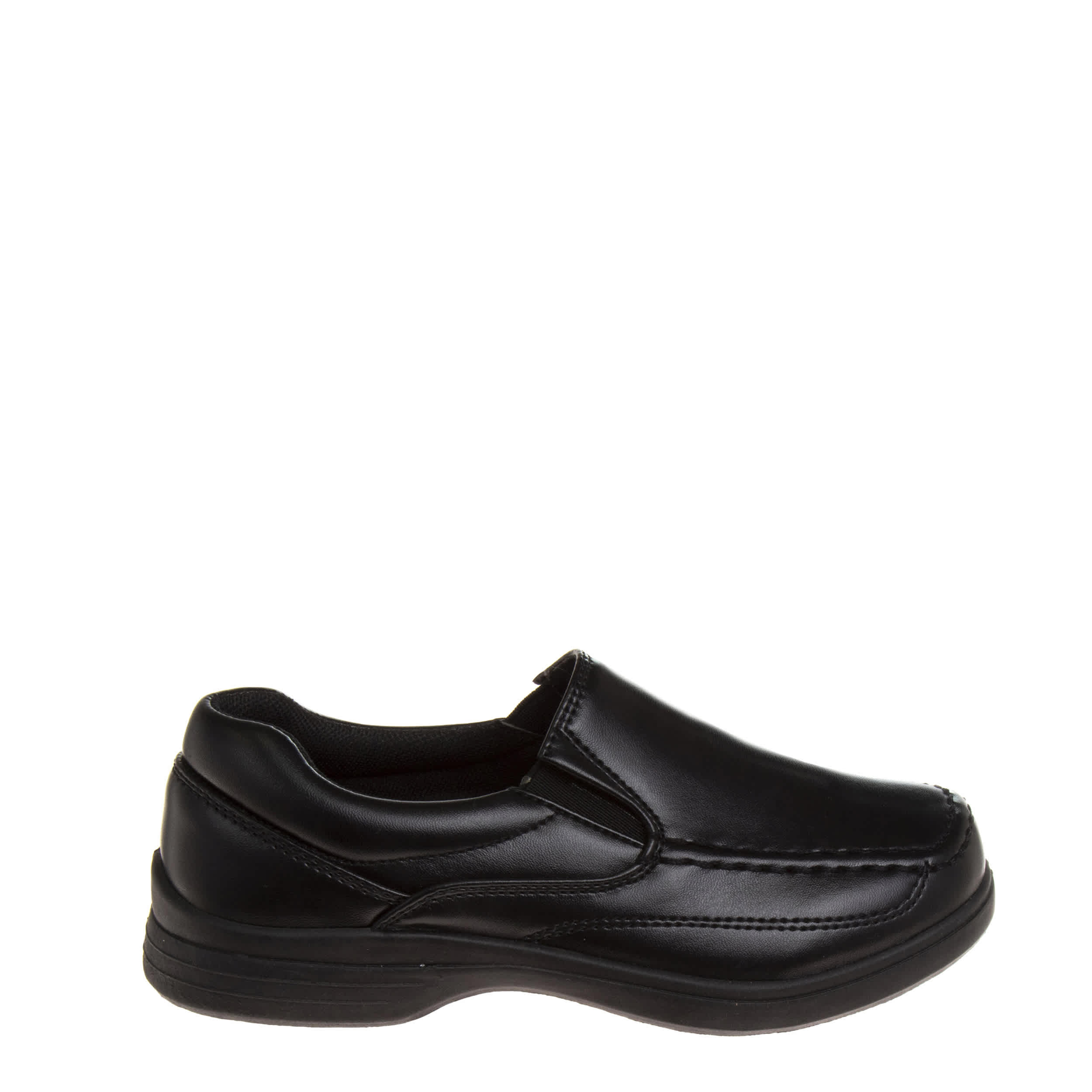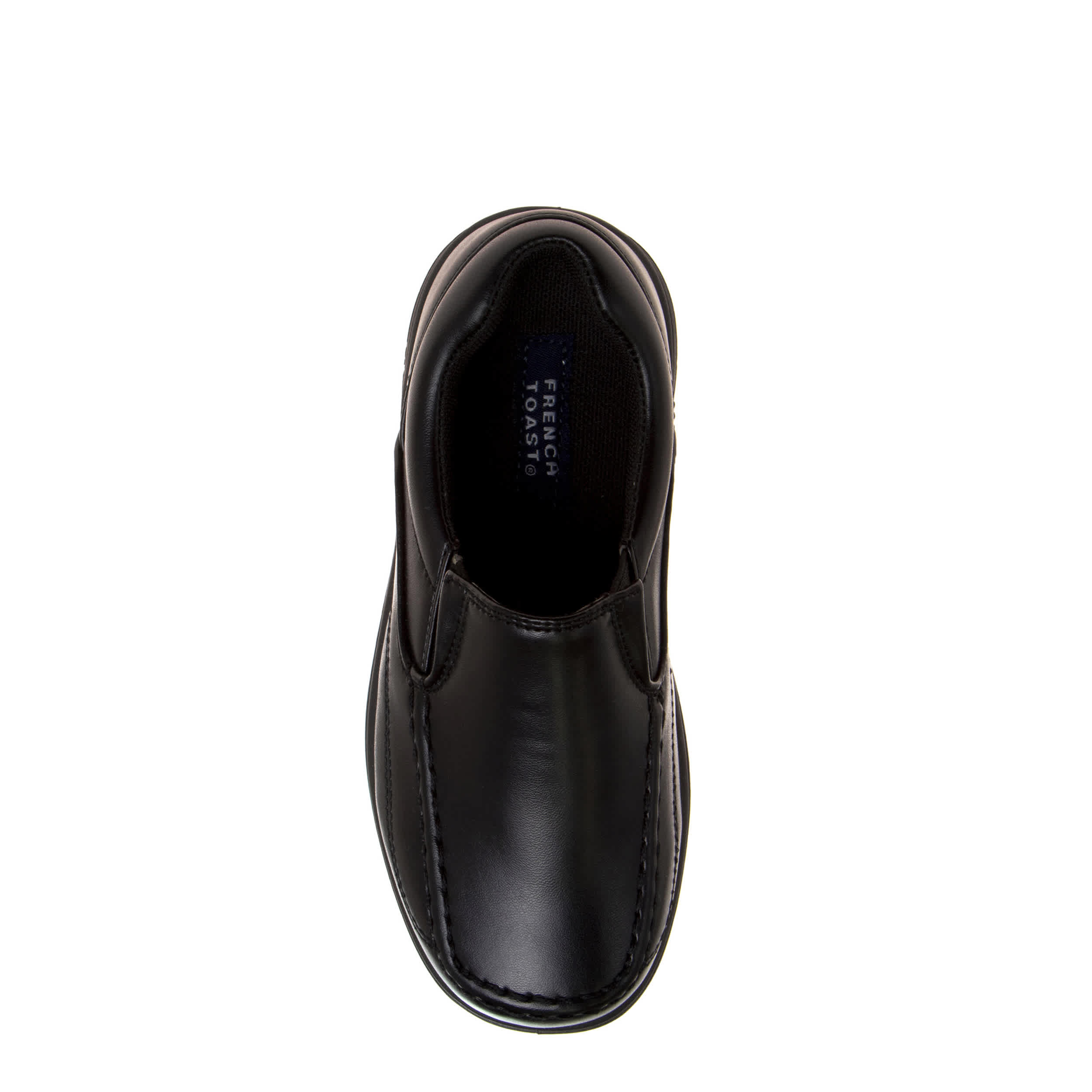 He'll look stylish and comfortable in the French Toast boys' dress shoe. This slip-on shoe features a faux leather upper with a lightly padded collar and a cushioned footbed that will soothe and support his little feet for hours. The synthetic outsole is durable and provides an excellent grip, so he feels great at school or a formal event.