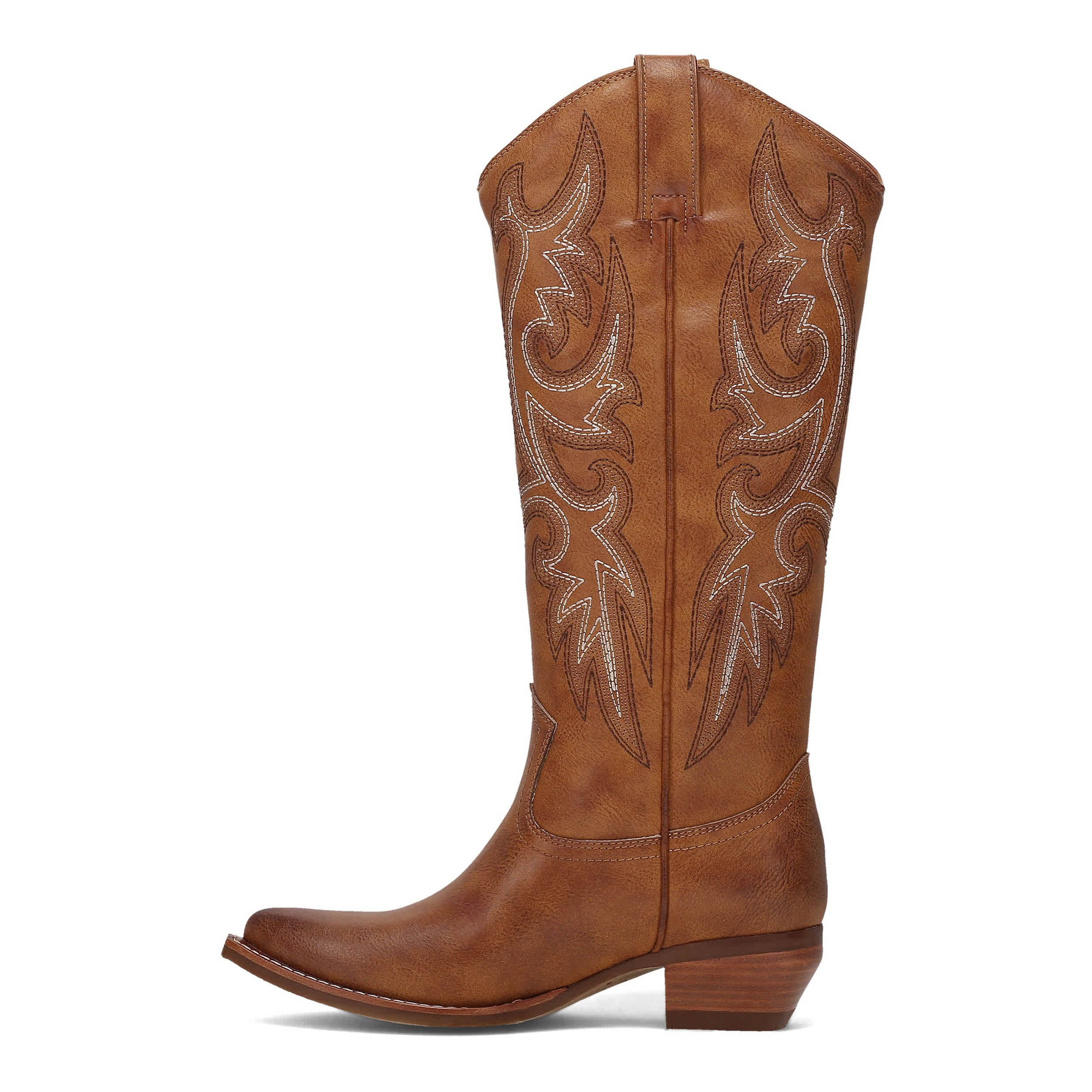 The Irlene Tall Deco Stitch is your go-to Western boot, highlighted by unique stitching details. Featuring a soft, cushioned insole, this boot offers out of the box comfort. Made from tumbled vegan leather or soft vegan suede, its leather stacked heel complements denim or dresses.