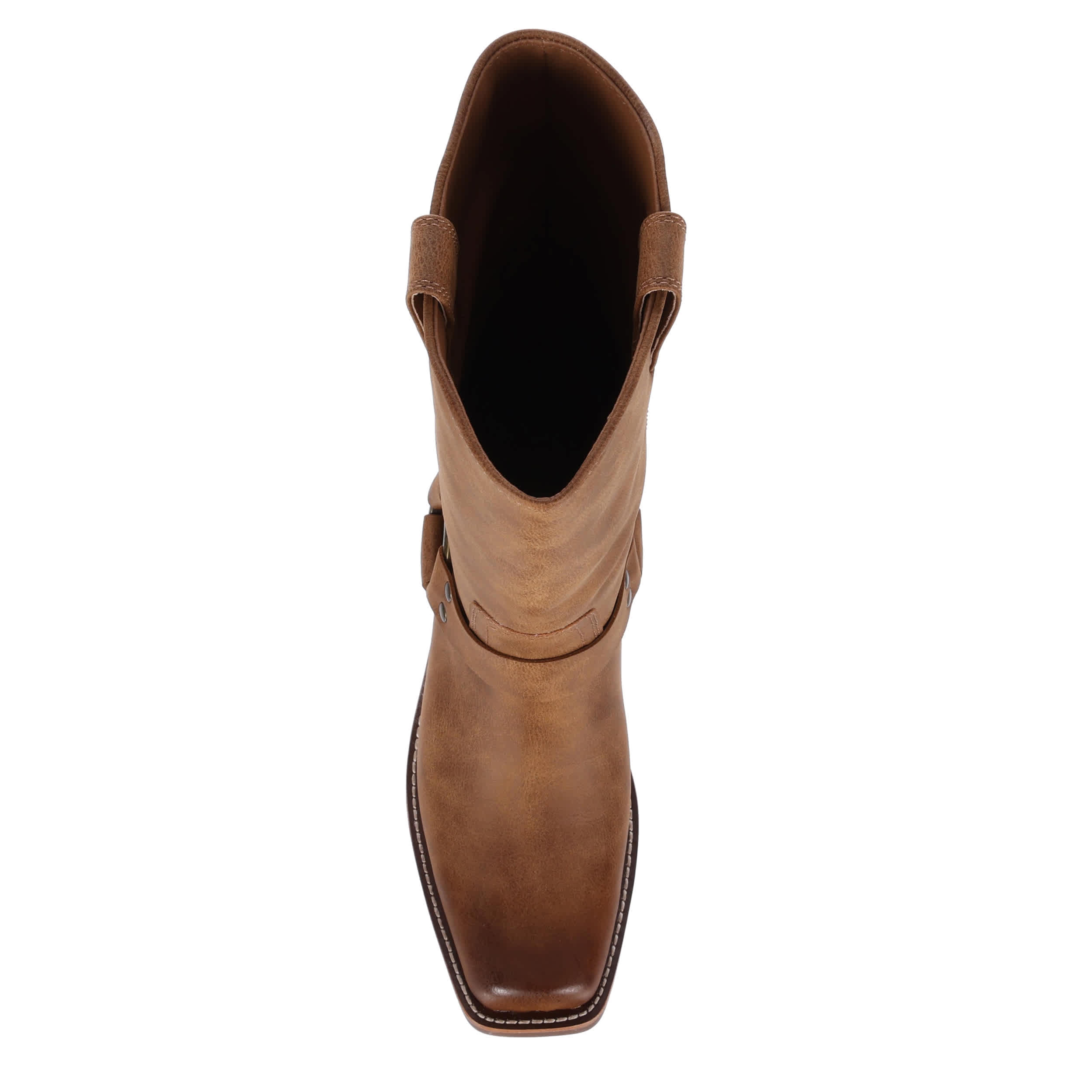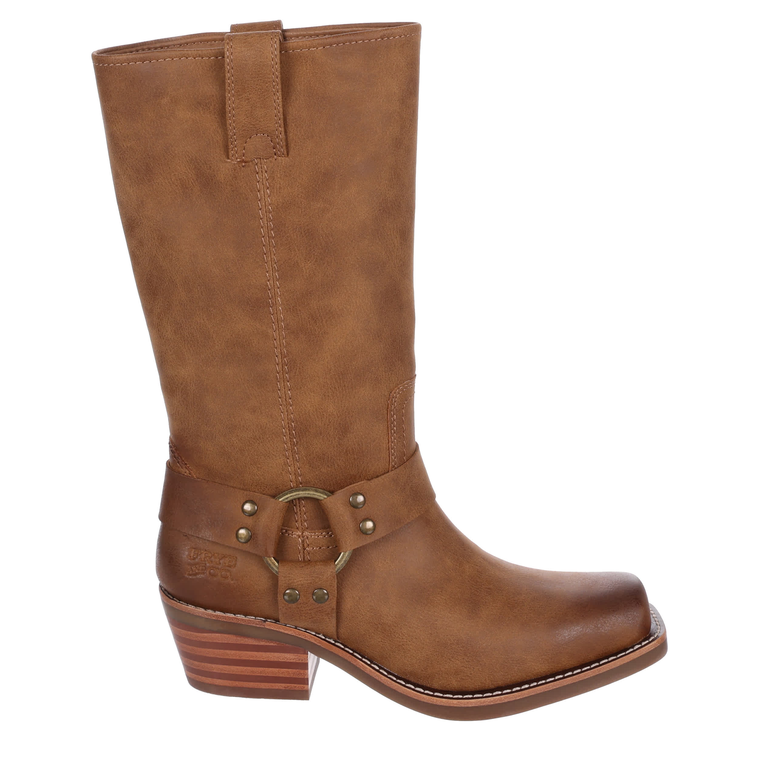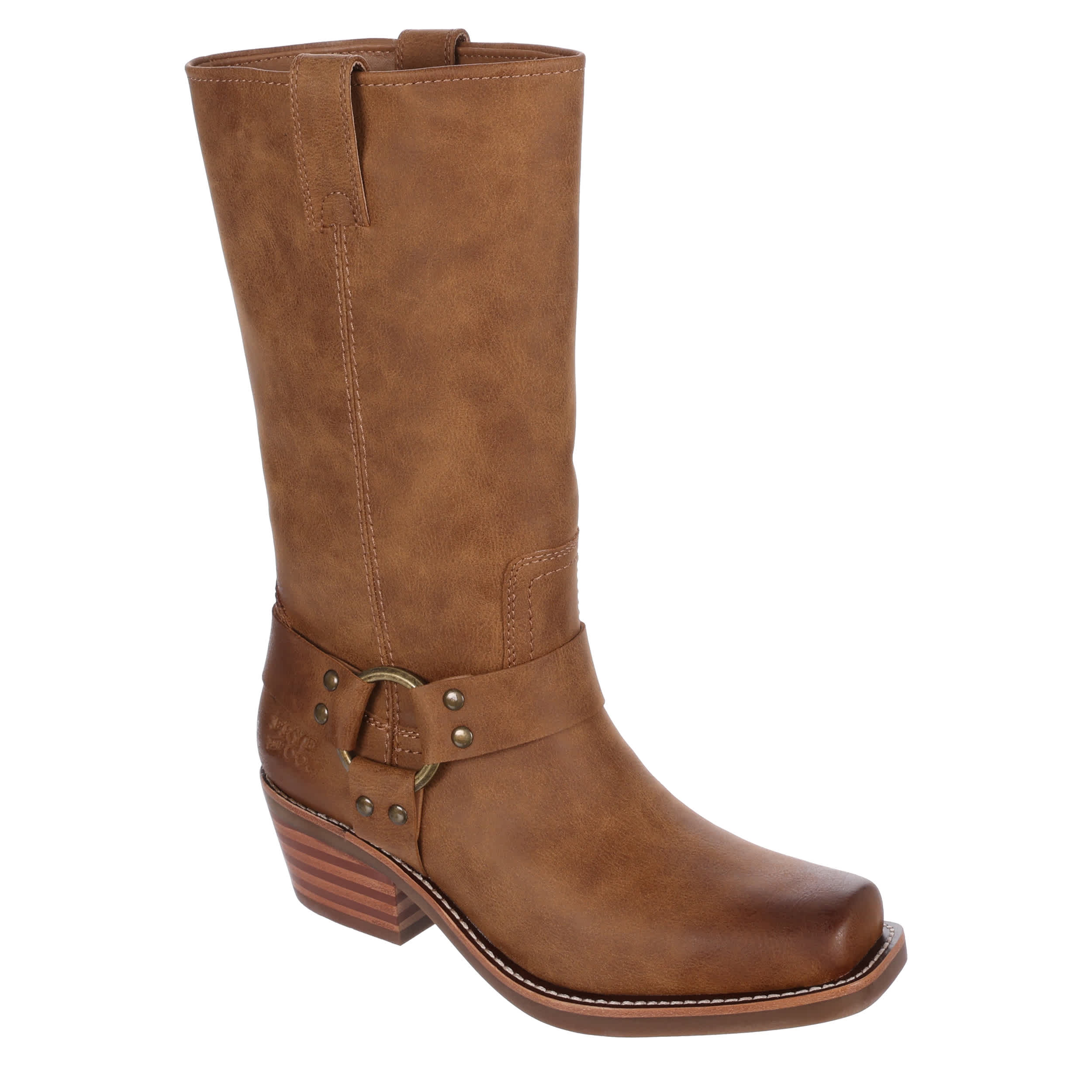 Add some edge with the Lorrie Harness boot. Featuring bold harness hardware and a soft, cushioned insole for out of the box comfort, these vegan leather boots boast a leather stacked heel with a durable textured outsole. Pair effortlessly with distressed denim or a leather jacket for a daily dose of cool.