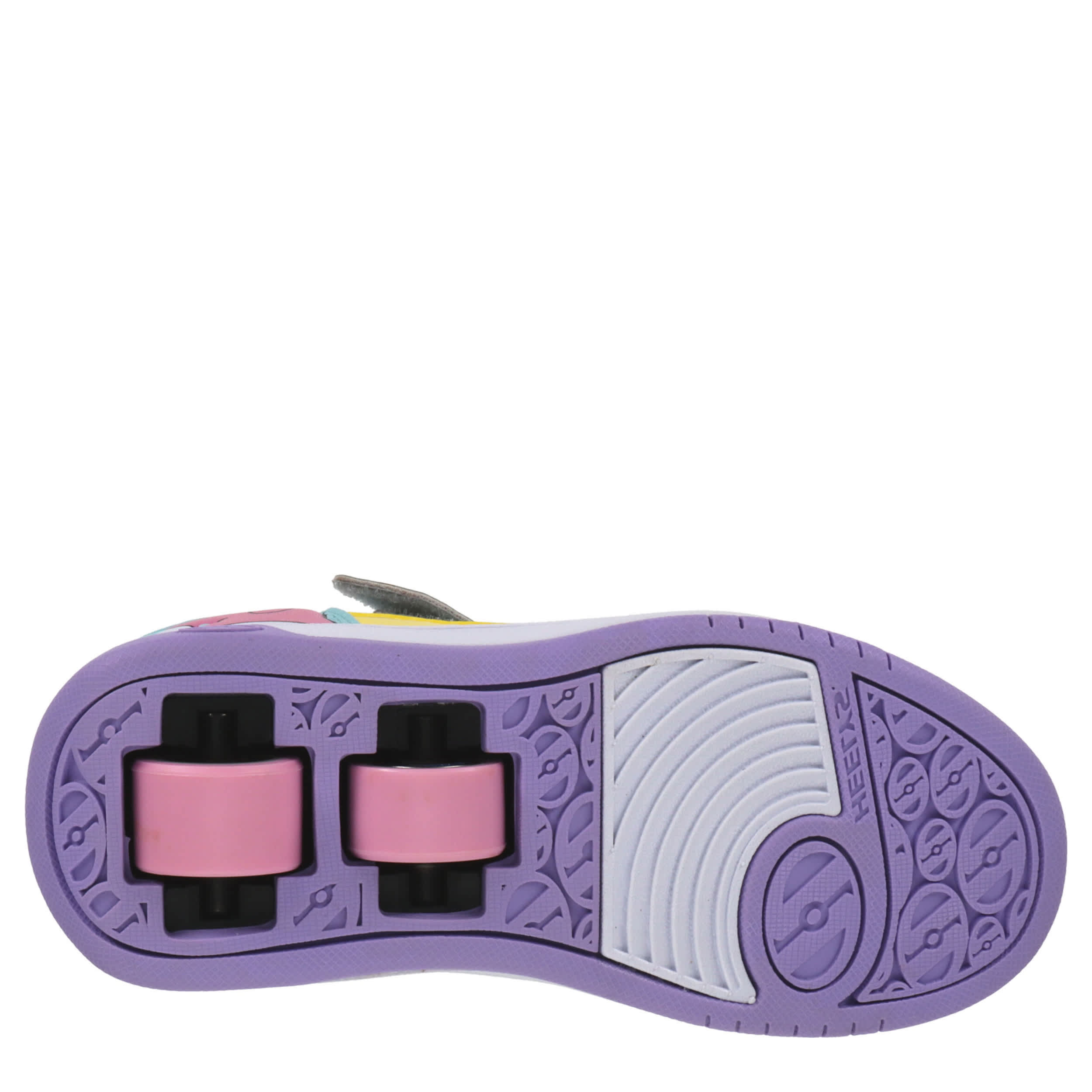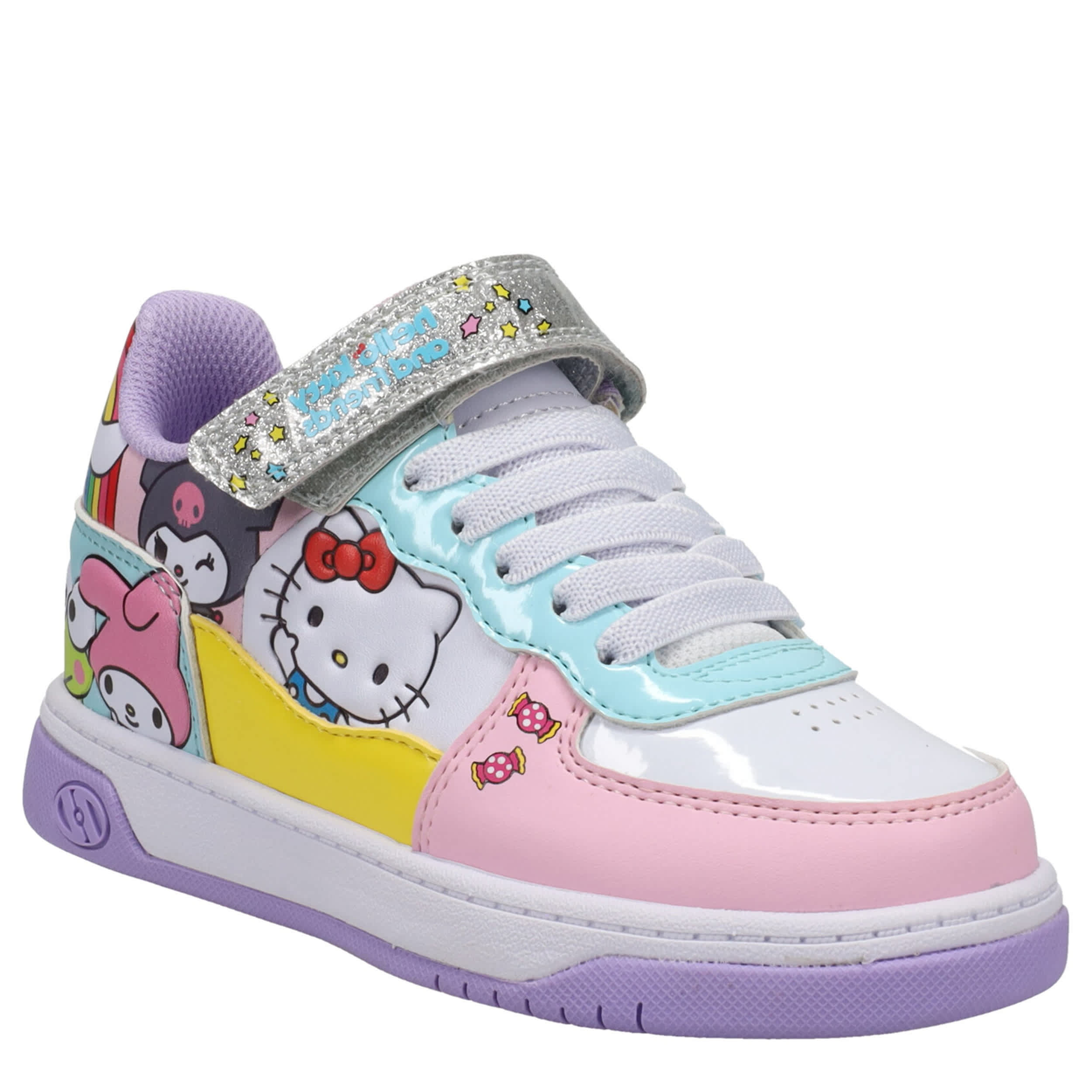 She'll roll out in style with the Heelys Hello Kitty Rezerve X2 girls’ sneaker. Made with a faux leather upper featuring cute designs of Hello Kitty and her friends, this shoe ensures easy entry with a hook/loop strap and elastic laces. The cushioned footbed offers comfort, while the rubber outsole provides durability and grip.