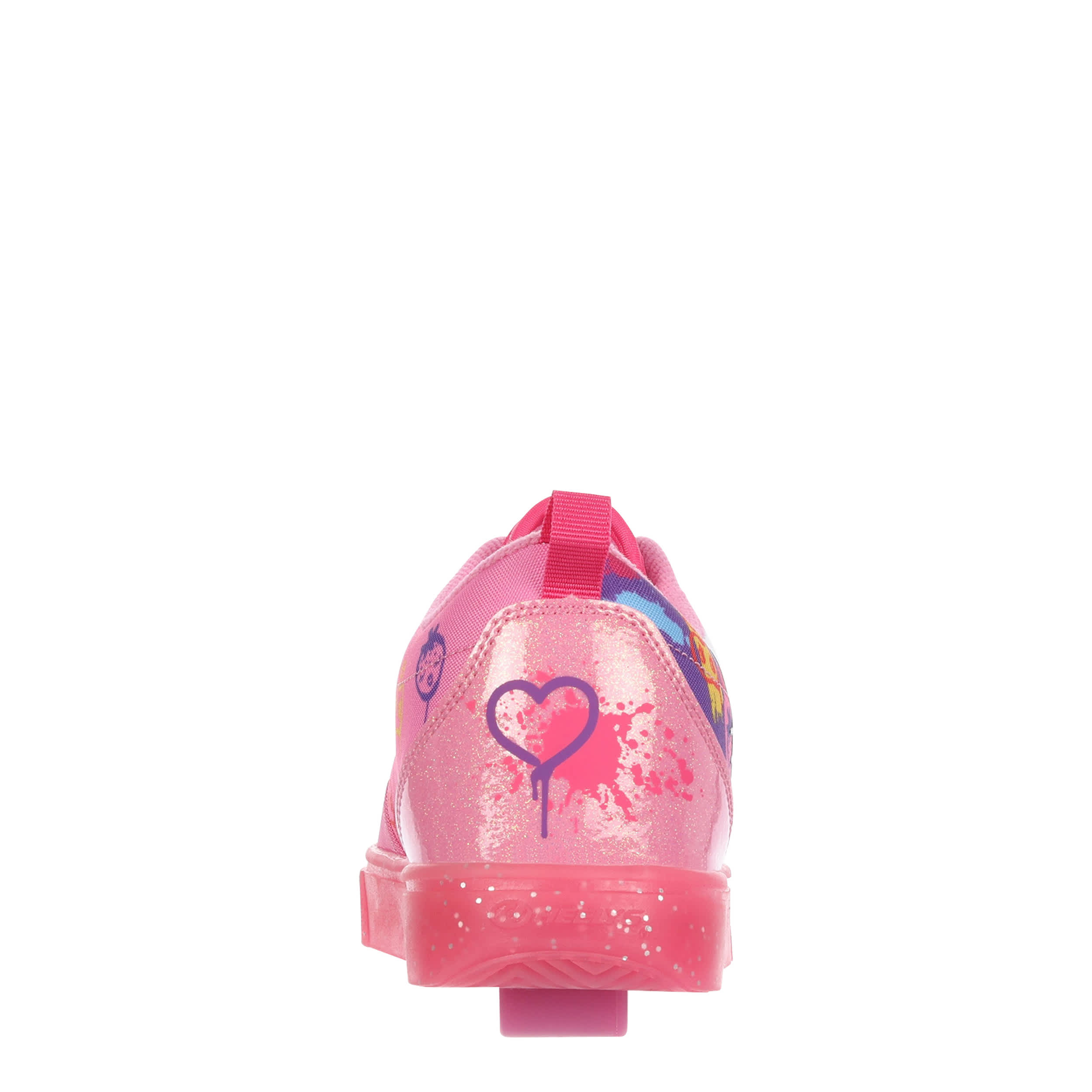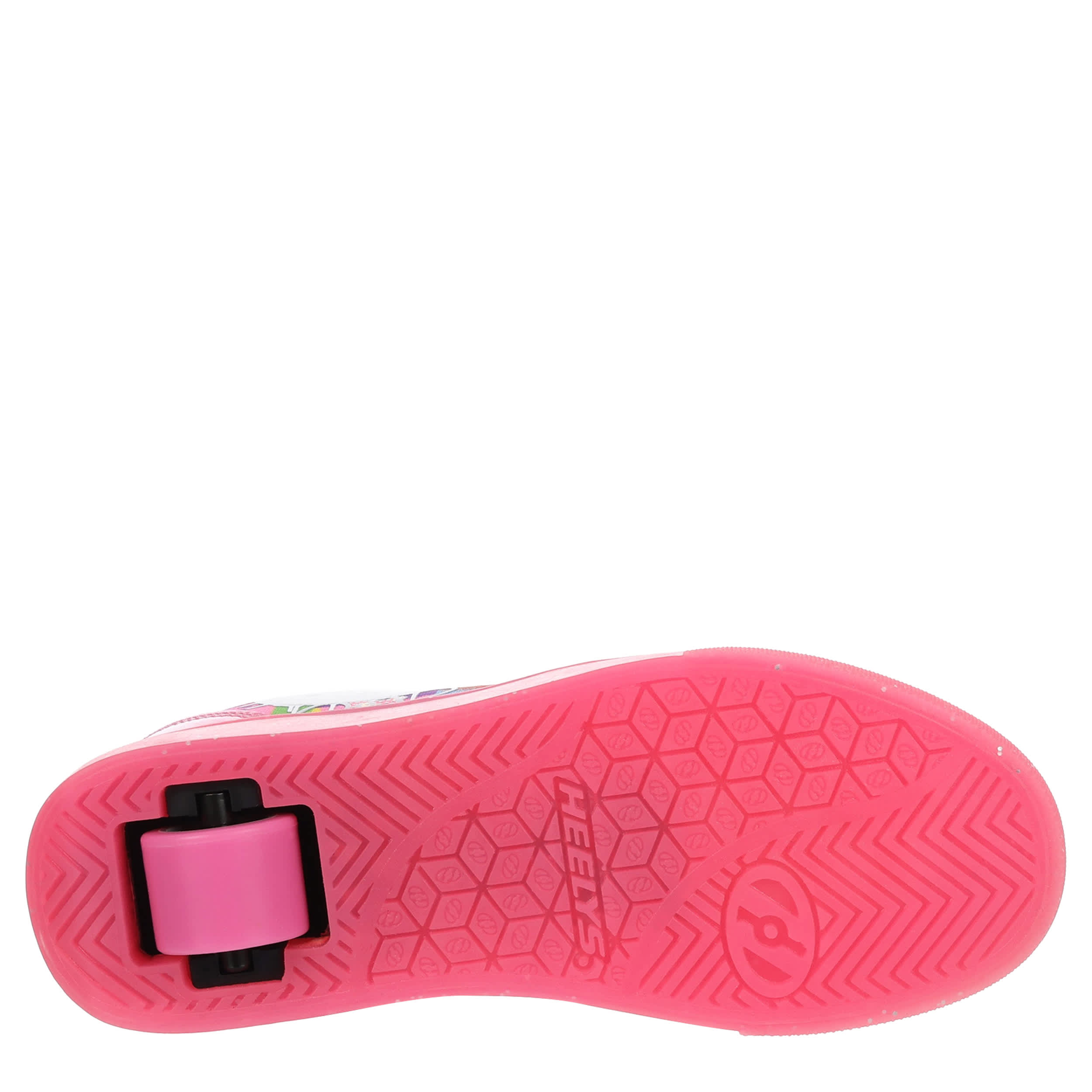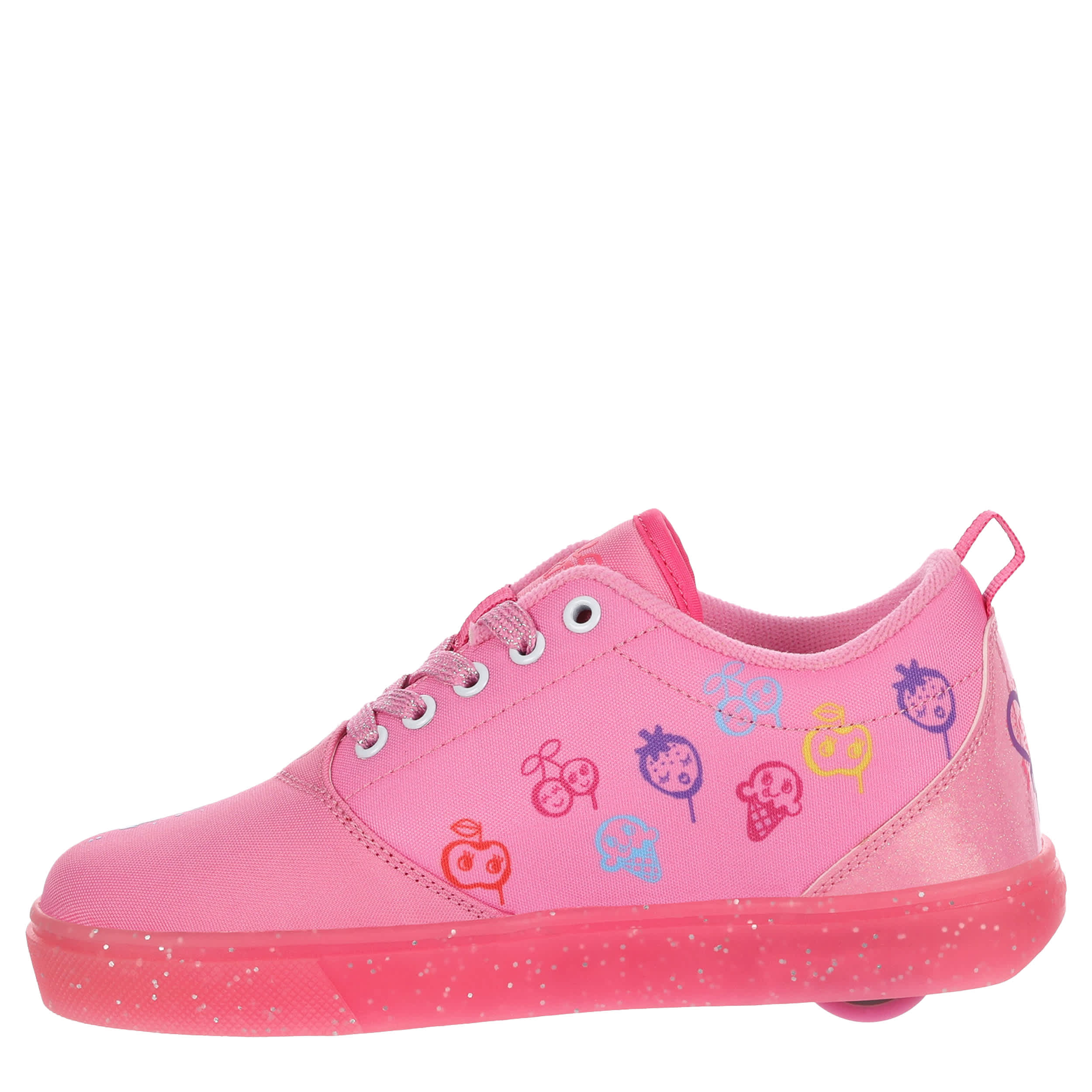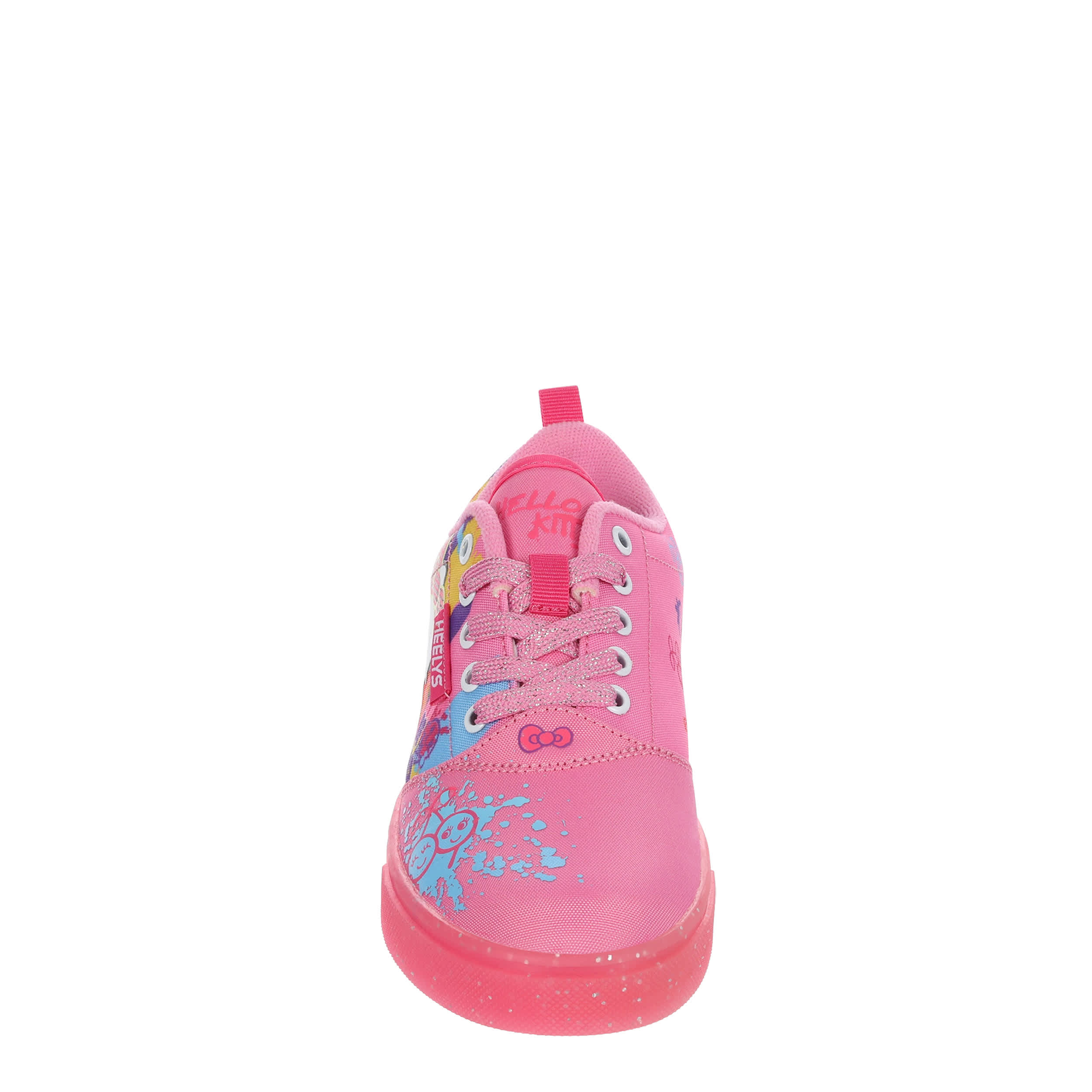 Switch up her style with the nylon canvas Heelys Pro 20 Hello Kitty girls' sneaker. Featuring a graffiti printed upper with large Hello Kitty on the side, this skate shoe also has glittery laces and a glitter patent heel. The padded footbed provides comfort while the outsole helps with durability.