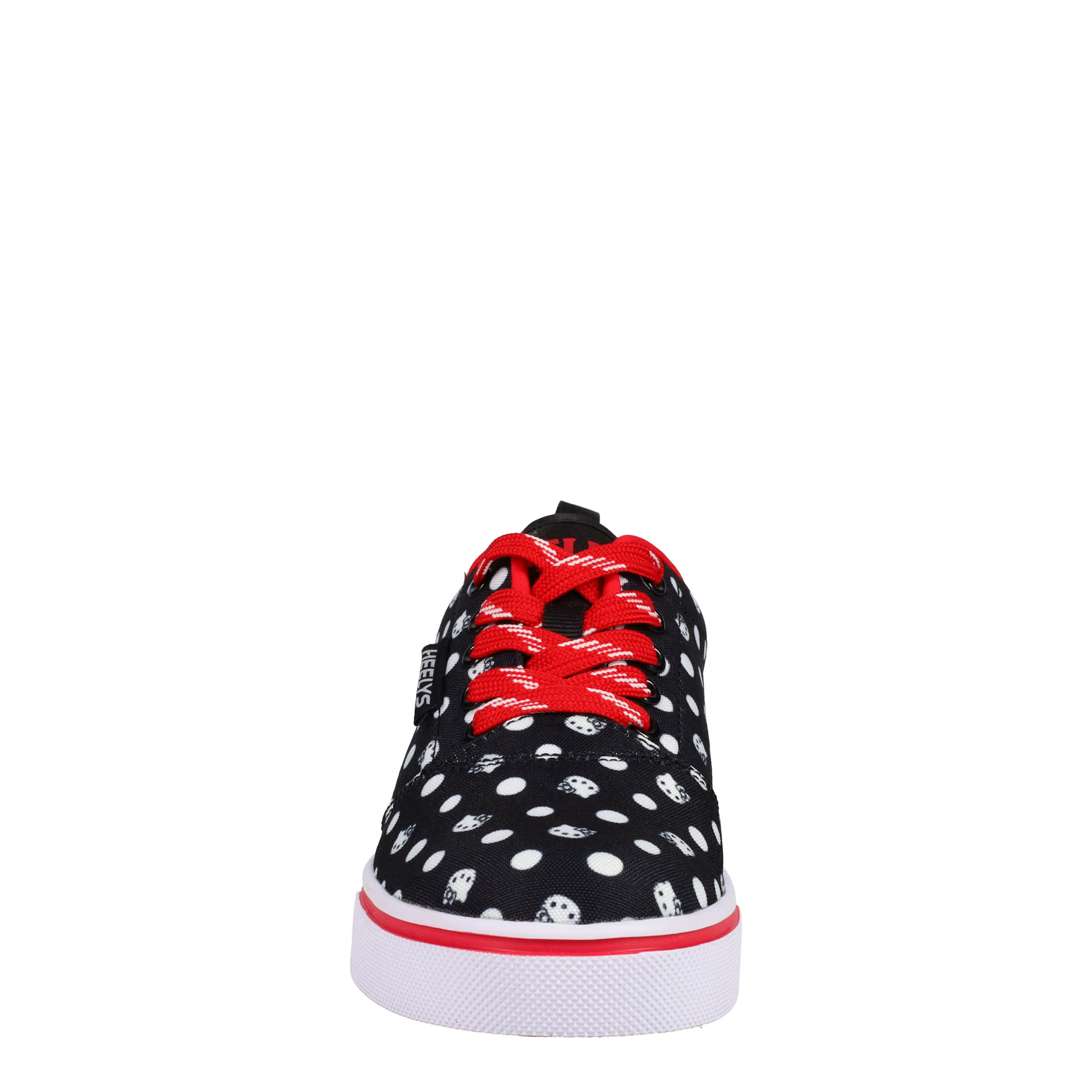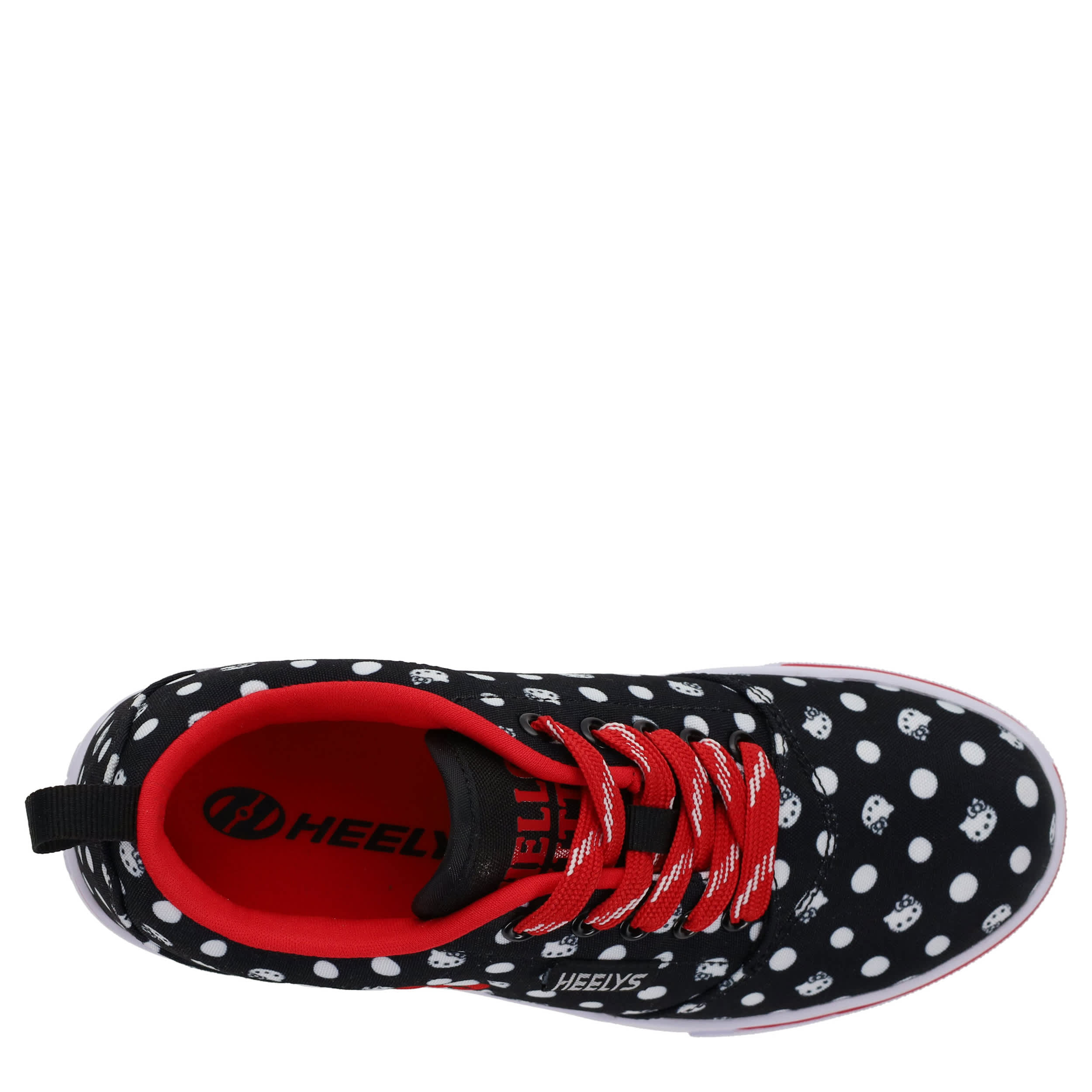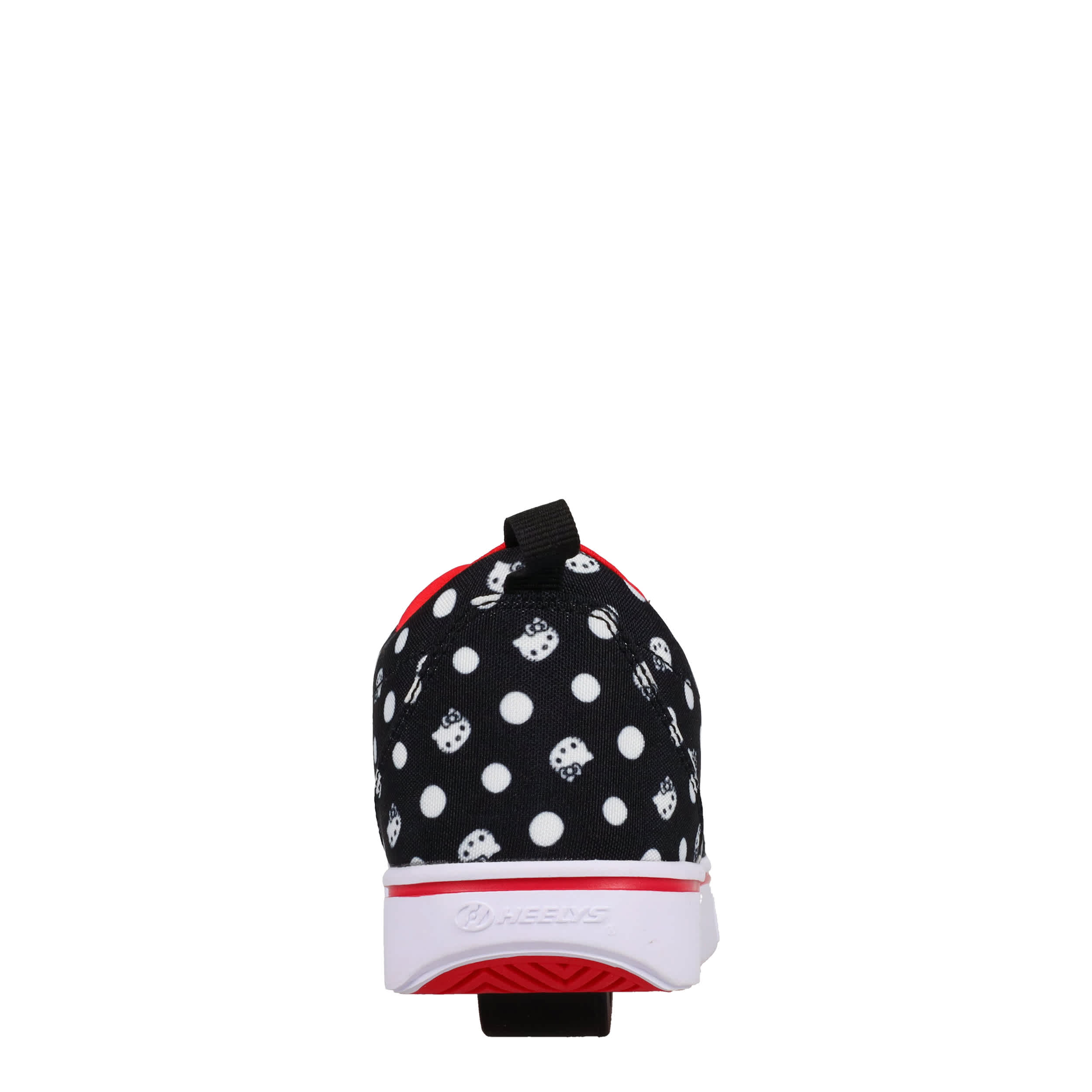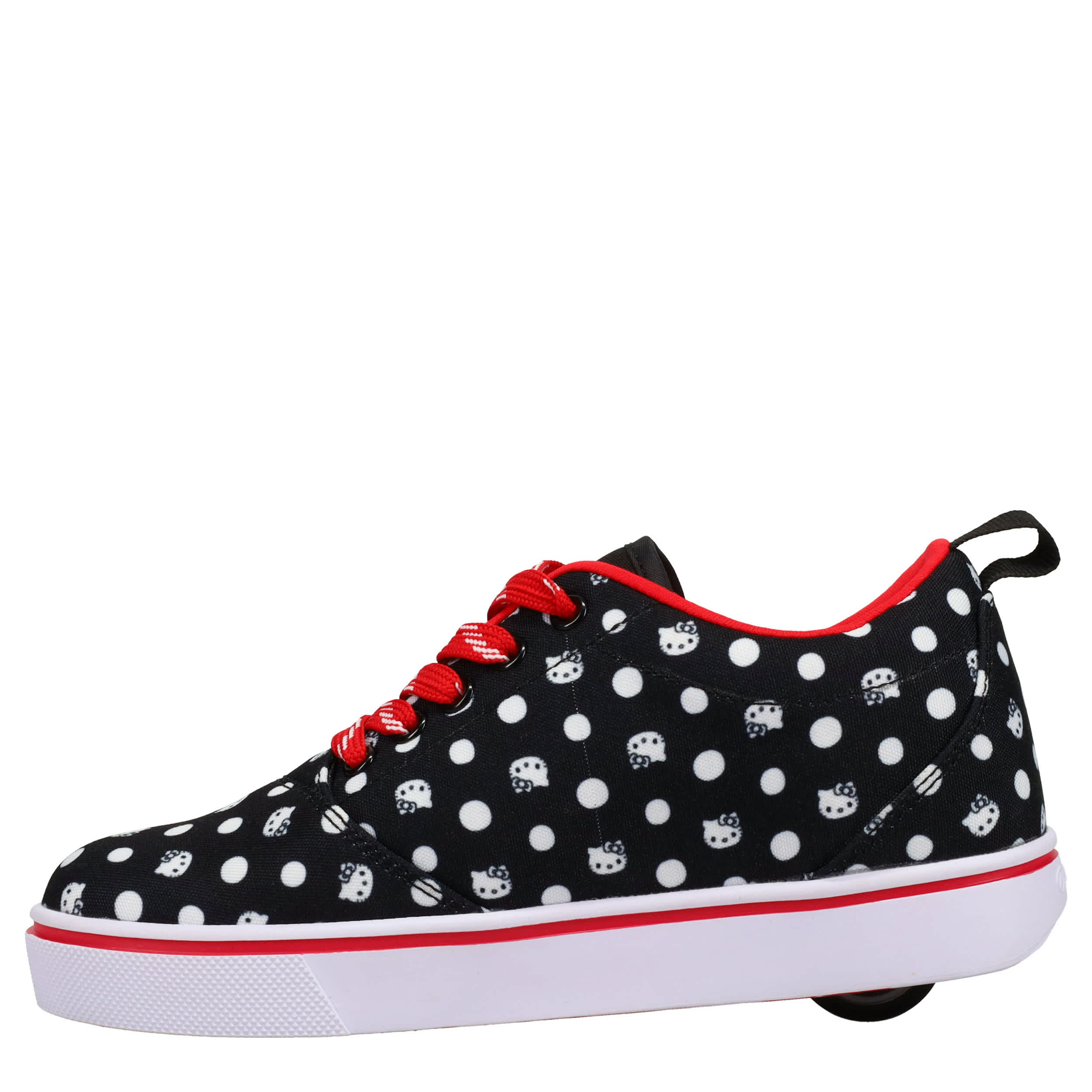 She'll have a blast in the Heelys Hello Kitty Pro 20 girls' sneaker. Featuring a polka dotted upper with large Hello Kitty image, this skate shoe has a low-profile rubber wheel and cute polka dot laces. Padding around the collar and tongue provides comfort while also securing the foot.