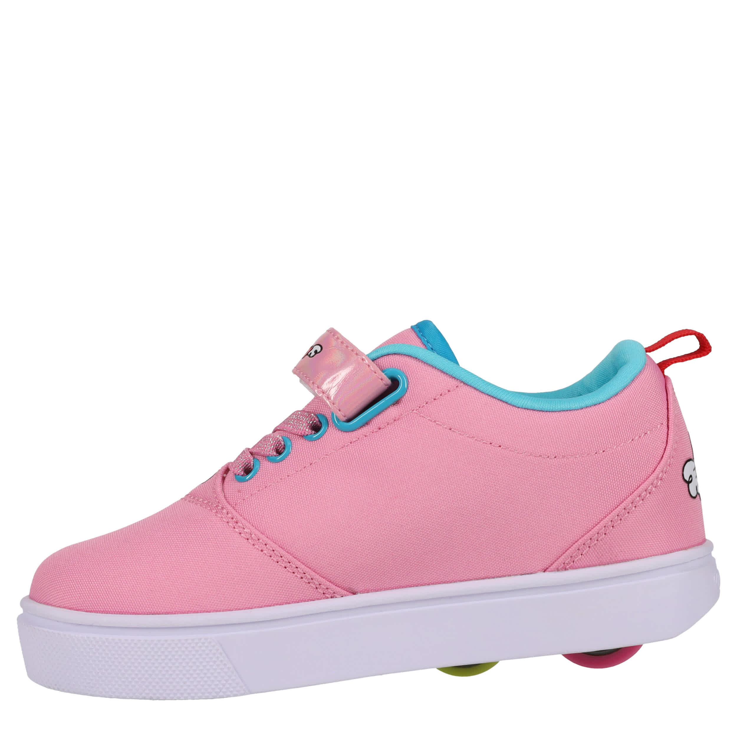 She'll have a blast in the Heelys Hello Kitty Pro 20 X2 girls' sneaker. Featuring enlarged Hello Kitty print with an iridescent velcro strap, this skate shoe has two wheels for extra stability. Padding around the collar and tongue provides comfort while also securing the foot.