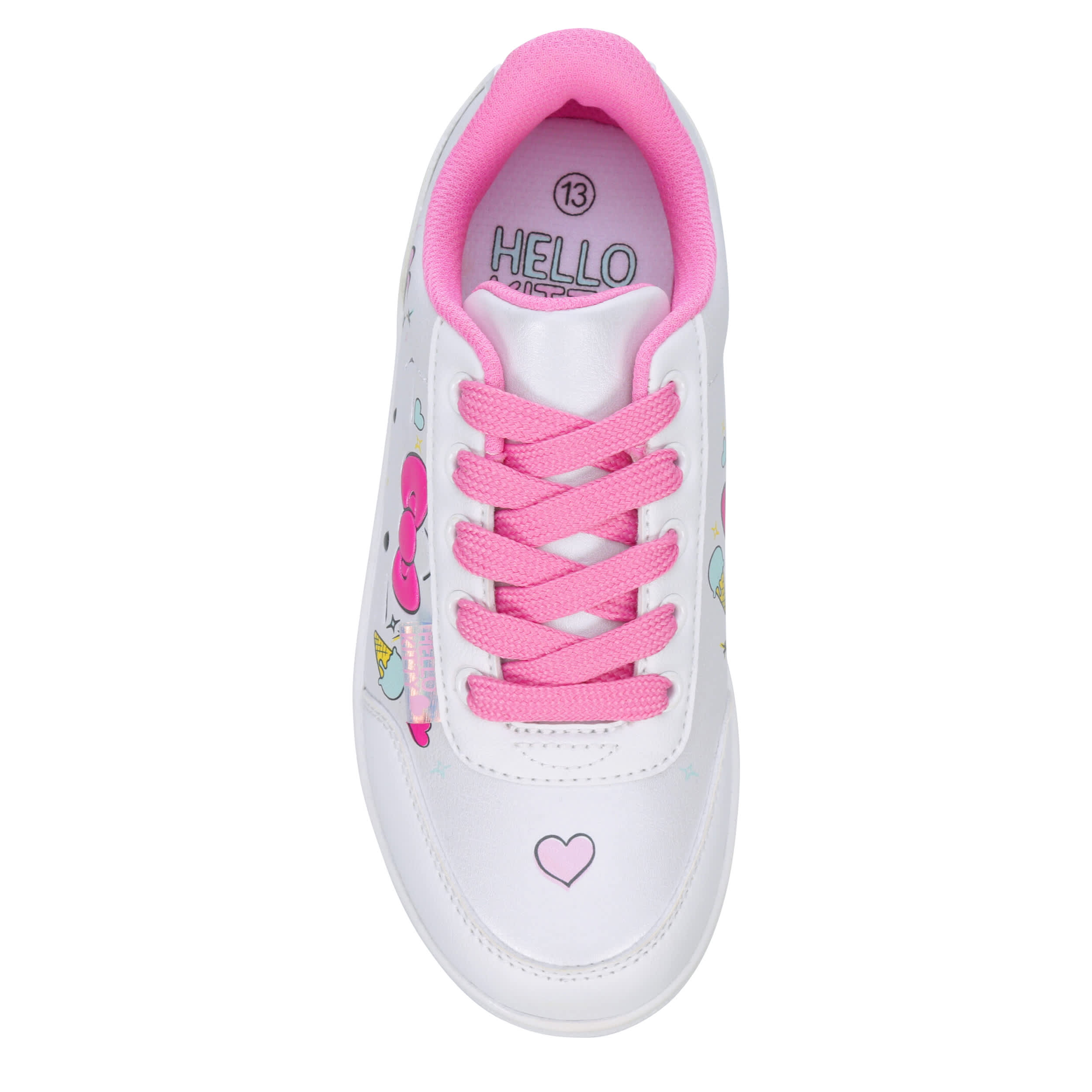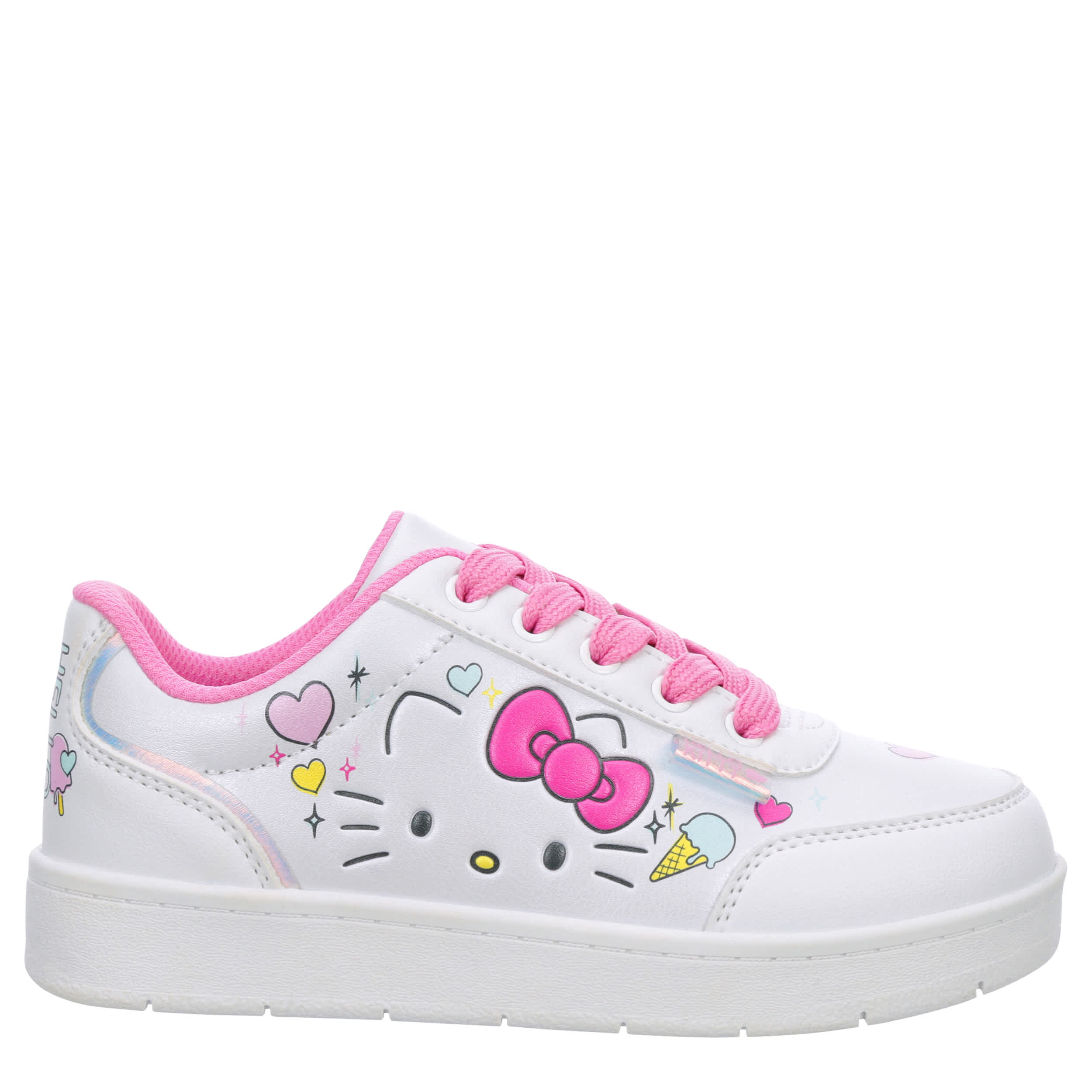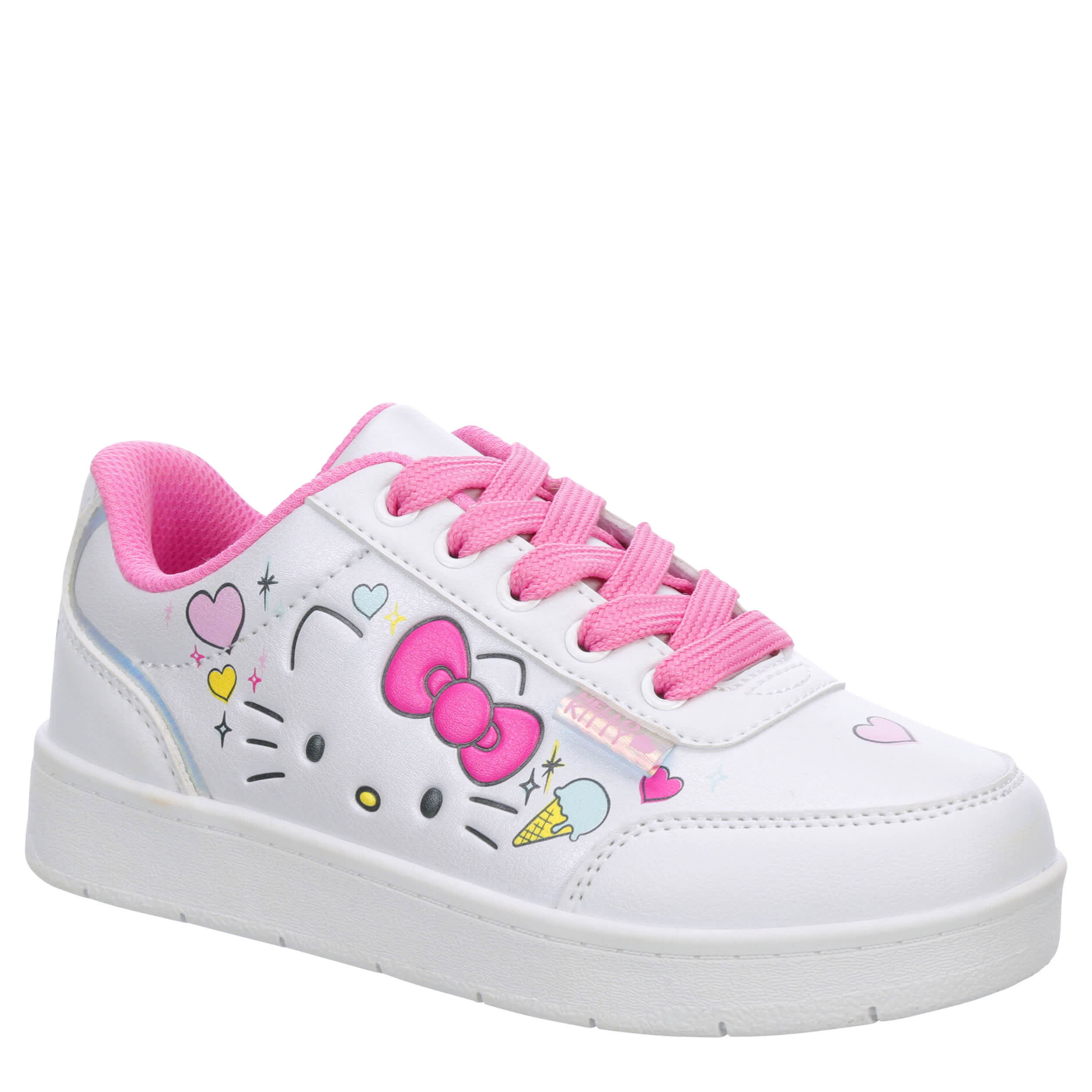 Let her rep her favorite character with the Hello Kitty girls' sneaker. Featuring a faux leather upper with a cute Hello Kitty graphic, this shoe will be her new summer go-to. The cushioned footbed and synthetic outsole offer all-day support for playtime fun.