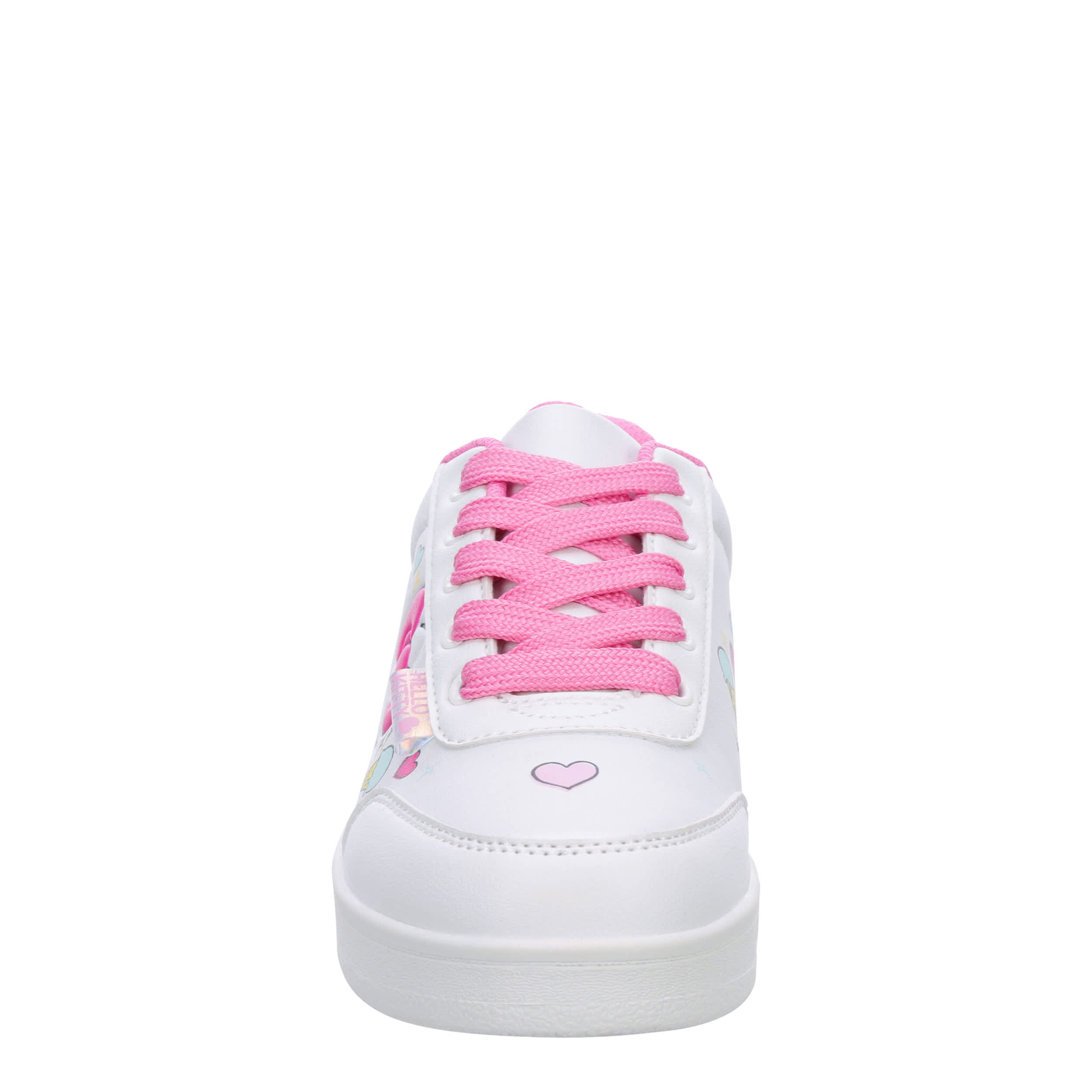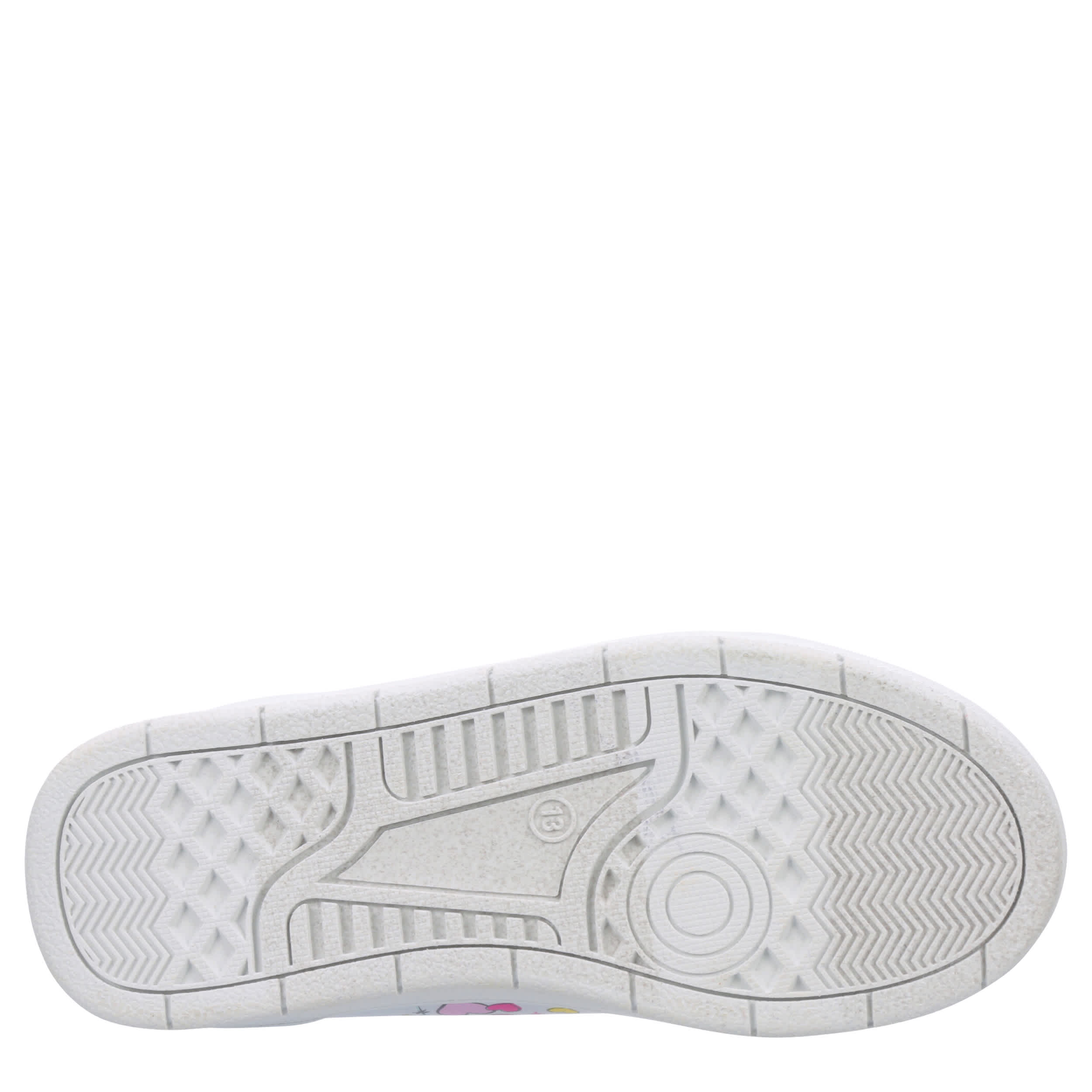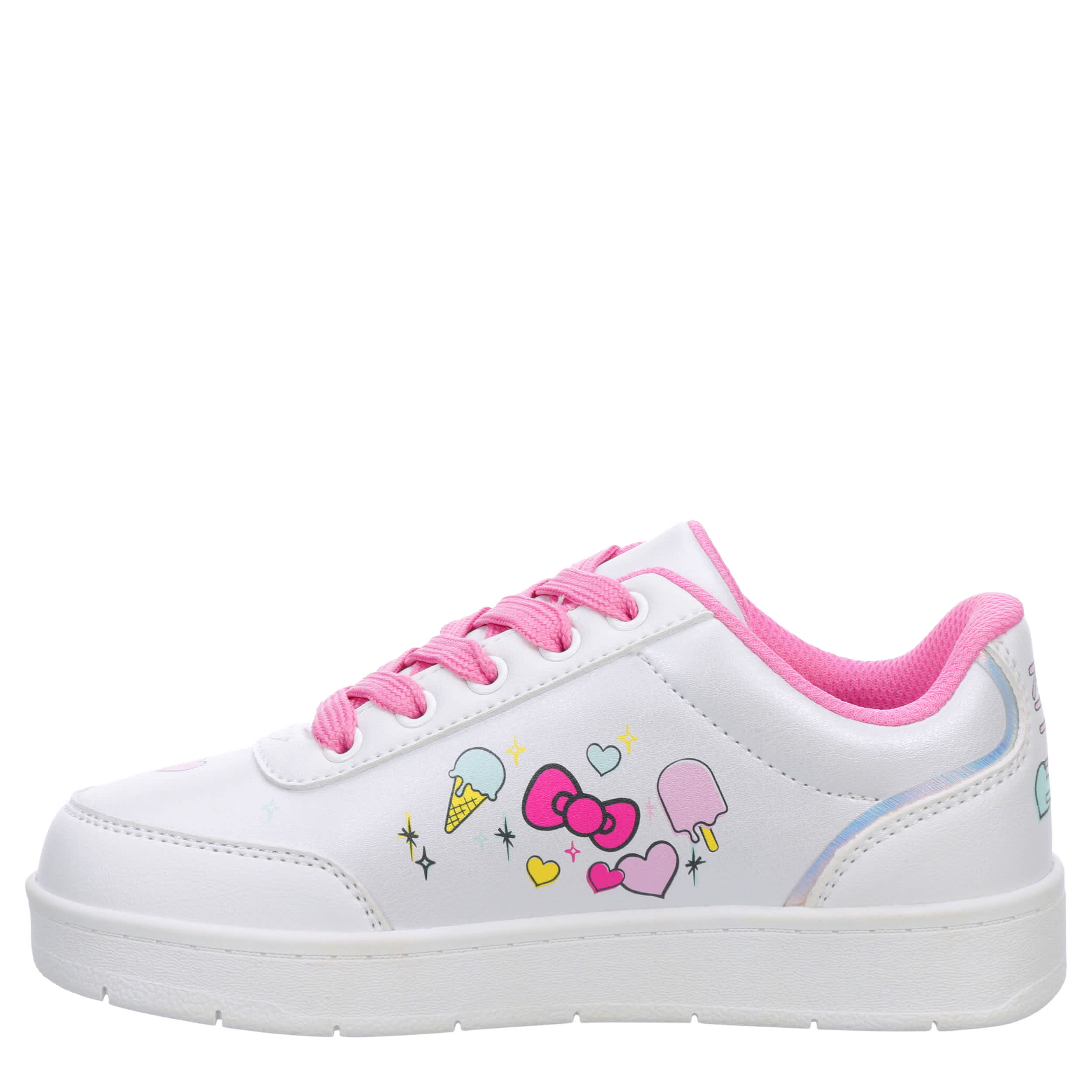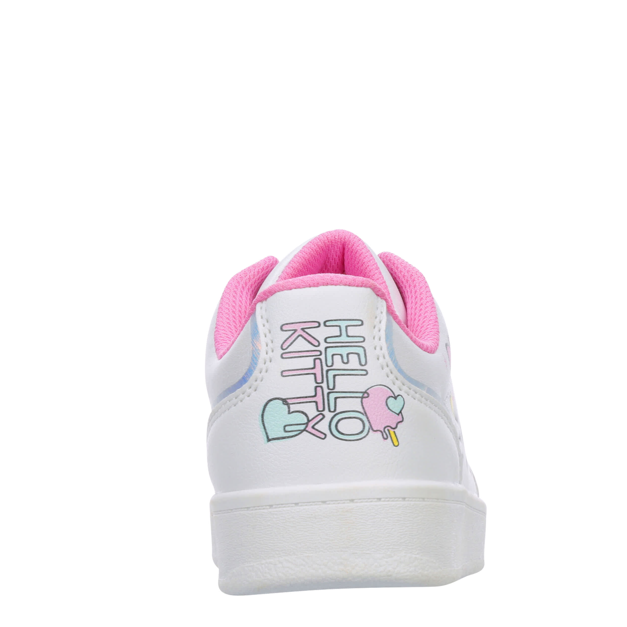 Let her rep her favorite character with the Hello Kitty girls' sneaker. Featuring a faux leather upper with a cute Hello Kitty graphic, this shoe will be her new summer go-to. The cushioned footbed and synthetic outsole offer all-day support for playtime fun.