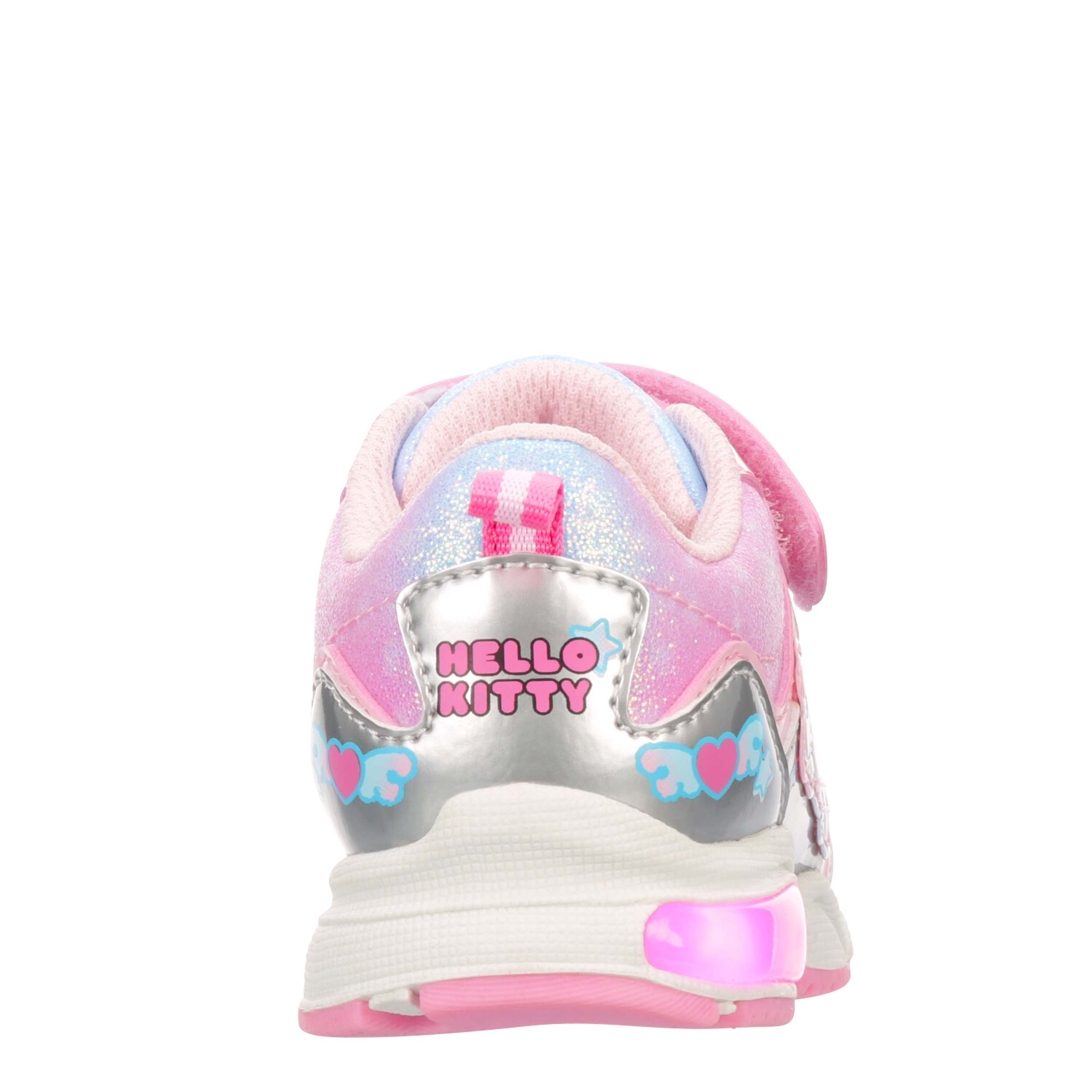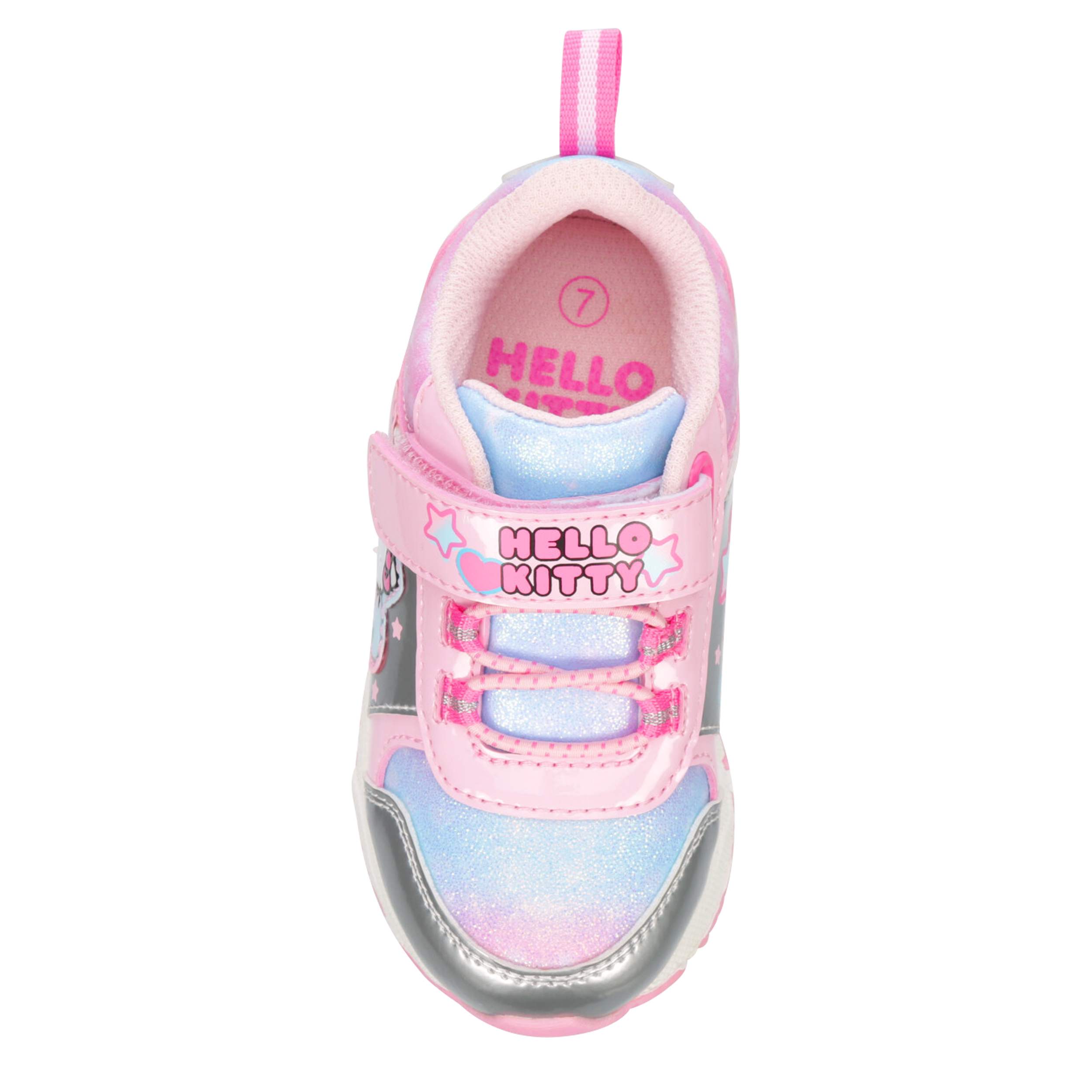 Add some fun to her look with the Hello Kitty girls' sneaker. Featuring a faux leather upper with metallic accents and a cute Hello Kitty graphic, this shoe has a hook/loop strap for a secure fit and a heel pull tab for easy entry. The cushioned footbed comforts your steps, while the synthetic outsole is eye-catching with its flashing detail.