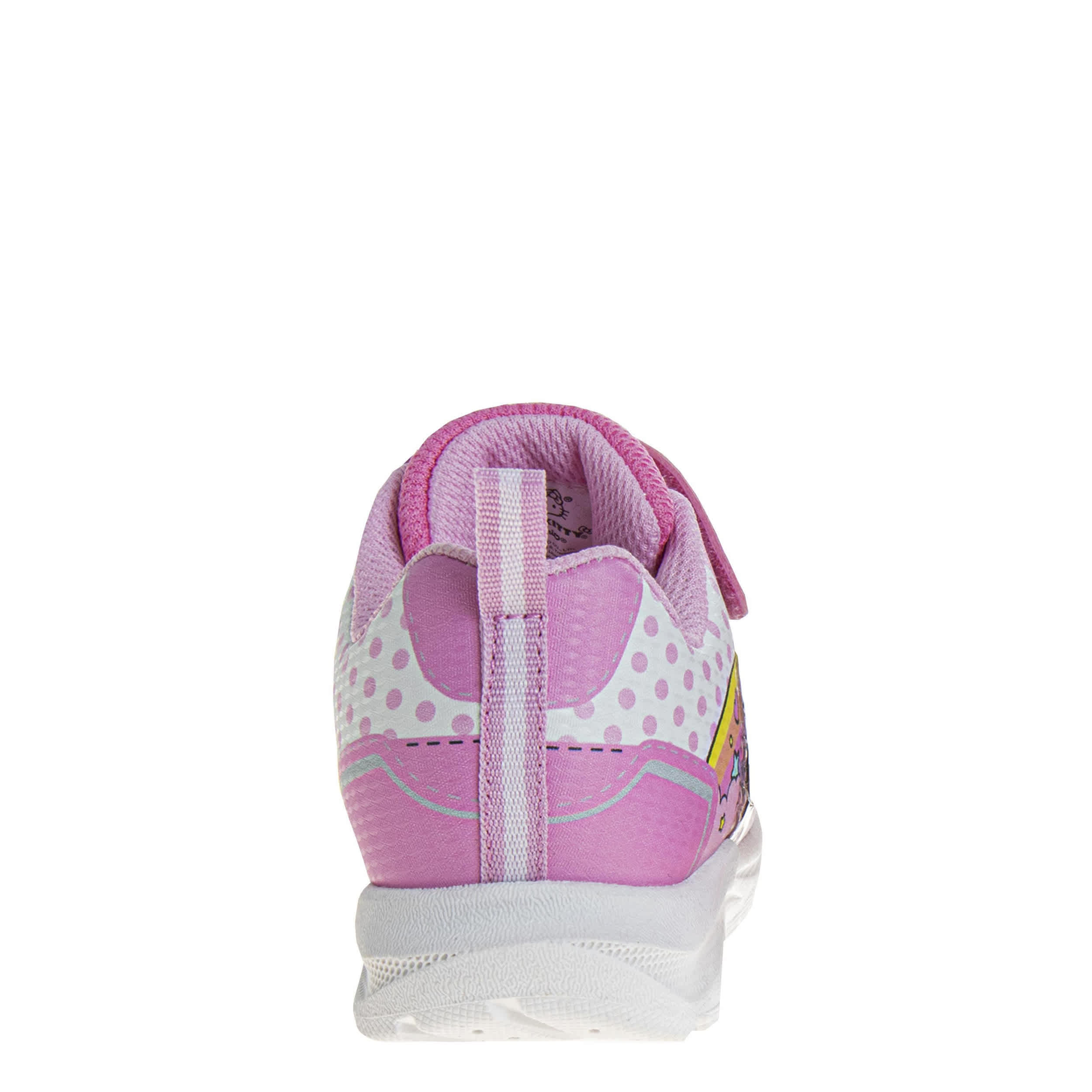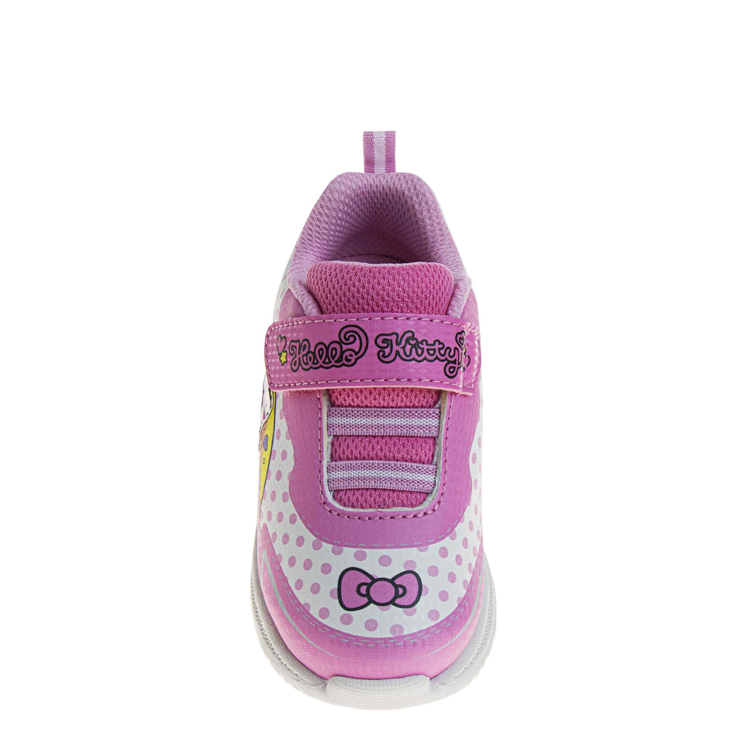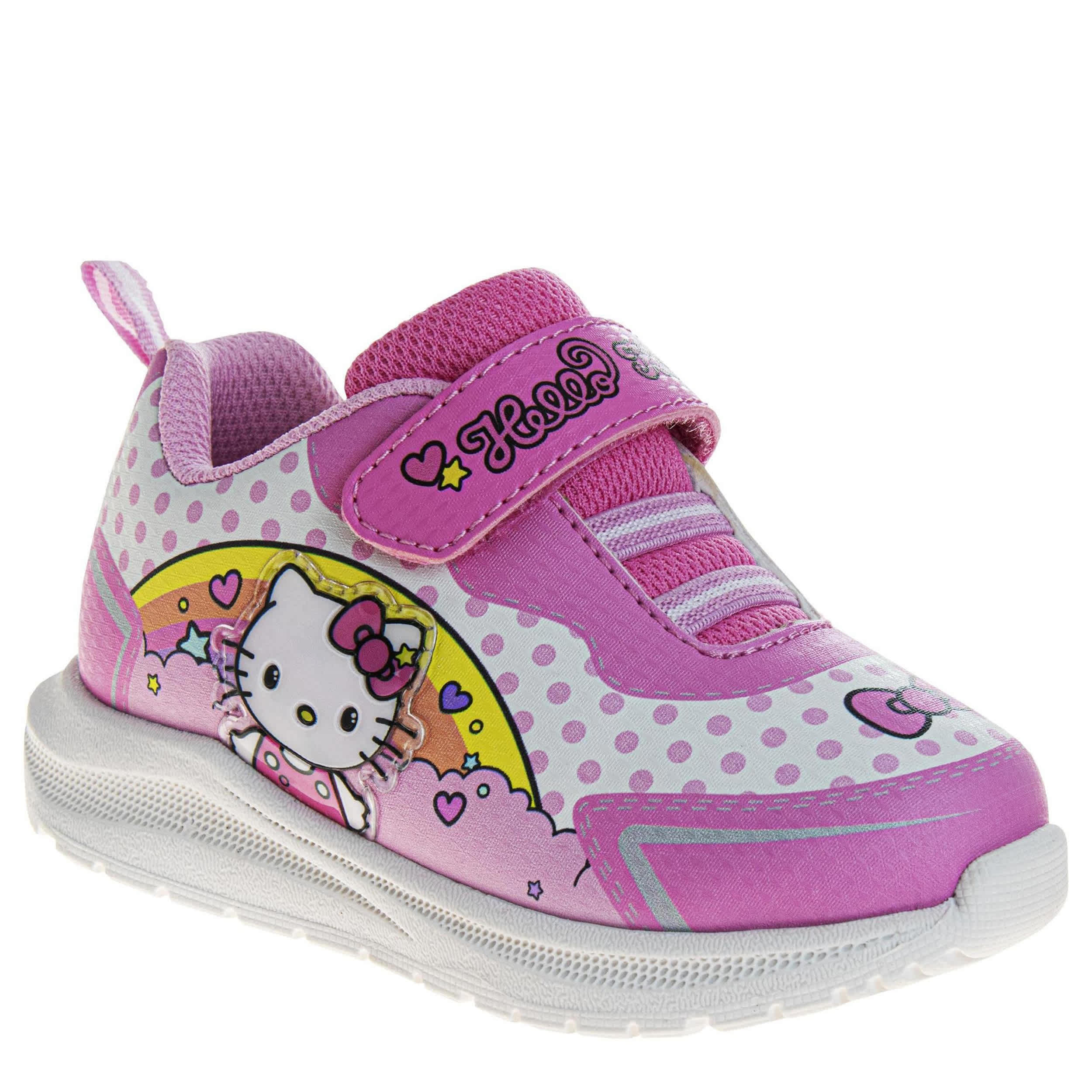 Let Hello Kitty guide your little one's steps with the Hello Kitty toddler girls' sneaker. Featuring a synthetic upper with Hello Kitty graphics on the side, these sporty shoes are too cute with easy-on elastic laces. The padded collar and insole comfort her little foot, while the durable outsole supports every step.