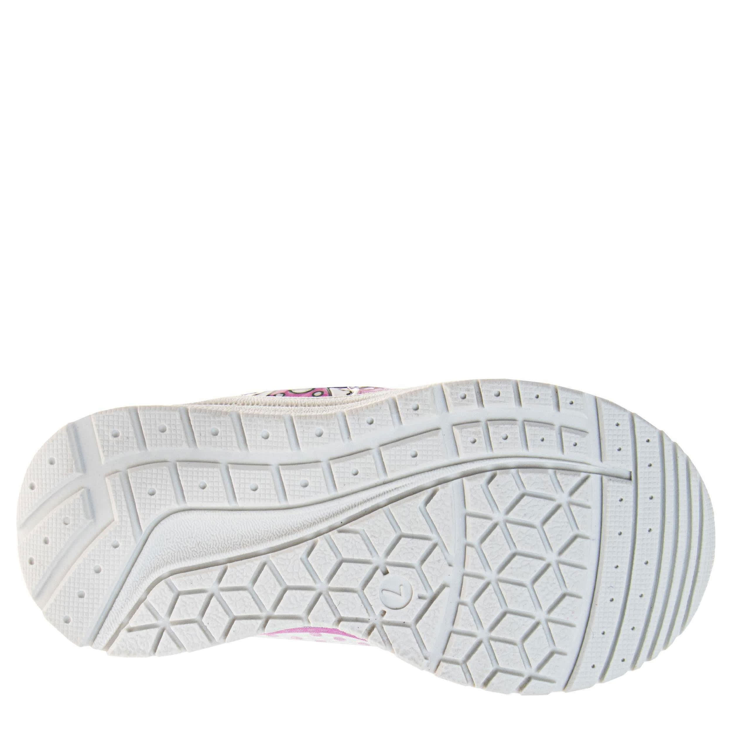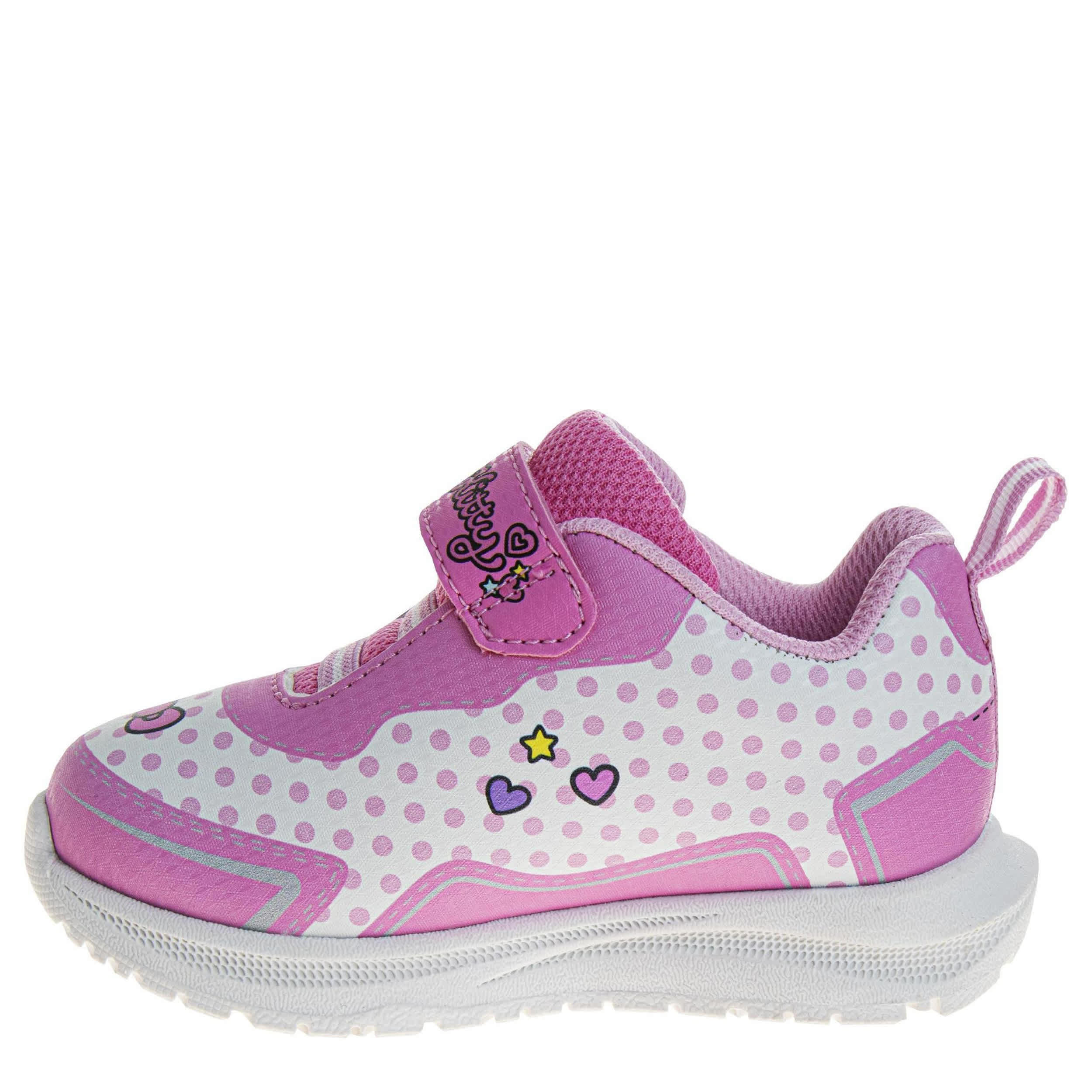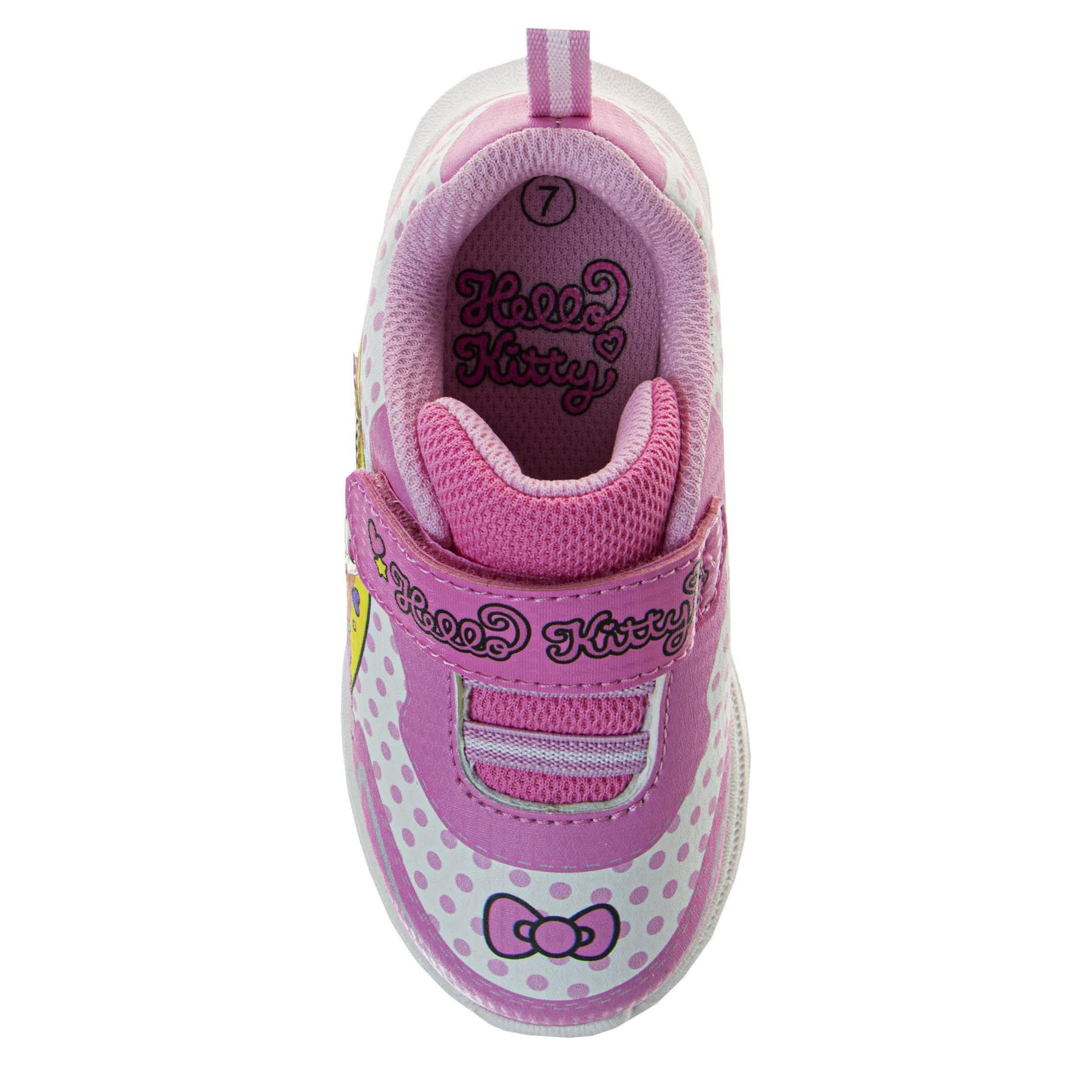 Let Hello Kitty guide your little one's steps with the Hello Kitty toddler girls' sneaker. Featuring a synthetic upper with Hello Kitty graphics on the side, these sporty shoes are too cute with easy-on elastic laces. The padded collar and insole comfort her little foot, while the durable outsole supports every step.