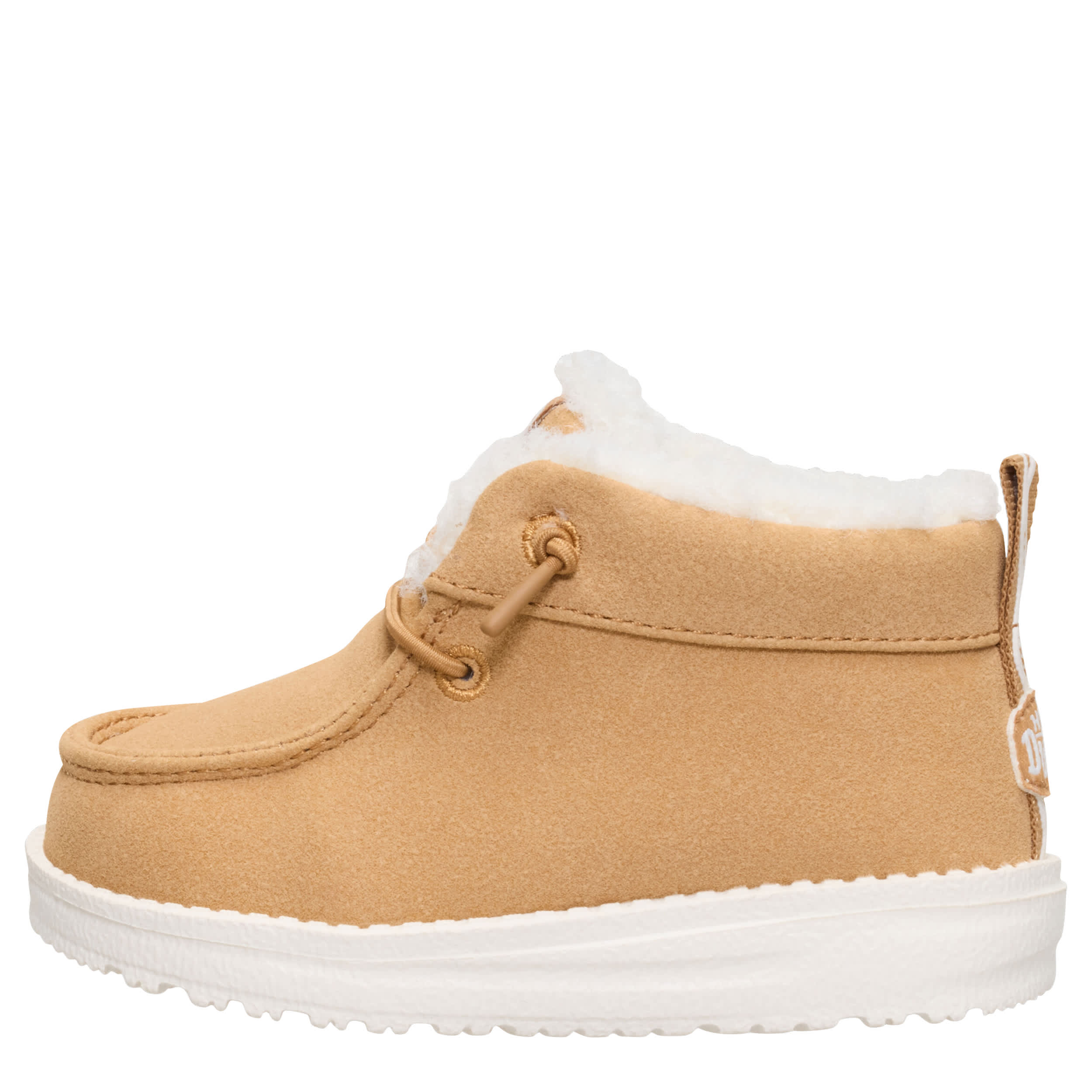 Warm feet follow fall in the HEYDUDE Lildude Cozy infant boys' slip-on sneaker. With a soft suede upper featuring a sherpa lining for extra warmth, this slip-on has silicone grip at the heel for easy entry. The removable insole offers cushioning while the flexible outsole supports his little moves.