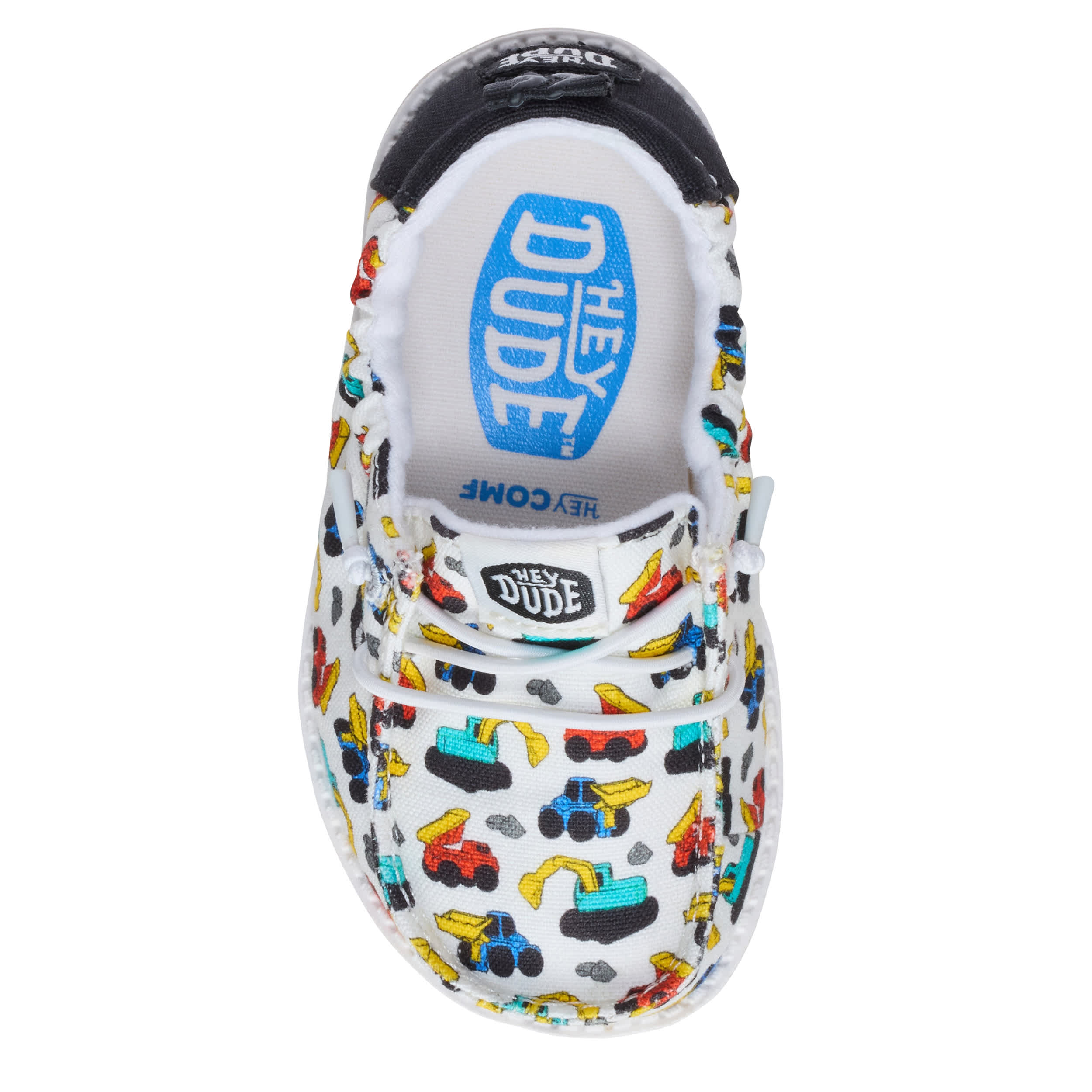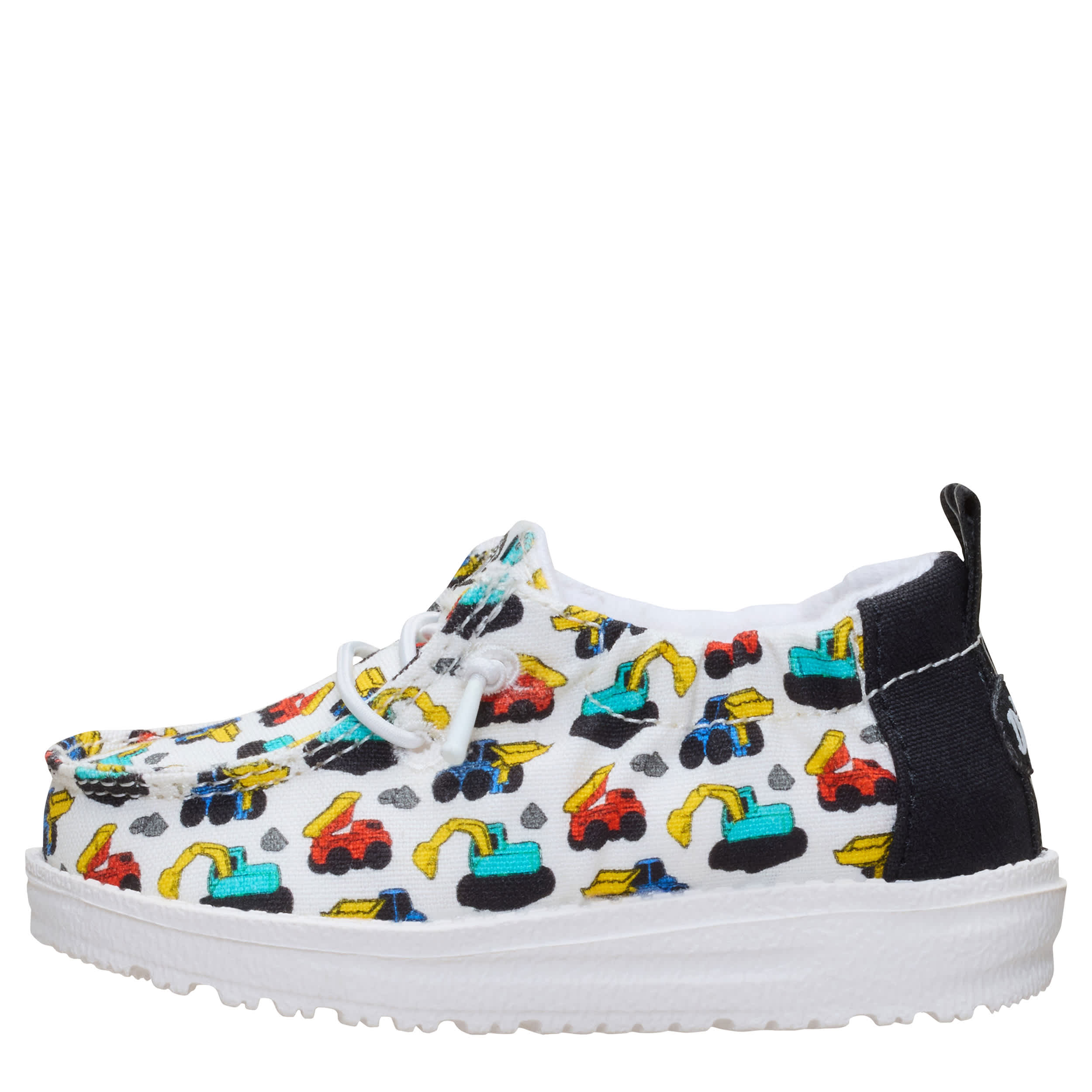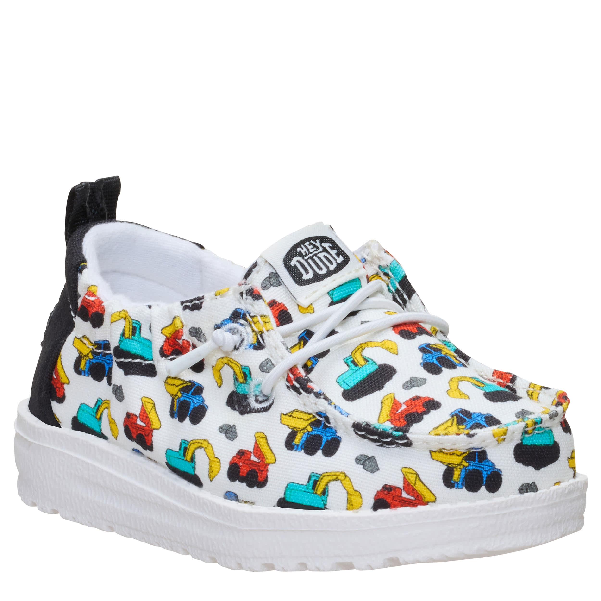Relax and style him in the HEYDUDE Lildude Slip On Novelty infant boys' slip-on sneaker. With a textile upper featuring a toy truck print for extra joy, this elasticized shoe has a rear pull tab for easy entry. The removable insole offers cushioning while the ultralight outsole sets him free to explore unfettered.