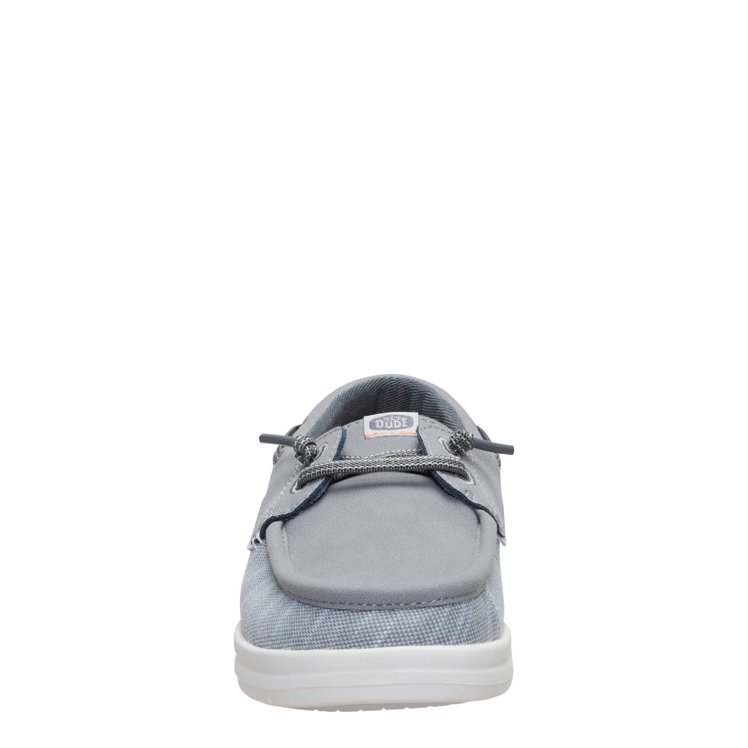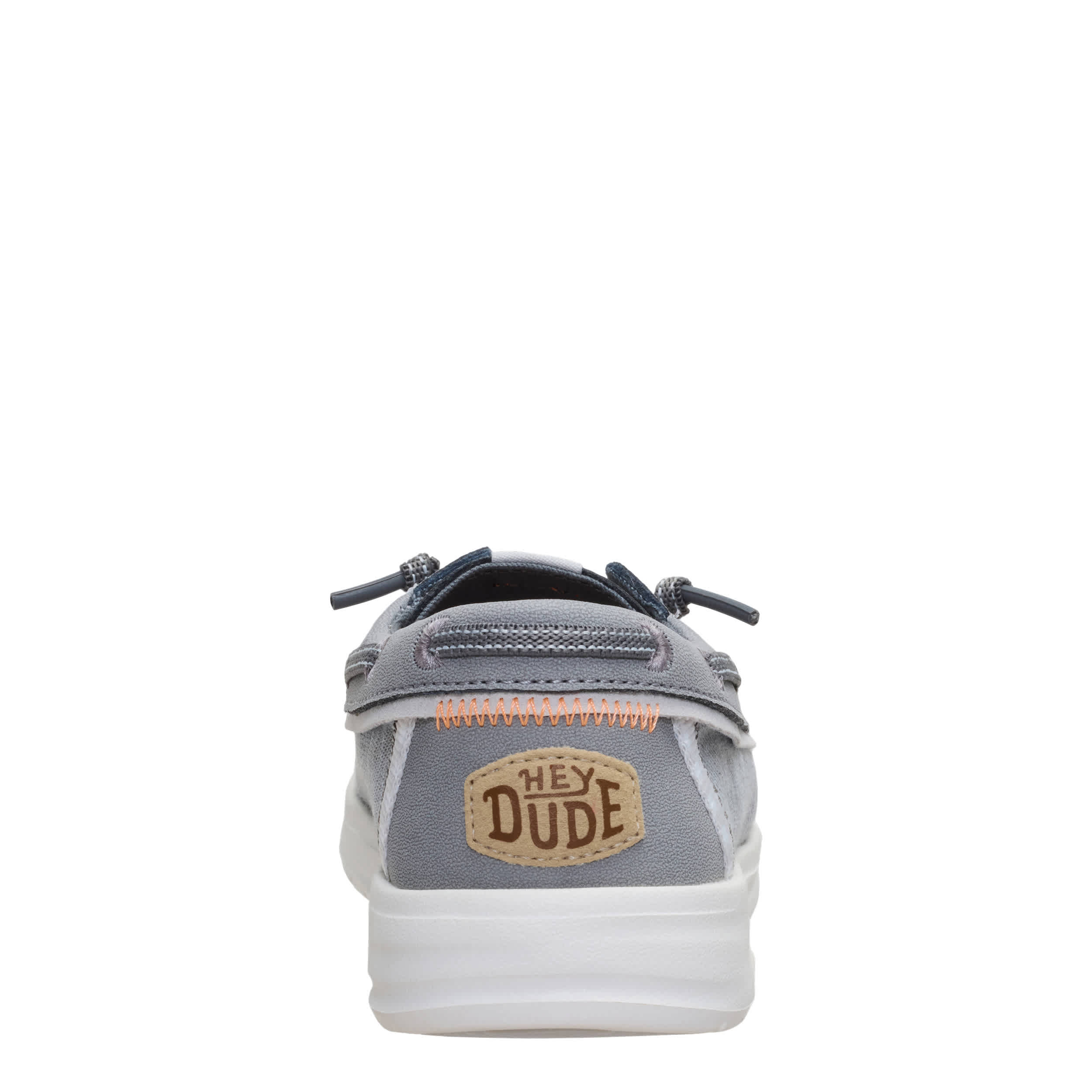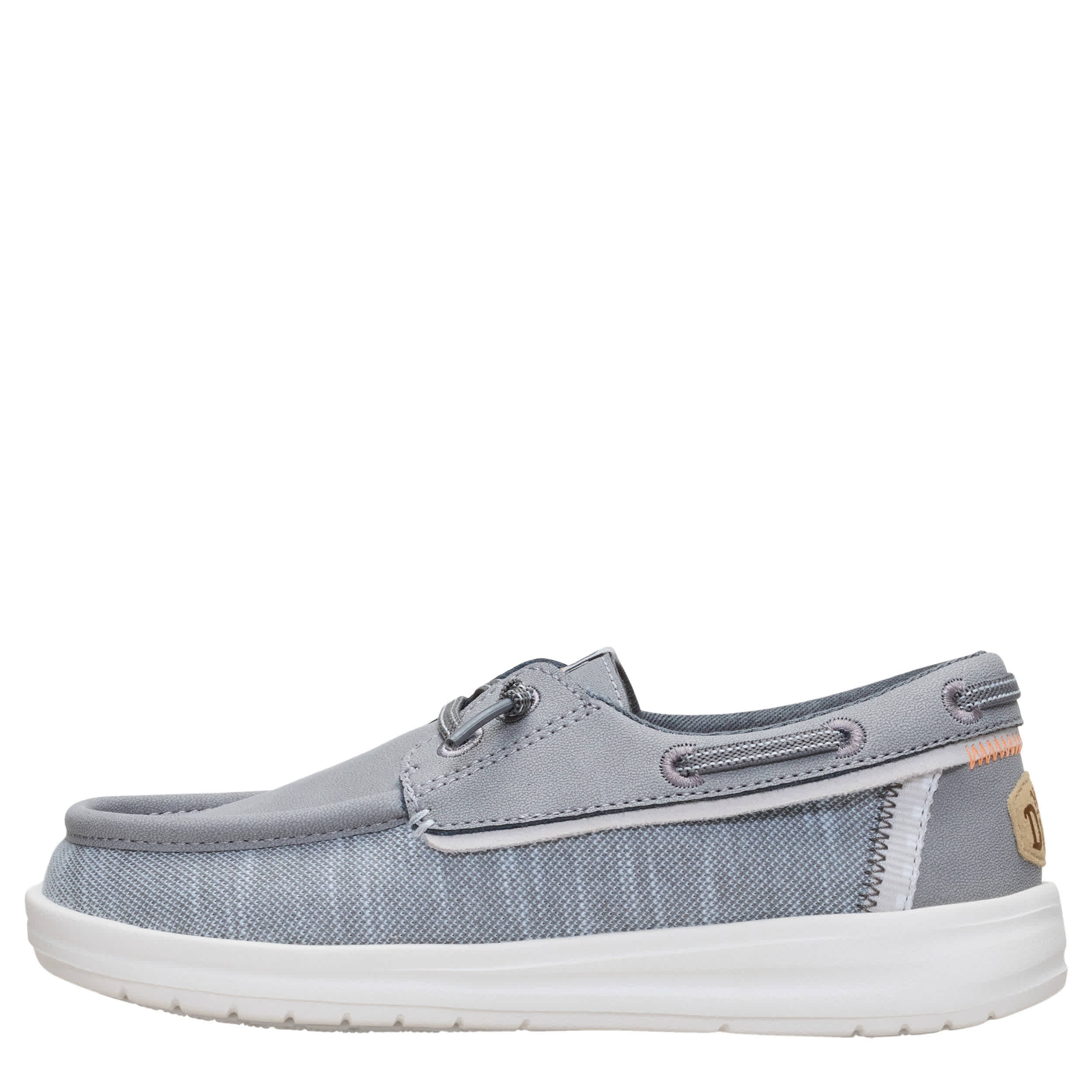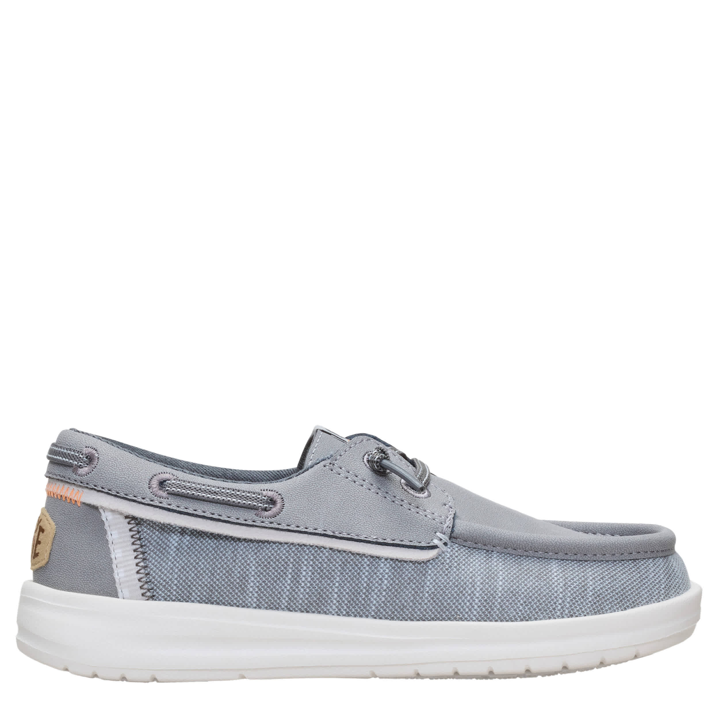 Enjoy the laidback style of the HEYDUDE Wells Classic boys' boat shoe. With a textile & faux leather upper featuring a padded collar, this slip-on shoe is great for casual walking or traveling. The removable insole protects his foot with every step, while the lightweight outsole provides fantastic traction on various surfaces.