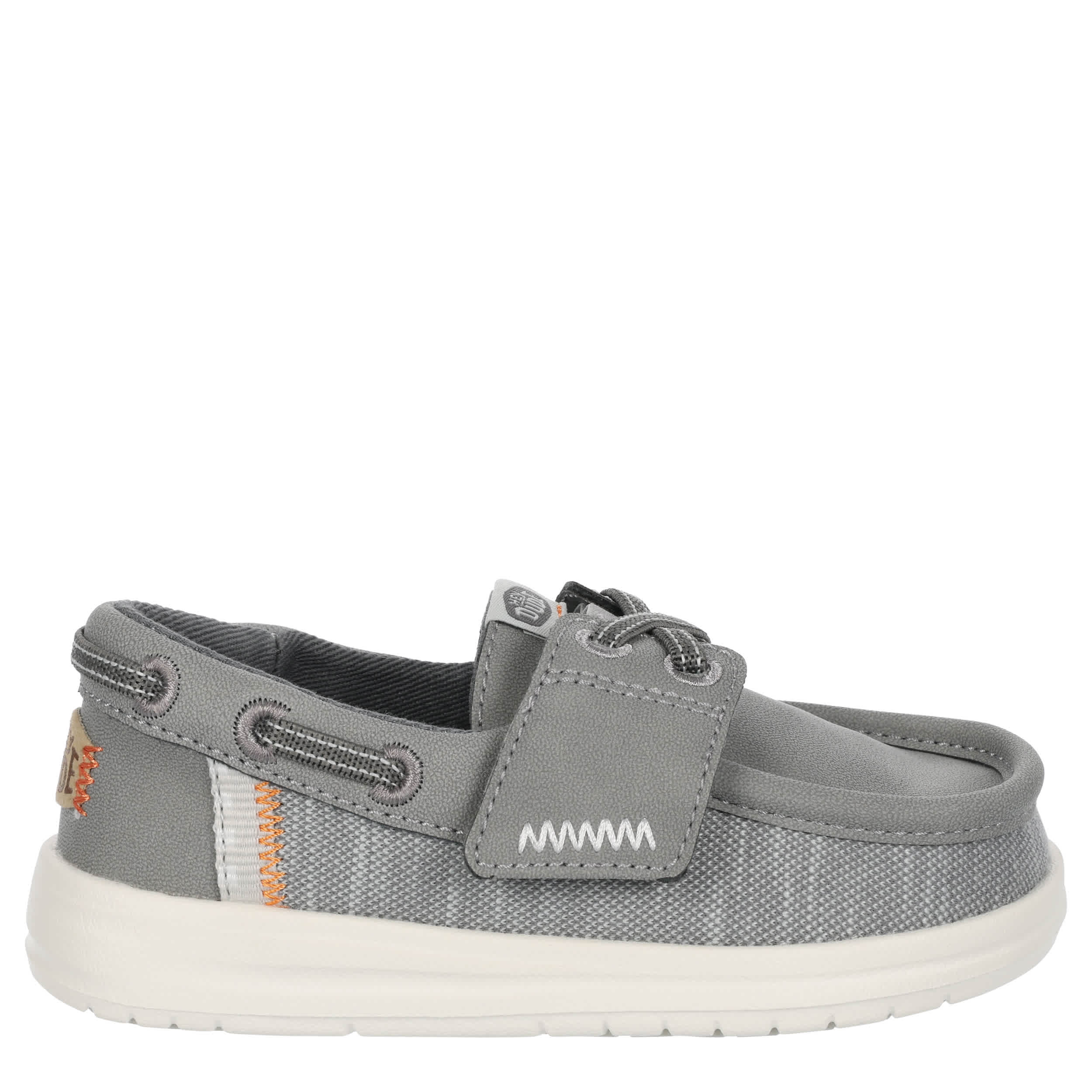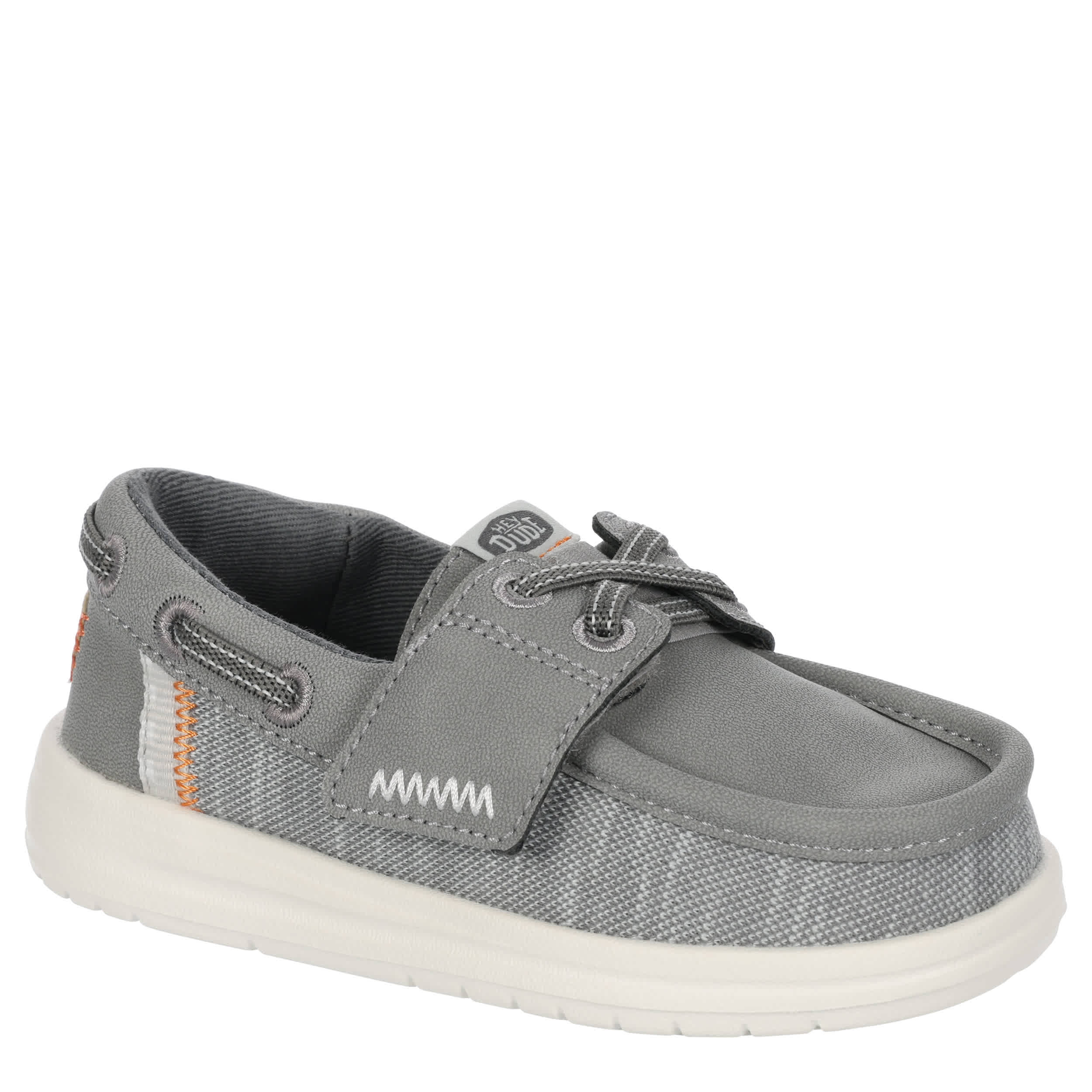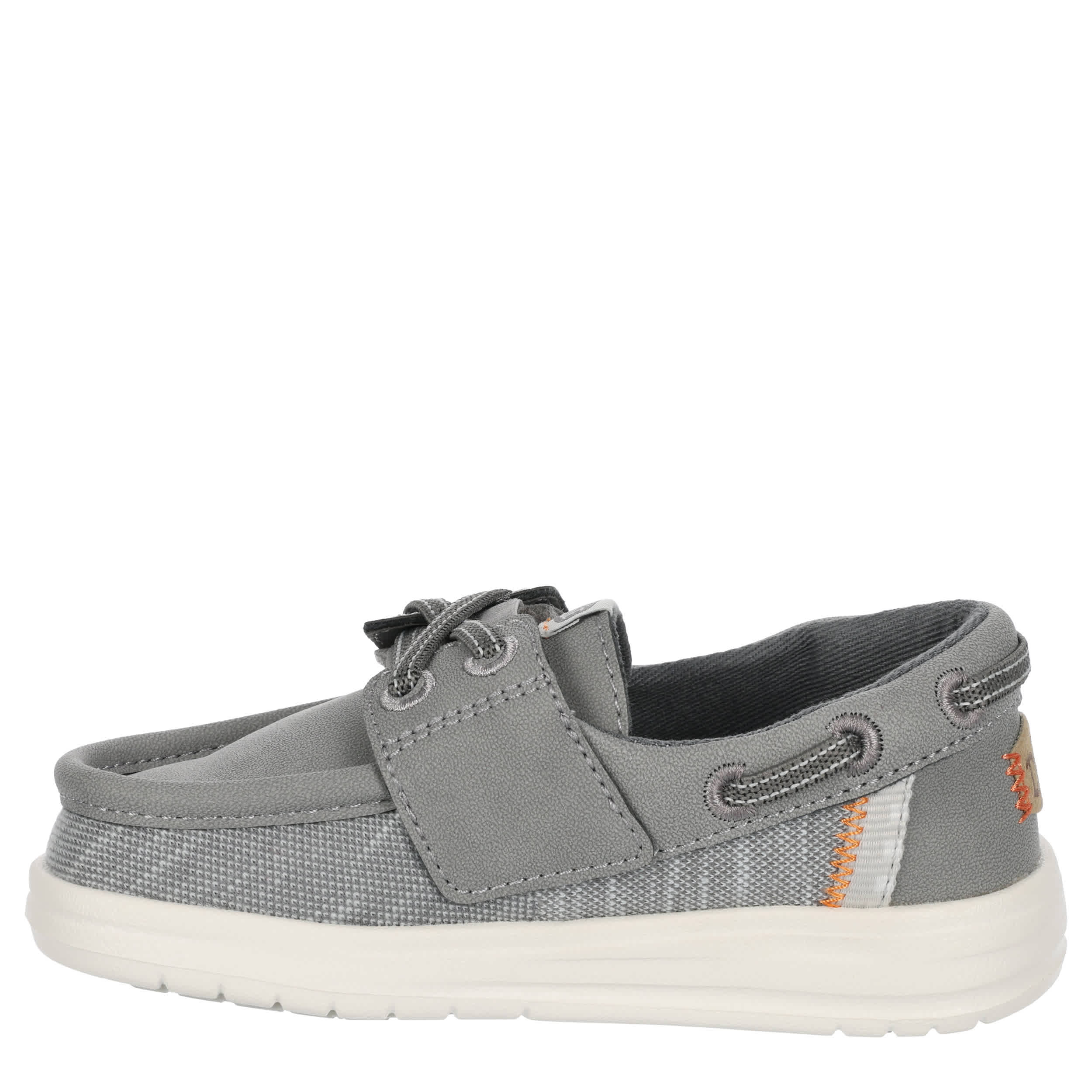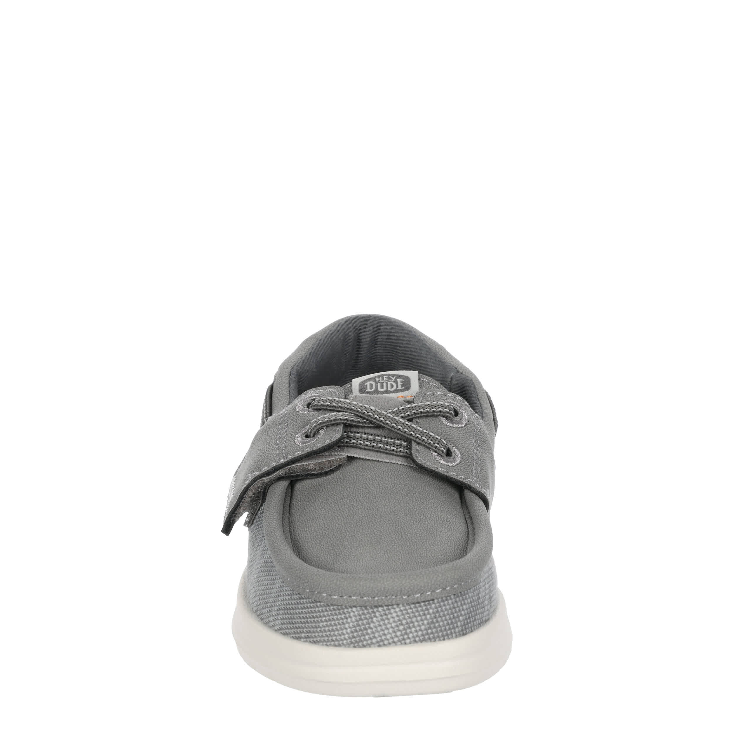 Enjoy the laidback style of the HEYDUDE Wells Classic infant boys' boat shoe. With a textile & faux leather upper featuring a padded collar, this easy-on shoe is great for casual walking or traveling. The removable insole protects his little foot with every step, while the lightweight outsole provides fantastic traction on various surfaces.