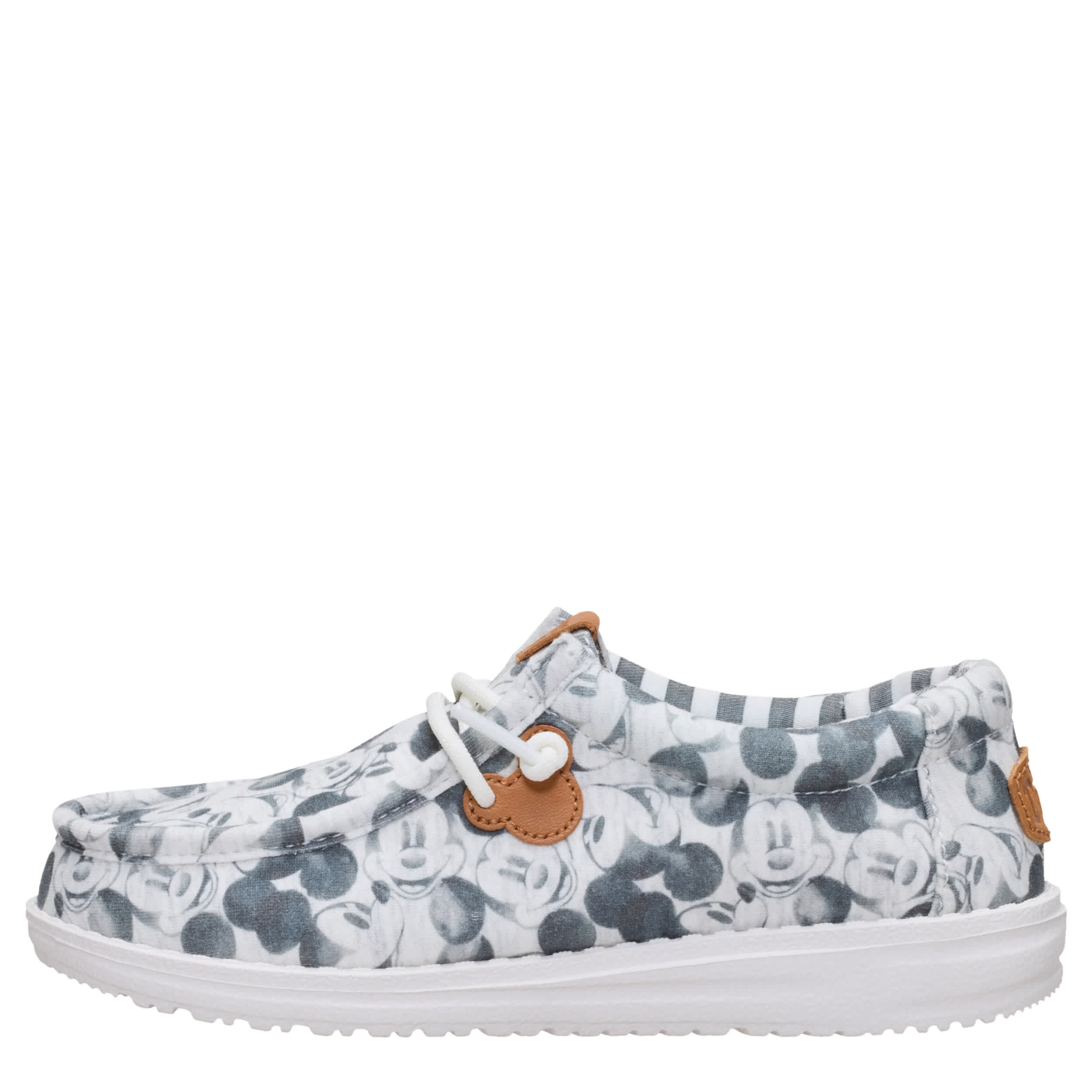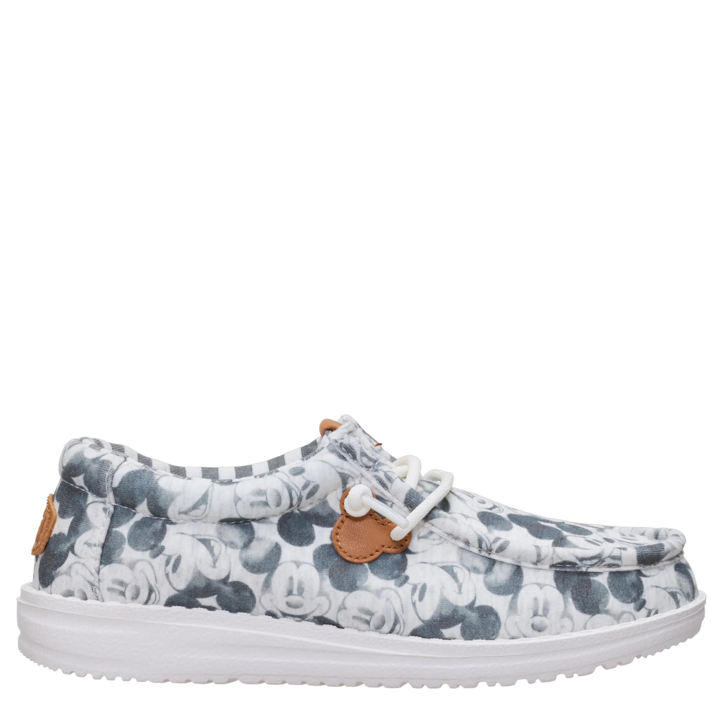 Say hello to Mickey Mouse. With an iconic old-school aesthetic, these Disney Mickey Mouse slip-ons have a jersey upper (read: comfy T-shirt vibes), limited-edition retro Mickey House print, lace charms, and signature HEYDUDE feels. Ahhh classic and comfy—the best pairing since Mickey and Minnie.