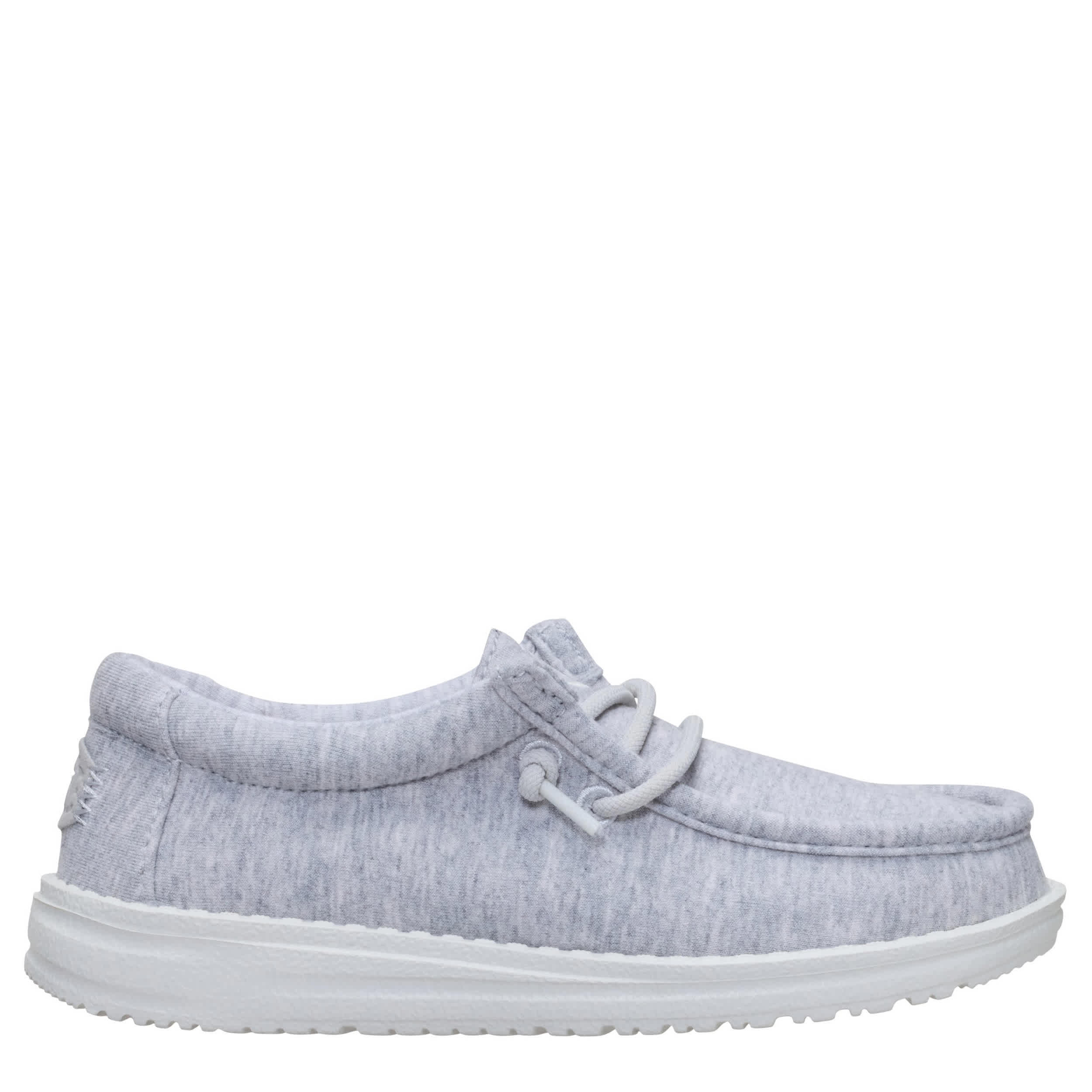 Summer is chill in the HEYDUDE Wally Youth Stretch Jersey boys' slip-on sneaker. With a breathable stretch jersey upper featuring a comfy collar, this shoe is travel ready. The removable insole offers cushioning, while the ultralight, Flex & Fold outsole sets him free to explore unfettered.