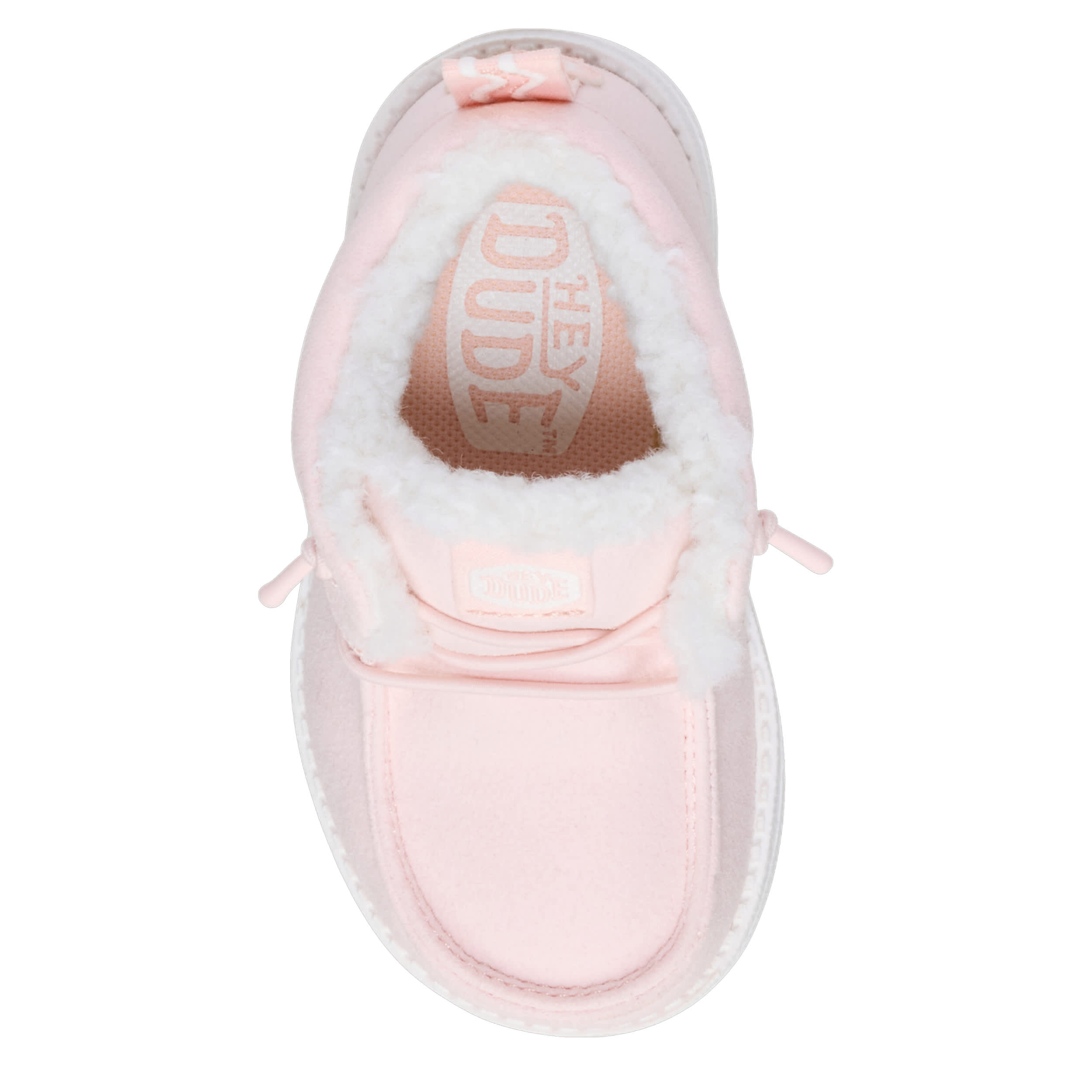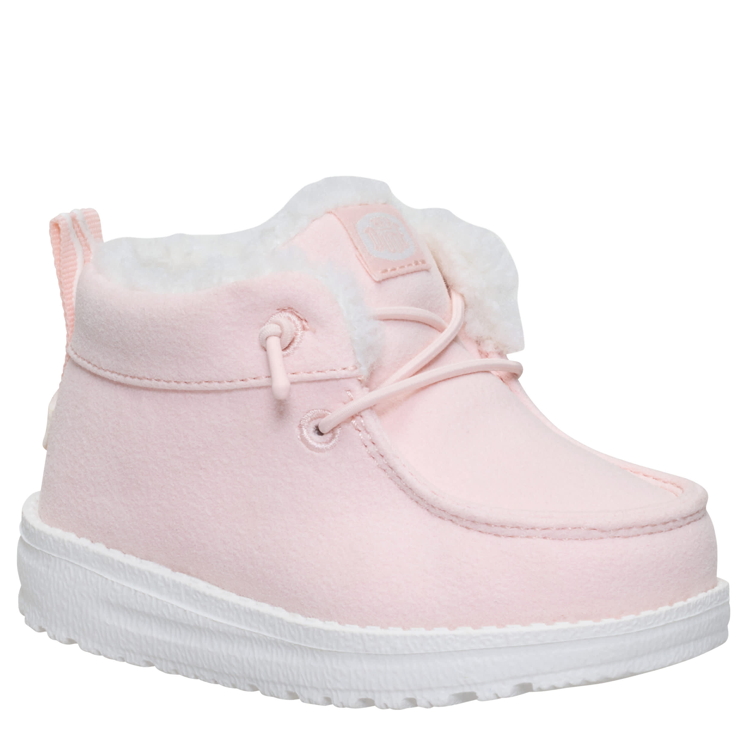 Warm feet follow fall in the HEYDUDE Lildude Cozy infant girls' slip-on sneaker. With a soft suede upper featuring a sherpa lining for extra warmth, this slip-on has silicone grip at the heel for easy entry. The removable insole offers cushioning while the flexible outsole supports her little moves.