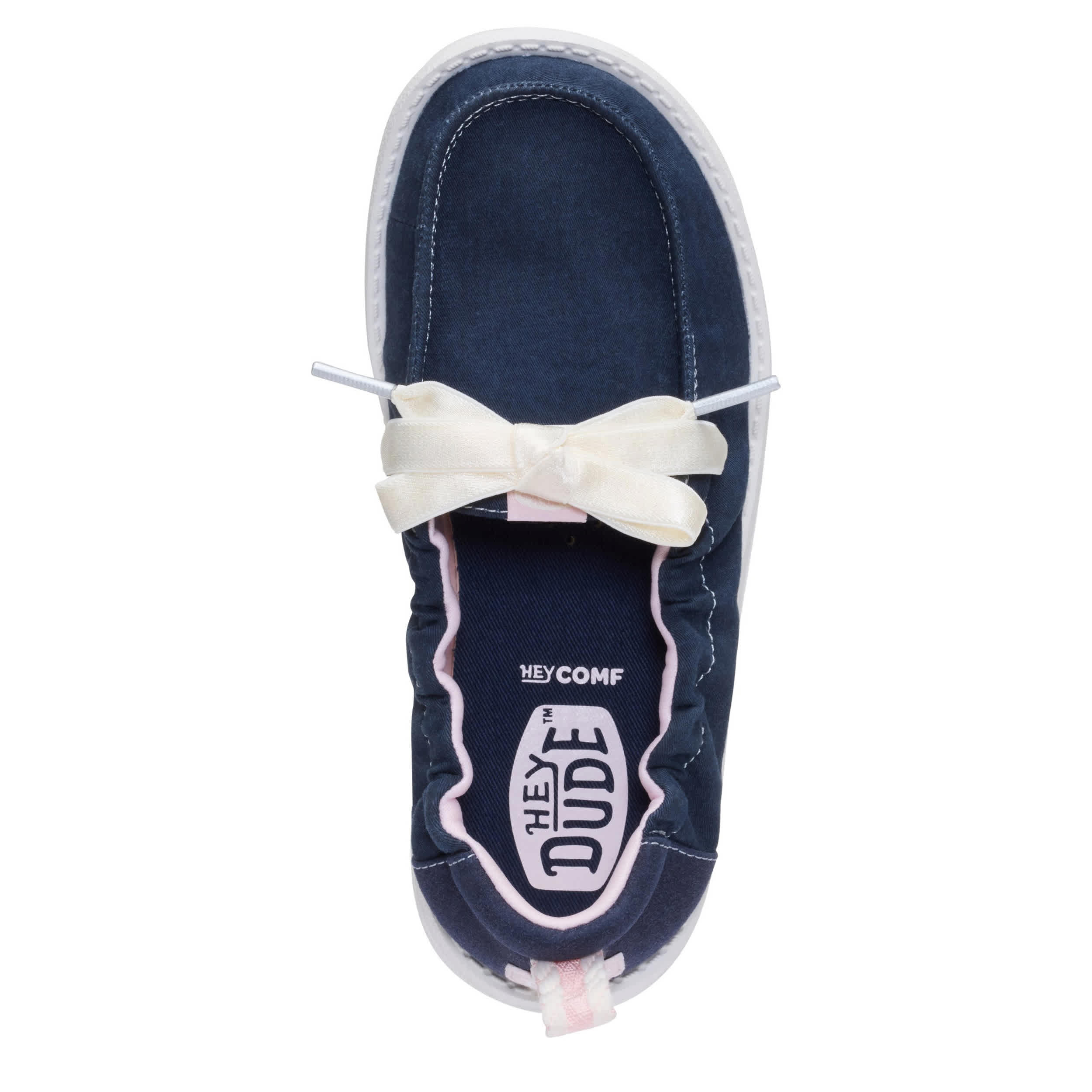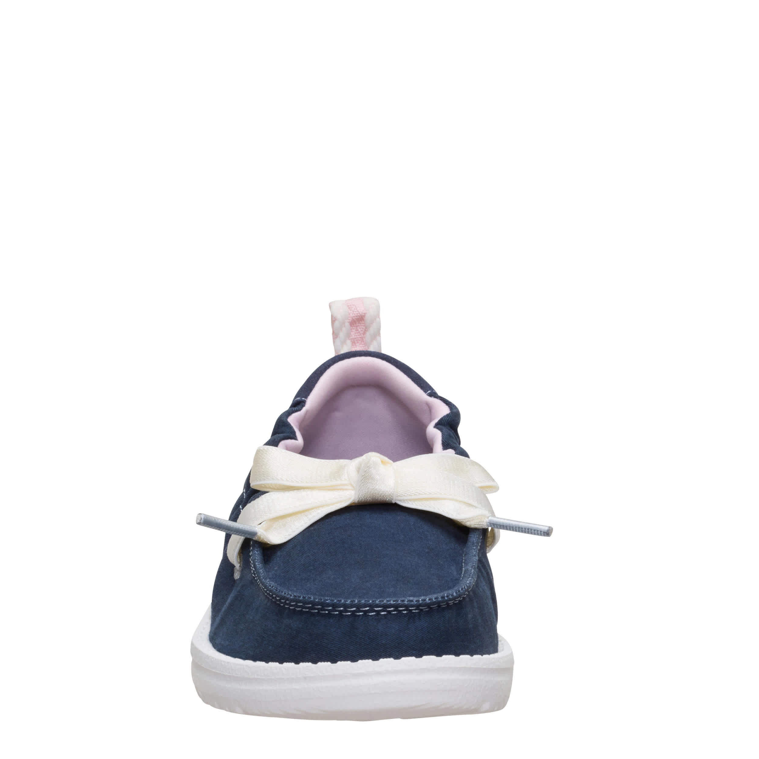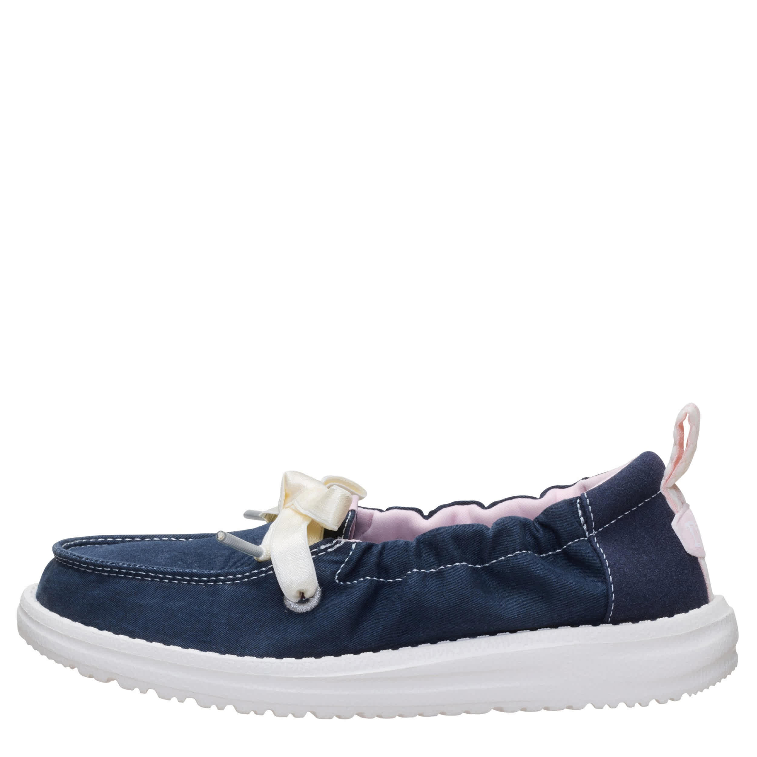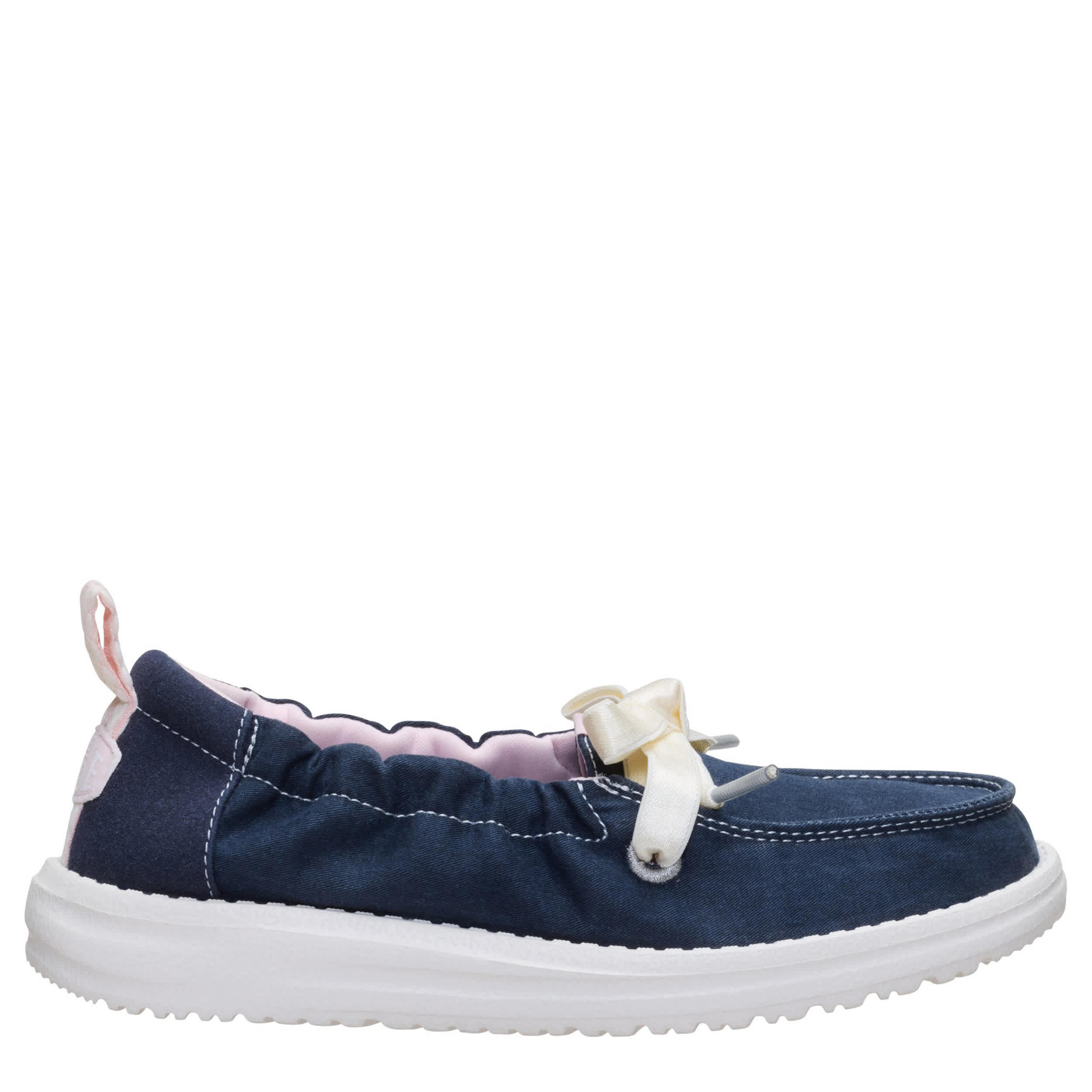 Keep her look cute and simple with the HEYDUDE Wendy Port Y Washed Twill girls' slip-on sneaker. With a soft upper featuring contrast laces for extra style, this stretchy shoe is easy to step in and pull on. The insole cushions her foot, while the flexible outsole frees her to explore unfettered.