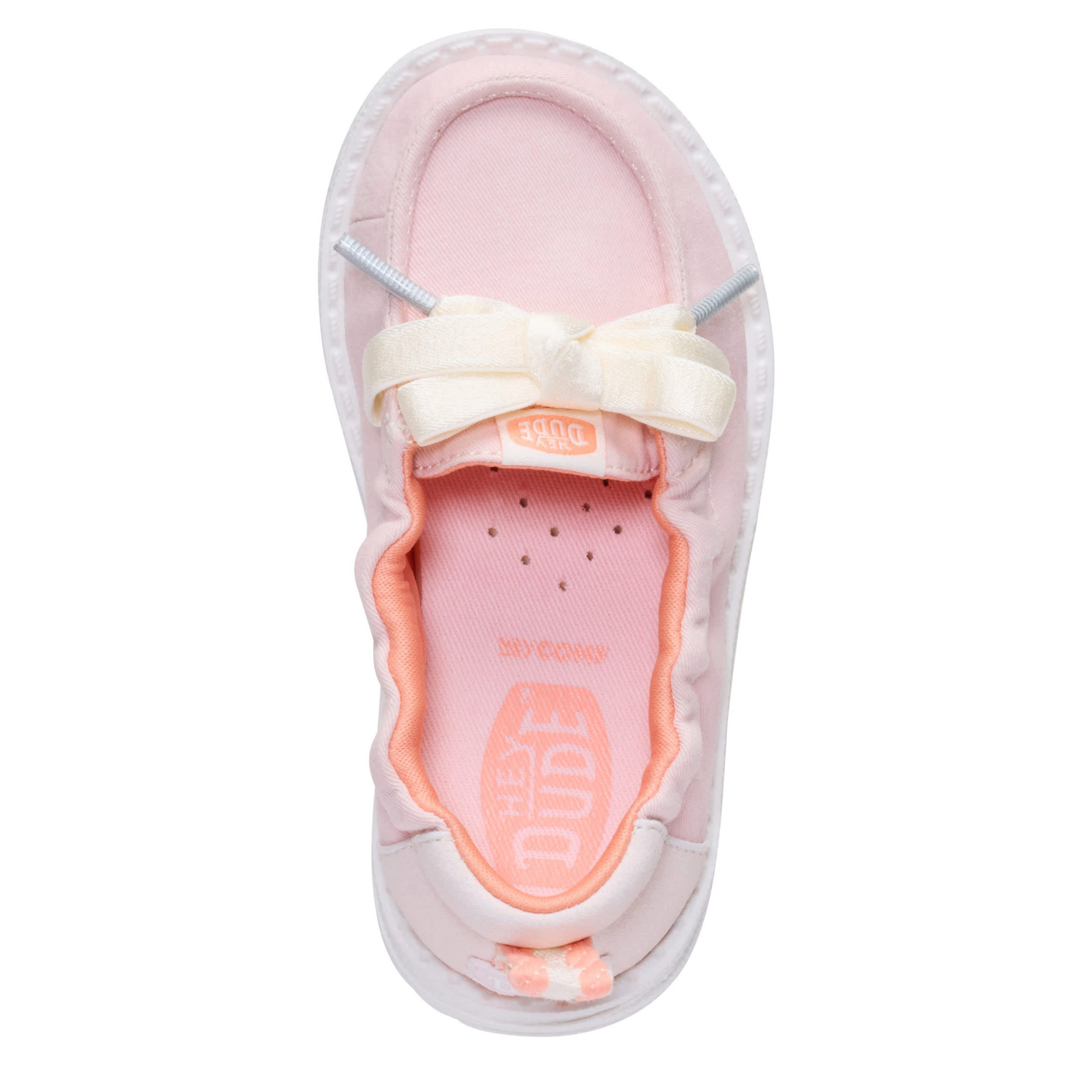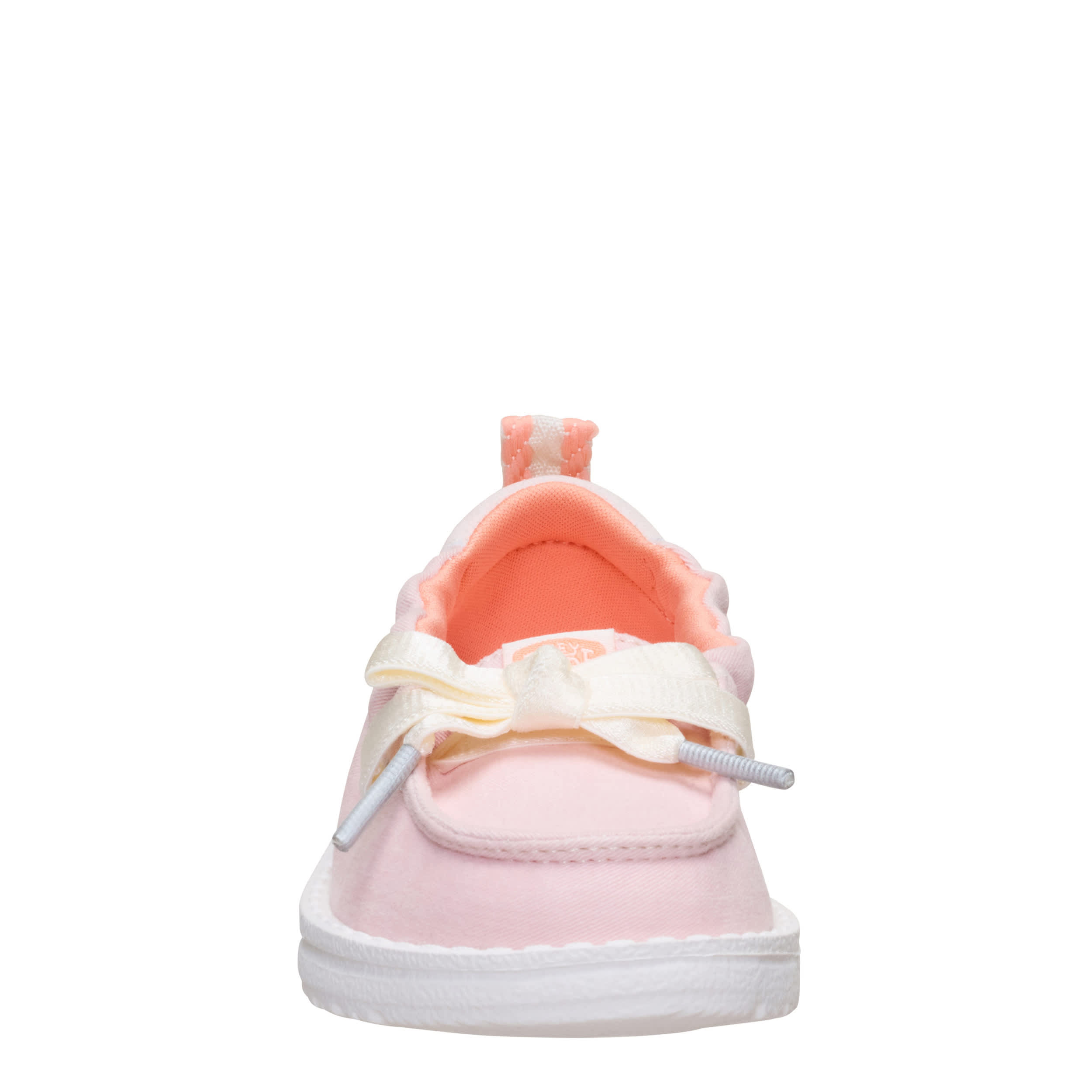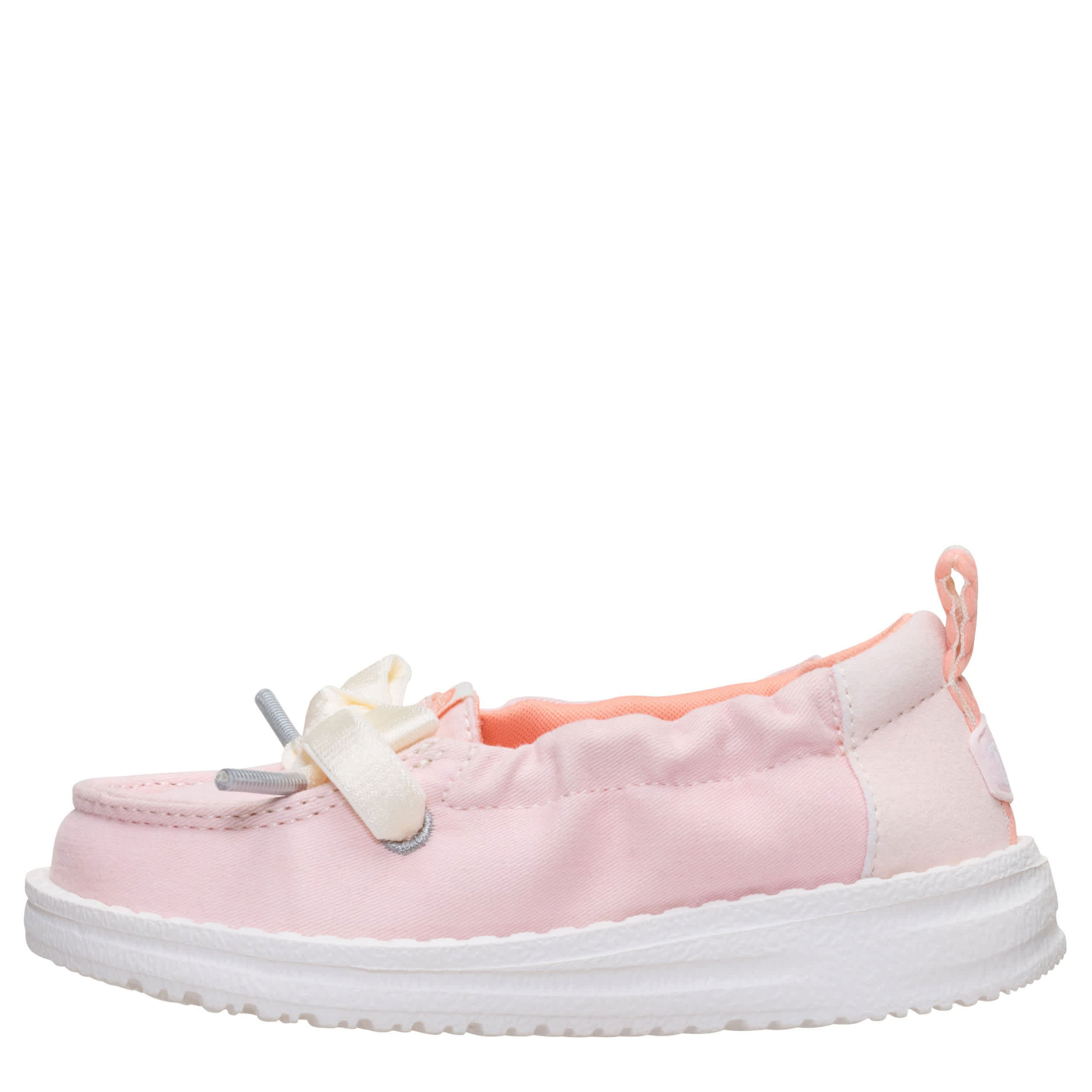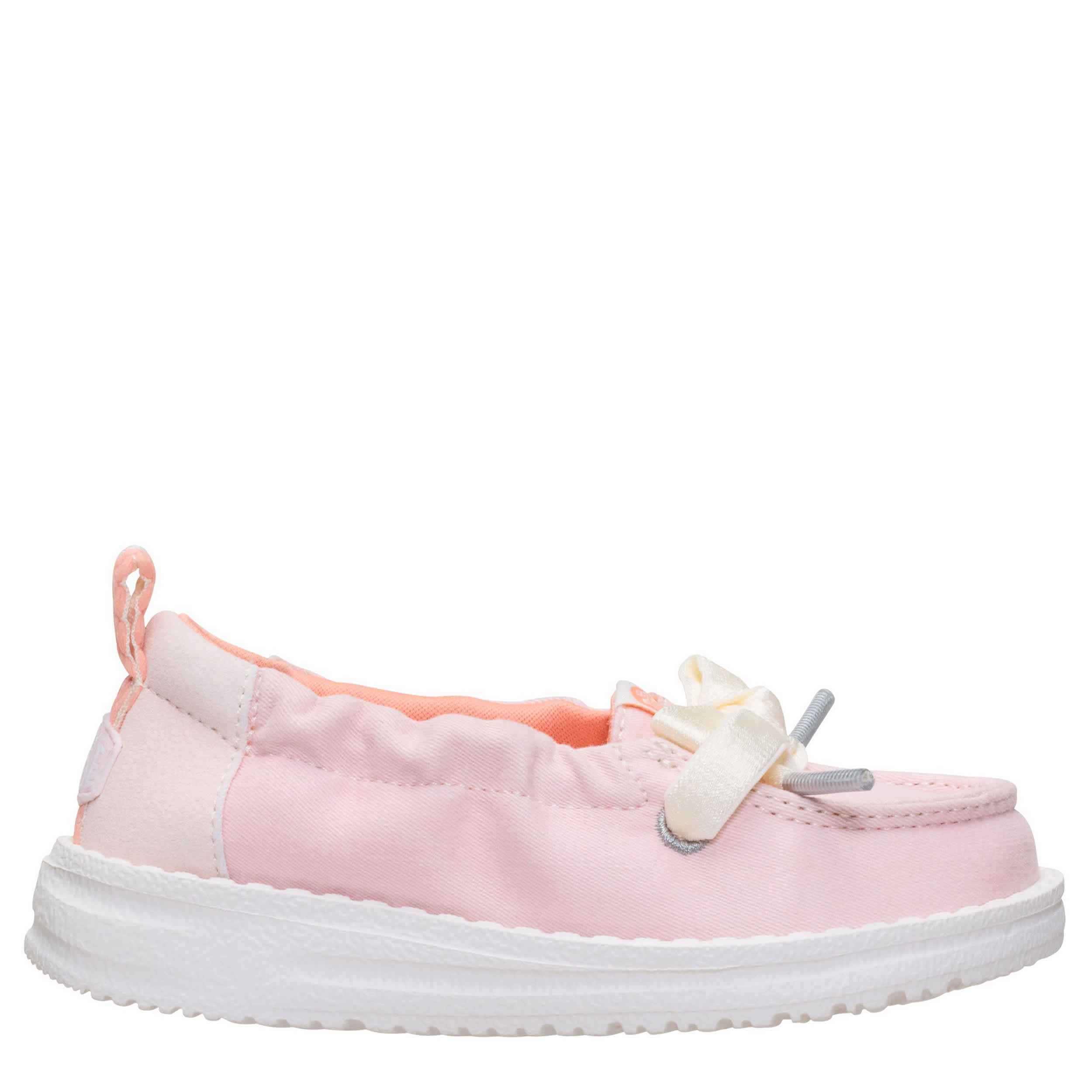 Keep her look cute and simple with the HEYDUDE Wendy Port T Washed Twill infant girls' slip-on sneaker. With a soft upper featuring contrast laces for extra style, this stretchy shoe is easy to step in and pull on. The insole cushions her little foot, while the flexible outsole frees her to explore unfettered.