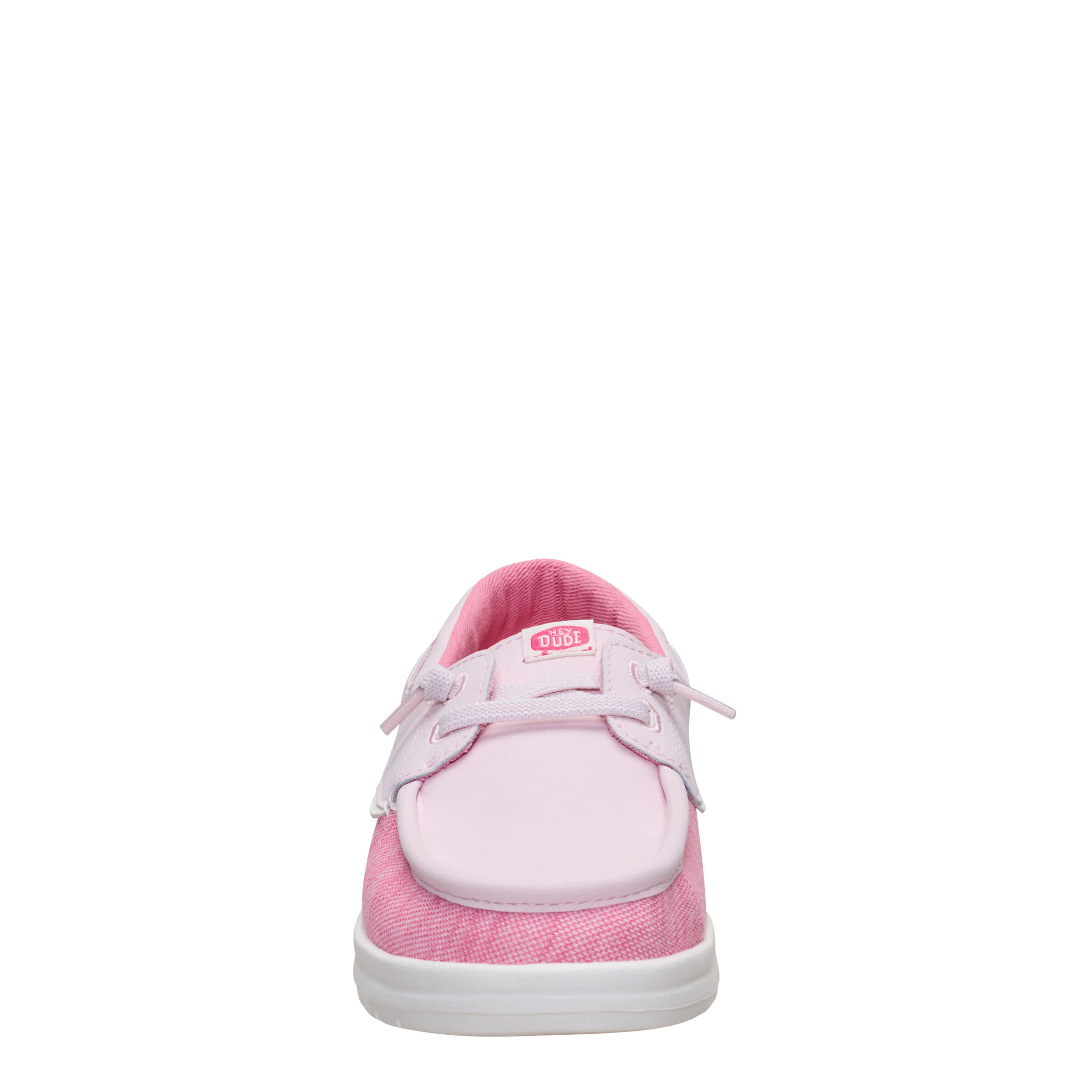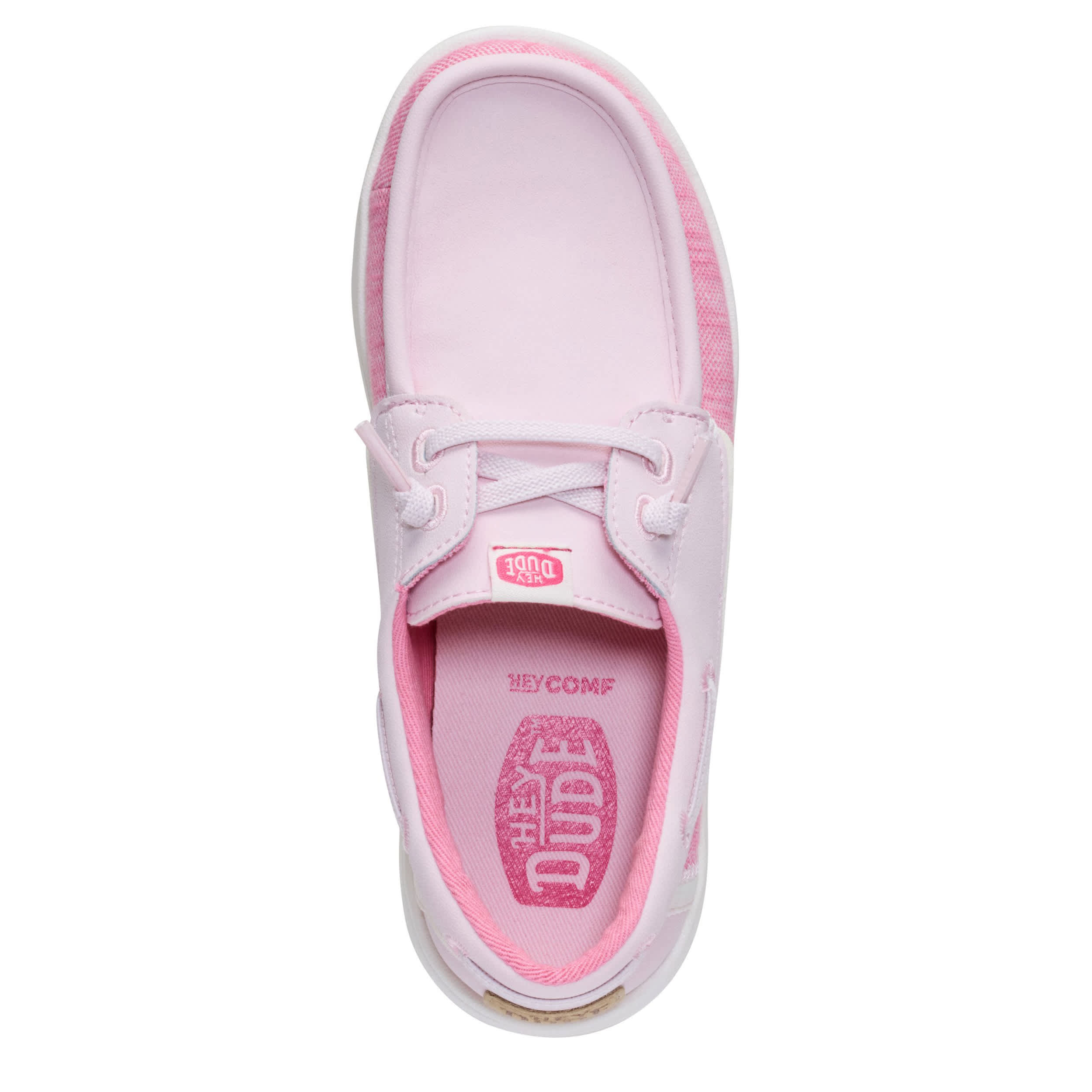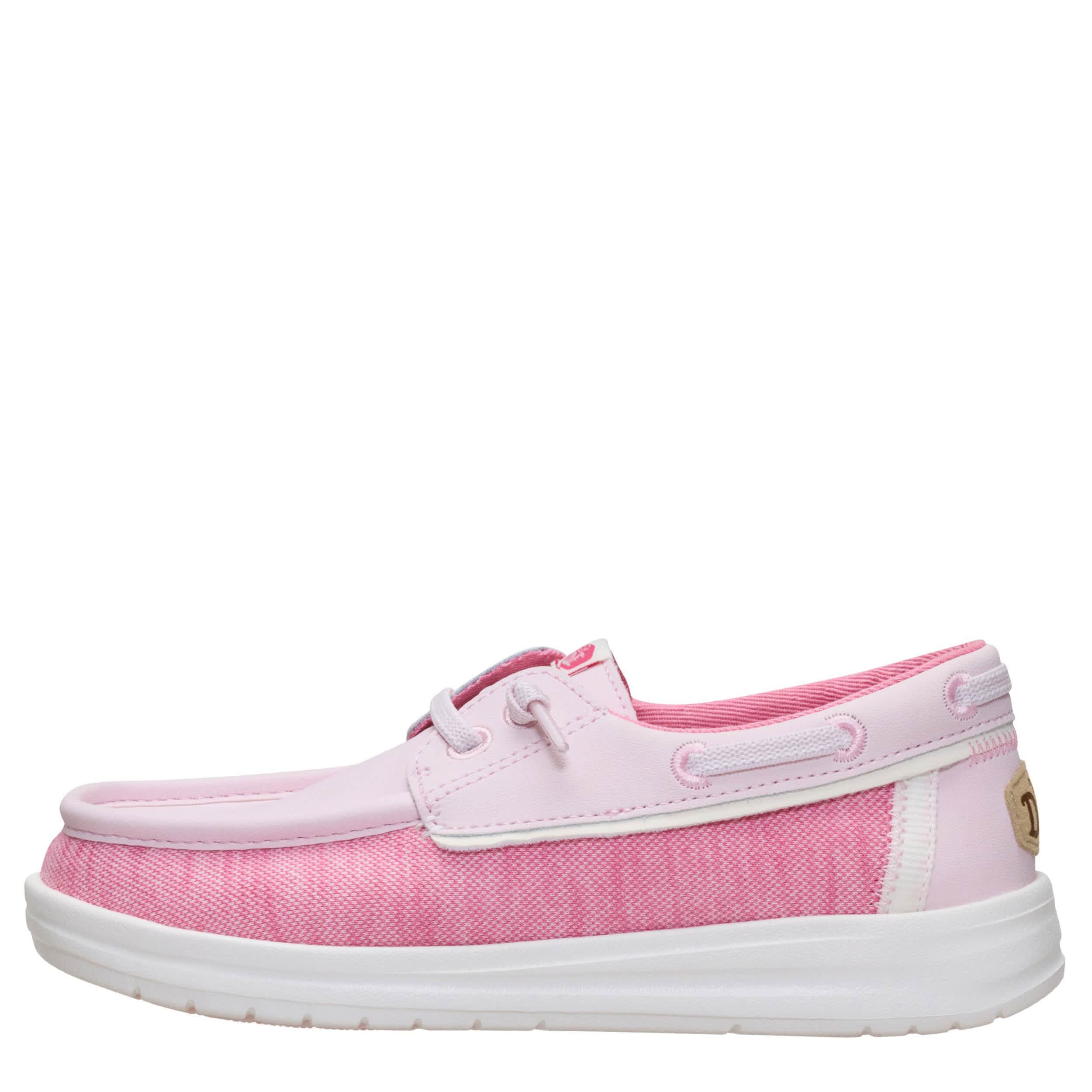 Enjoy the flashy style of the HEYDUDE Wells Classic girls' boat shoe. With a two-tone textile & faux leather upper featuring a padded collar, this slip-on shoe is great for fashion or traveling. The removable insole protects her foot with every step, while the lightweight outsole provides fantastic traction on various surfaces.