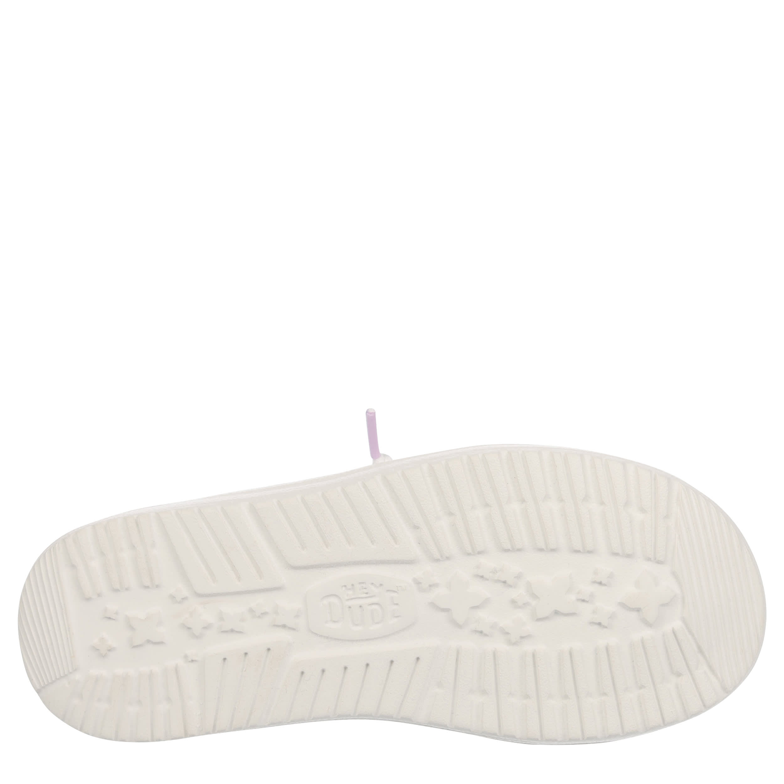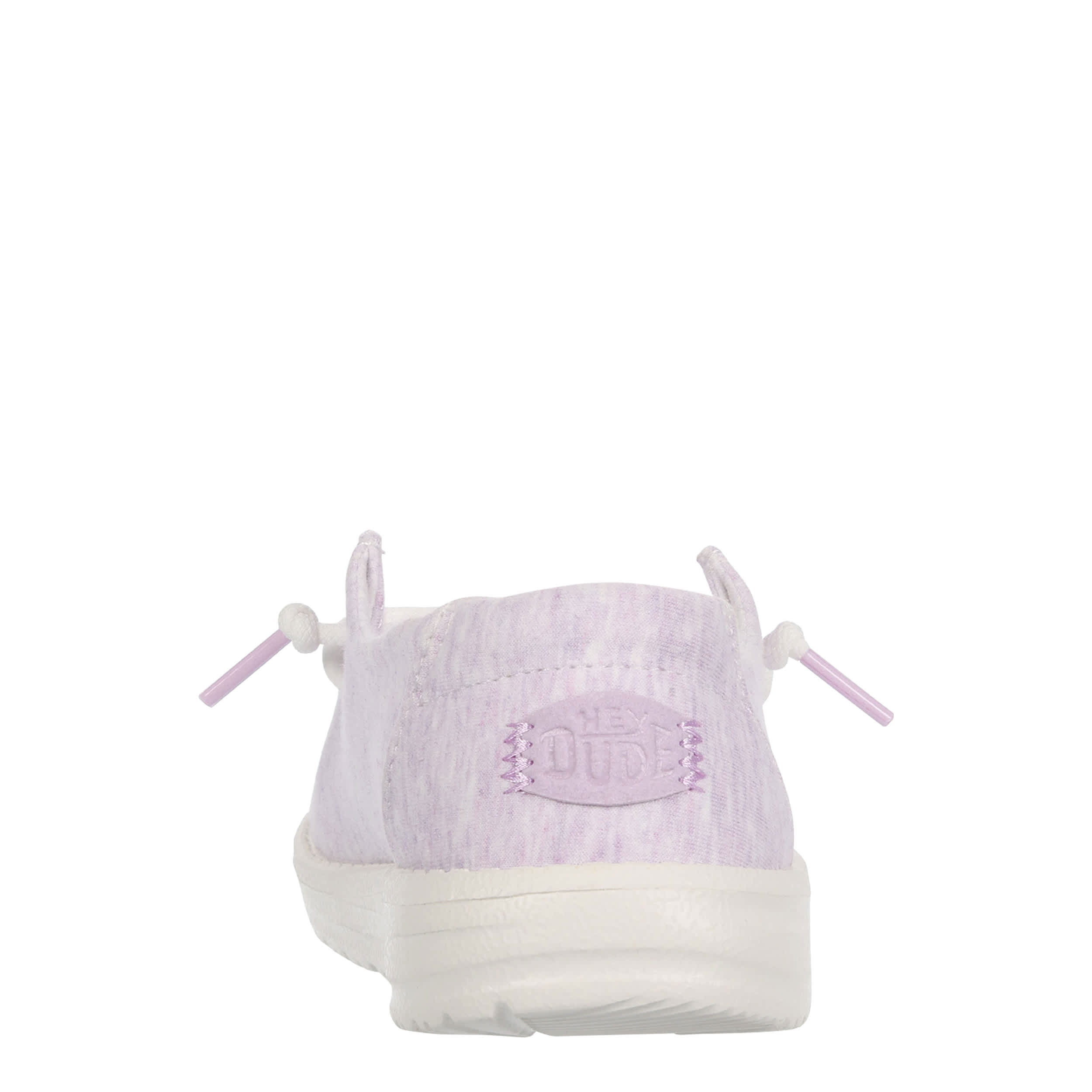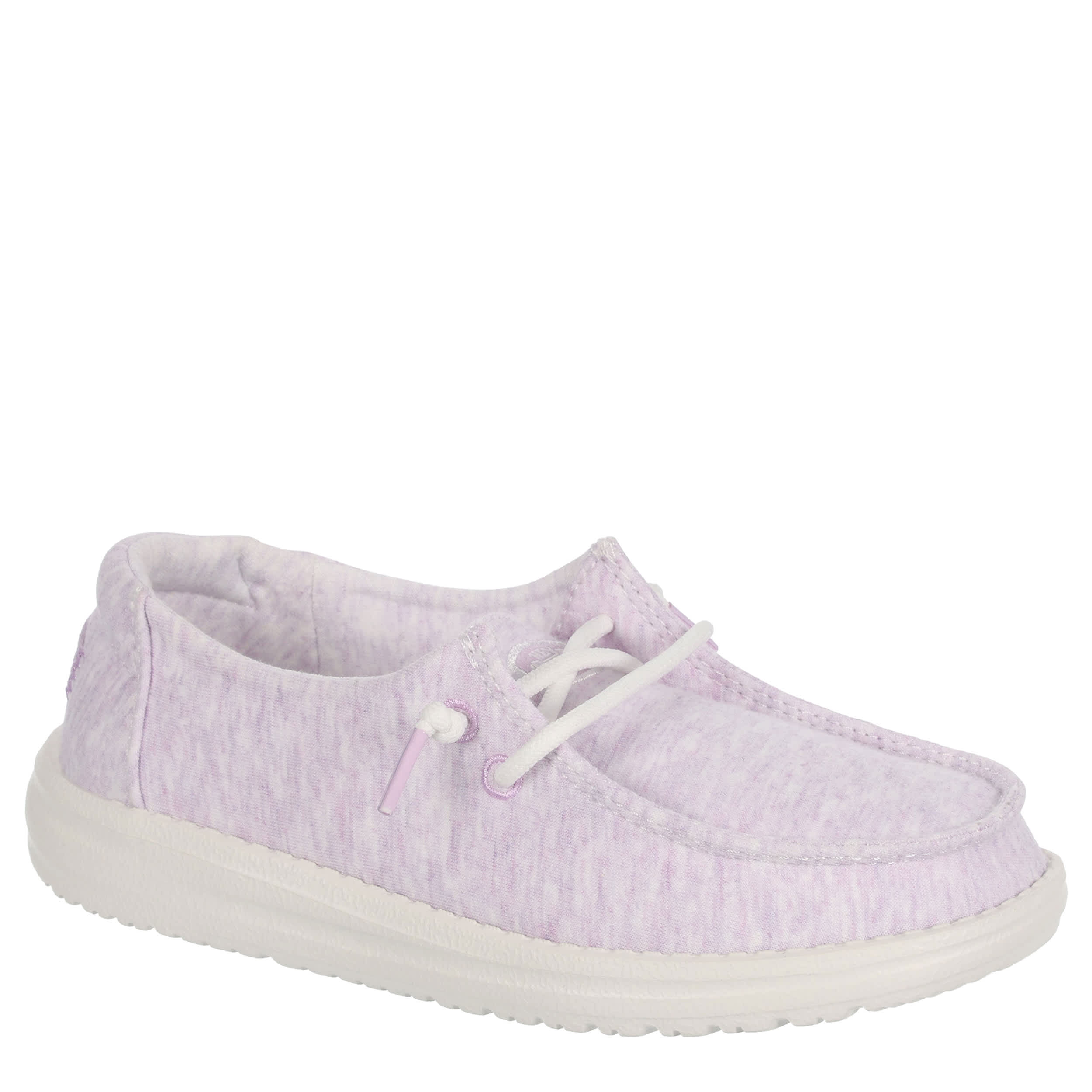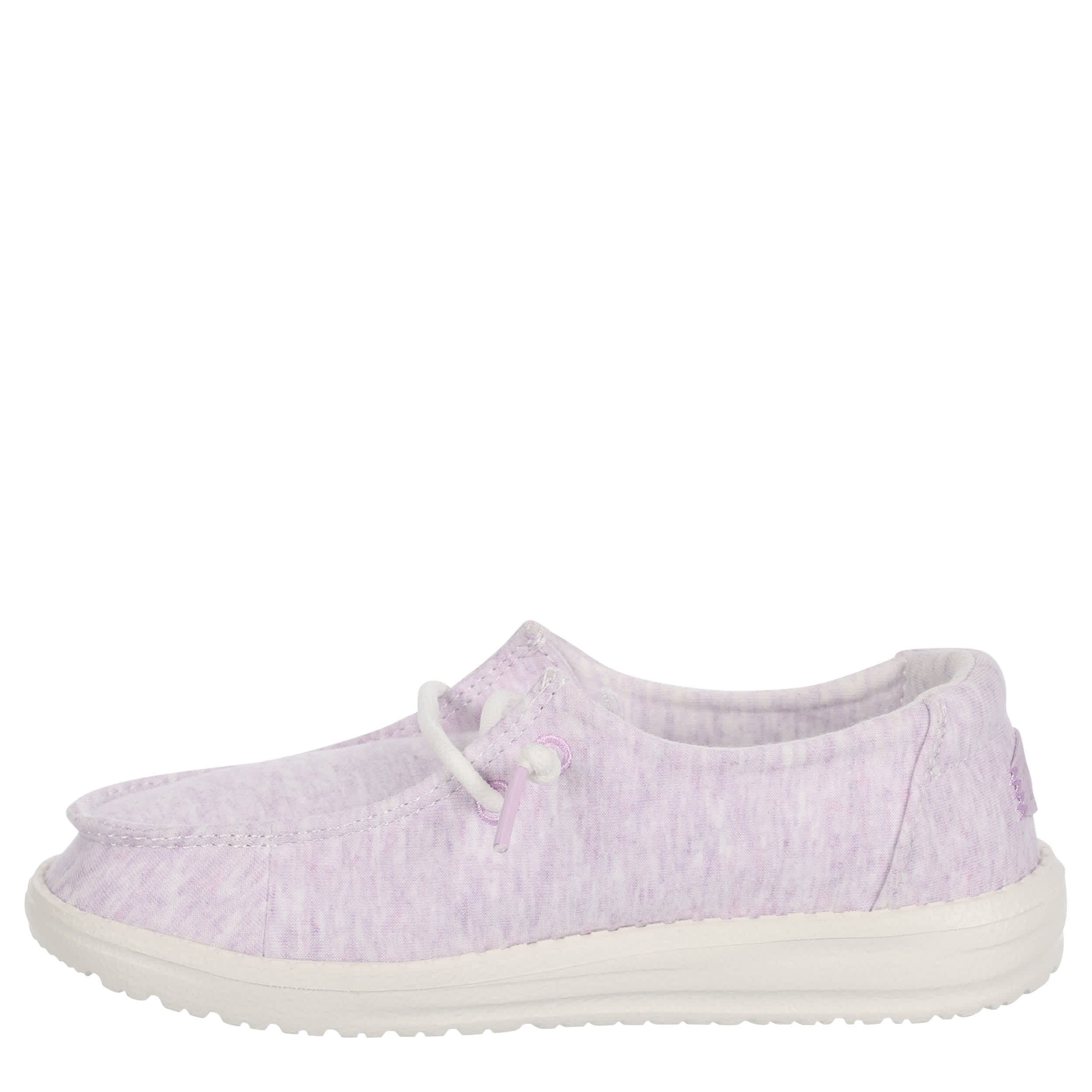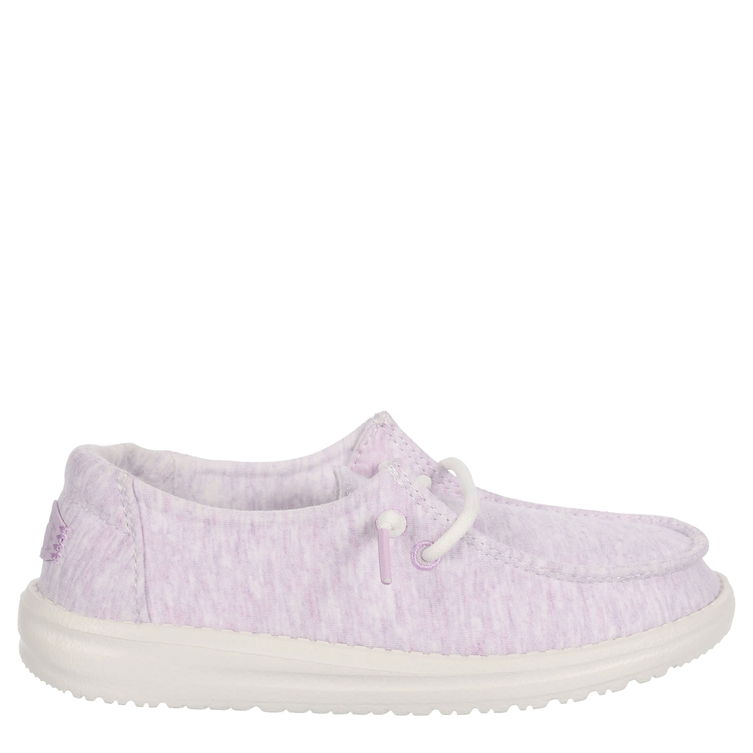 She'll look cute and trendy in the HEYDUDE Wendy Youth slip-on sneaker. With a stretch jersey upper featuring knotted laces for an easy fit, this sneaker has a multicolored design. The removable foam insole offers comfort and cushioning, while the ultralight outsole sets her free to explore unfettered.
