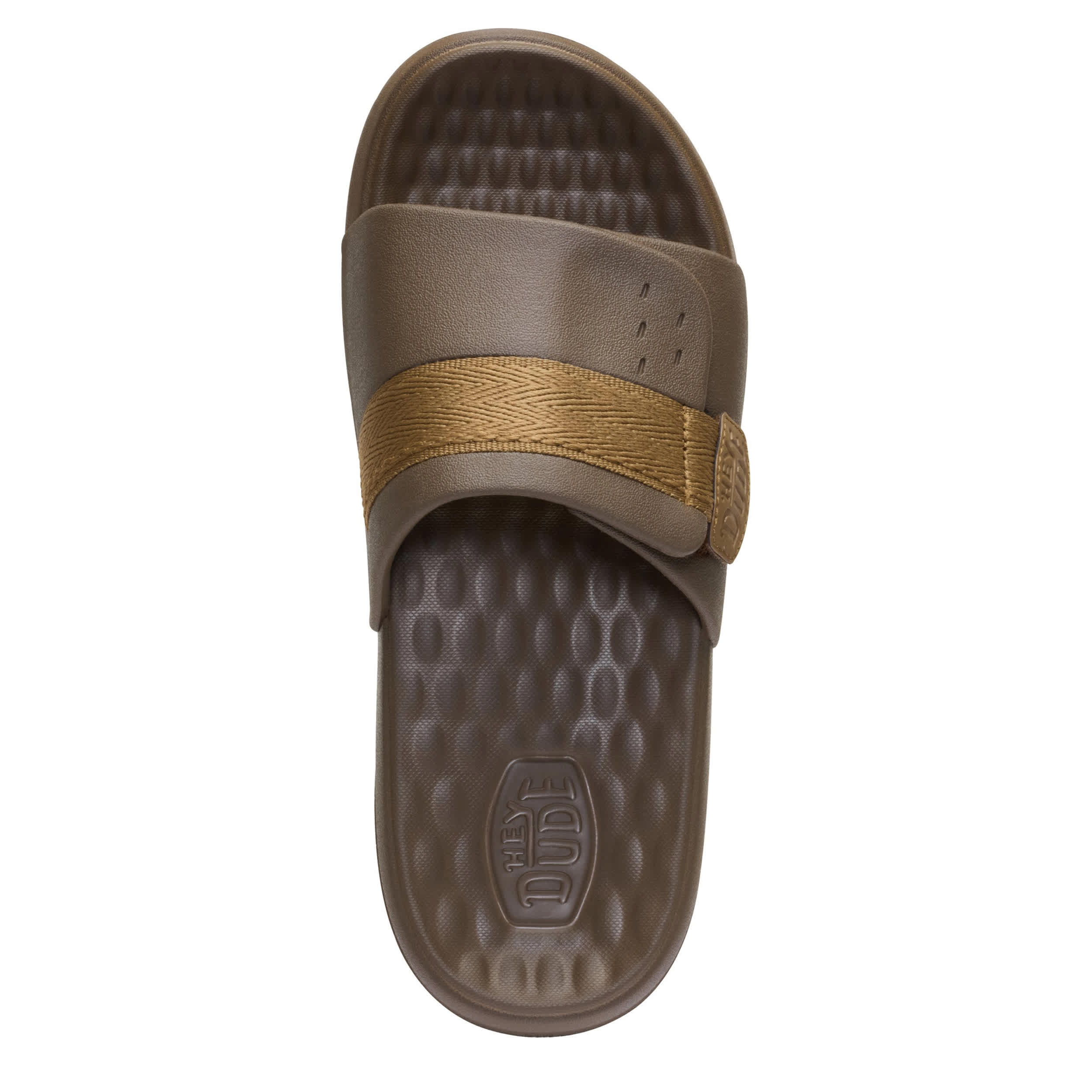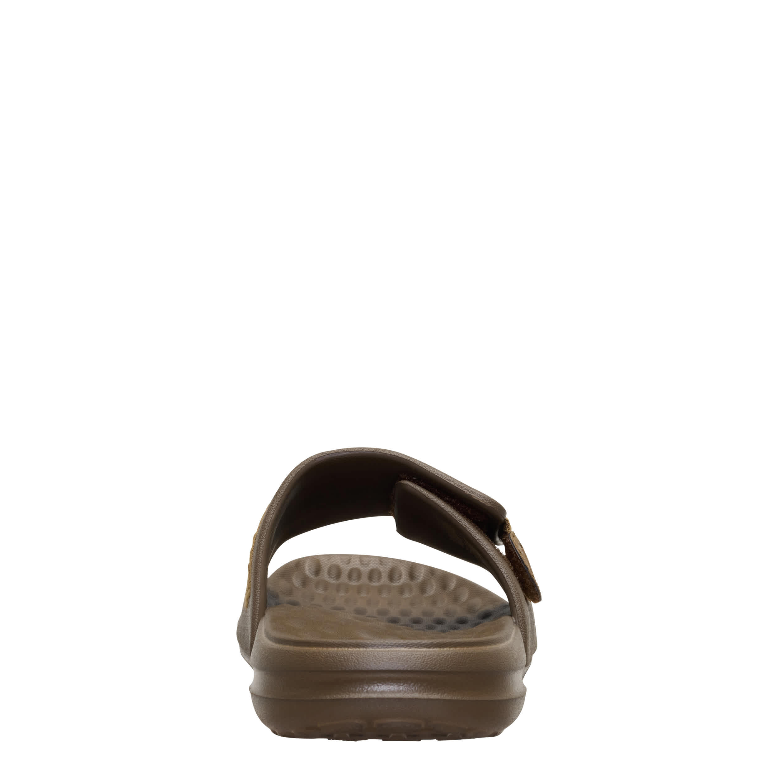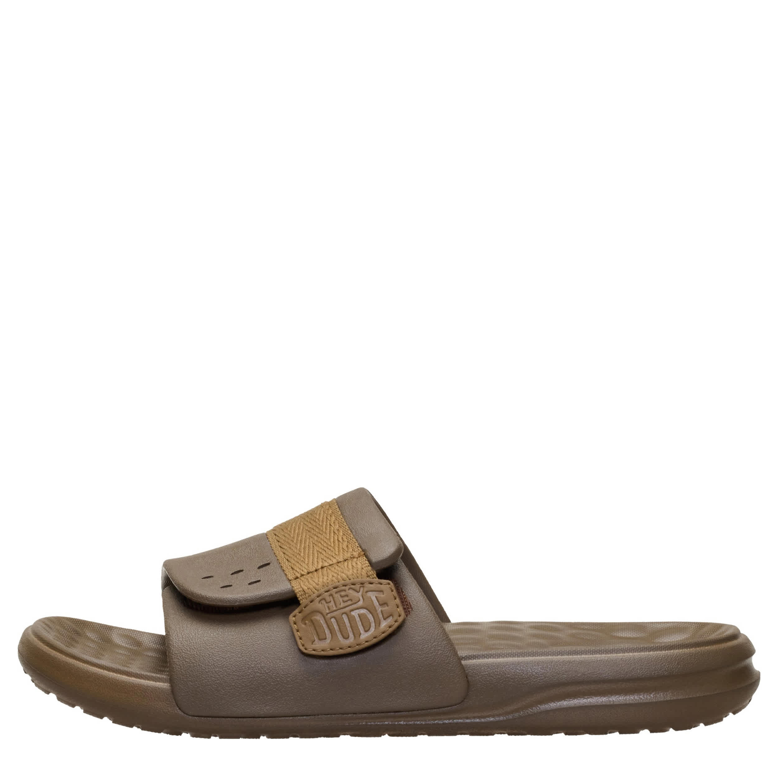 Ride that comfort in the Wave Alt Slide sandal from HEYDUDE. Featuring a synthetic upper with an adjustable hook-and-latch strap for a secure fit, this slide is everyday casual and perfect for post-workout recovery. The cushy footbed comforts and improves airflow underfoot for better breathability.