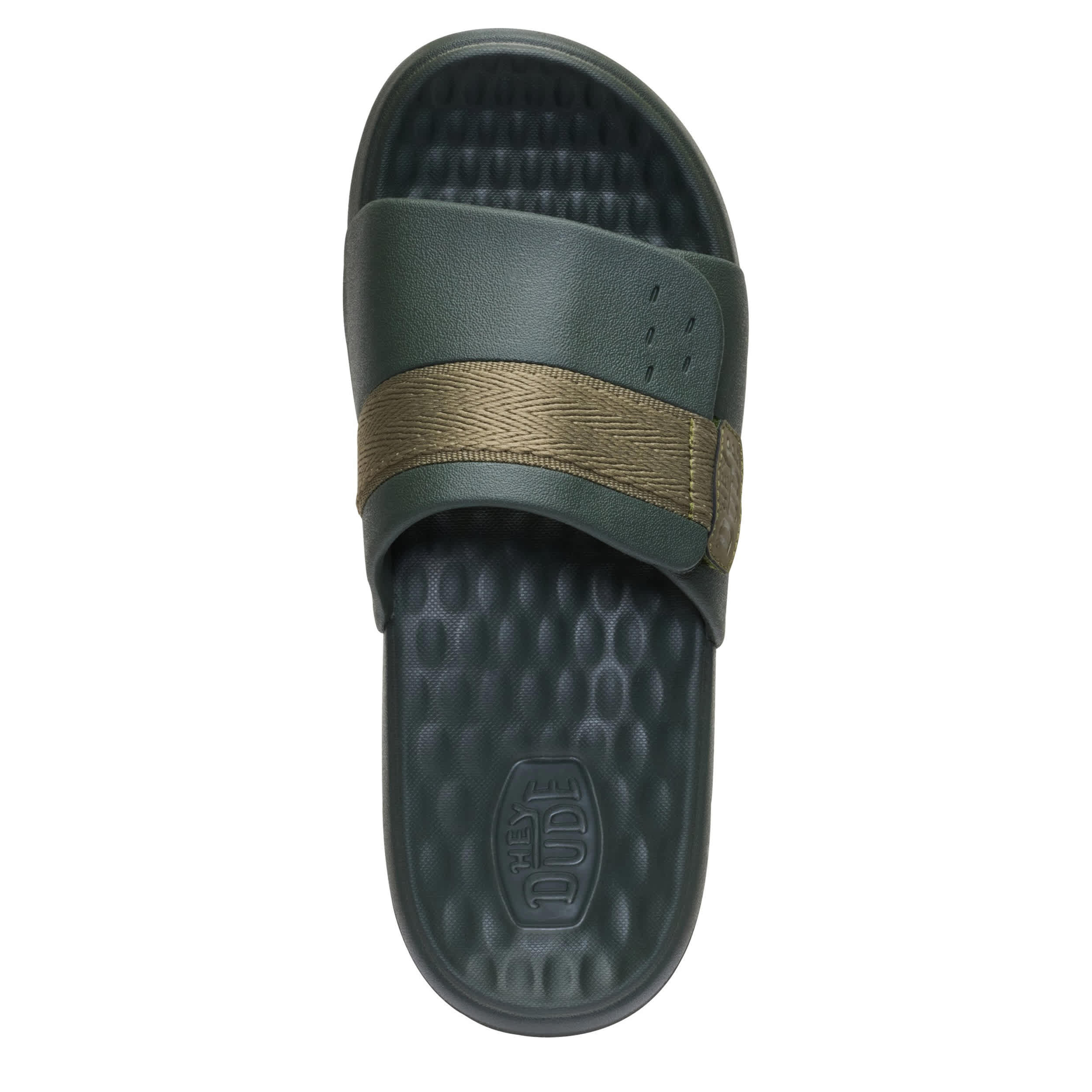 Ride that comfort in the Wave Alt Slide sandal from HEYDUDE. Featuring a synthetic upper with an adjustable hook-and-latch strap for a secure fit, this slide is everyday casual and perfect for post-workout recovery. The cushy footbed comforts and improves airflow underfoot for better breathability.