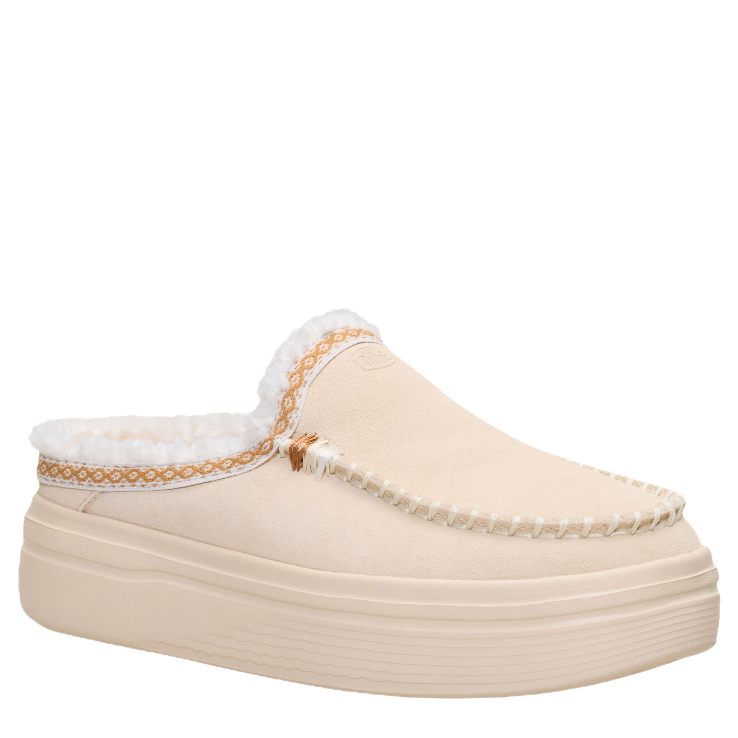 Your cozy place is never far away with the HEYDUDE Austin Lift Cozy Stitch women's sneaker. Featuring a suede upper with a raised heel edge for a snug fit, this cold-weather essential is crafted with a plush, warm lining and hand-stitched accents. The flexible outsole is light-as-air with a 1¼" boost from the platform for nice lift.