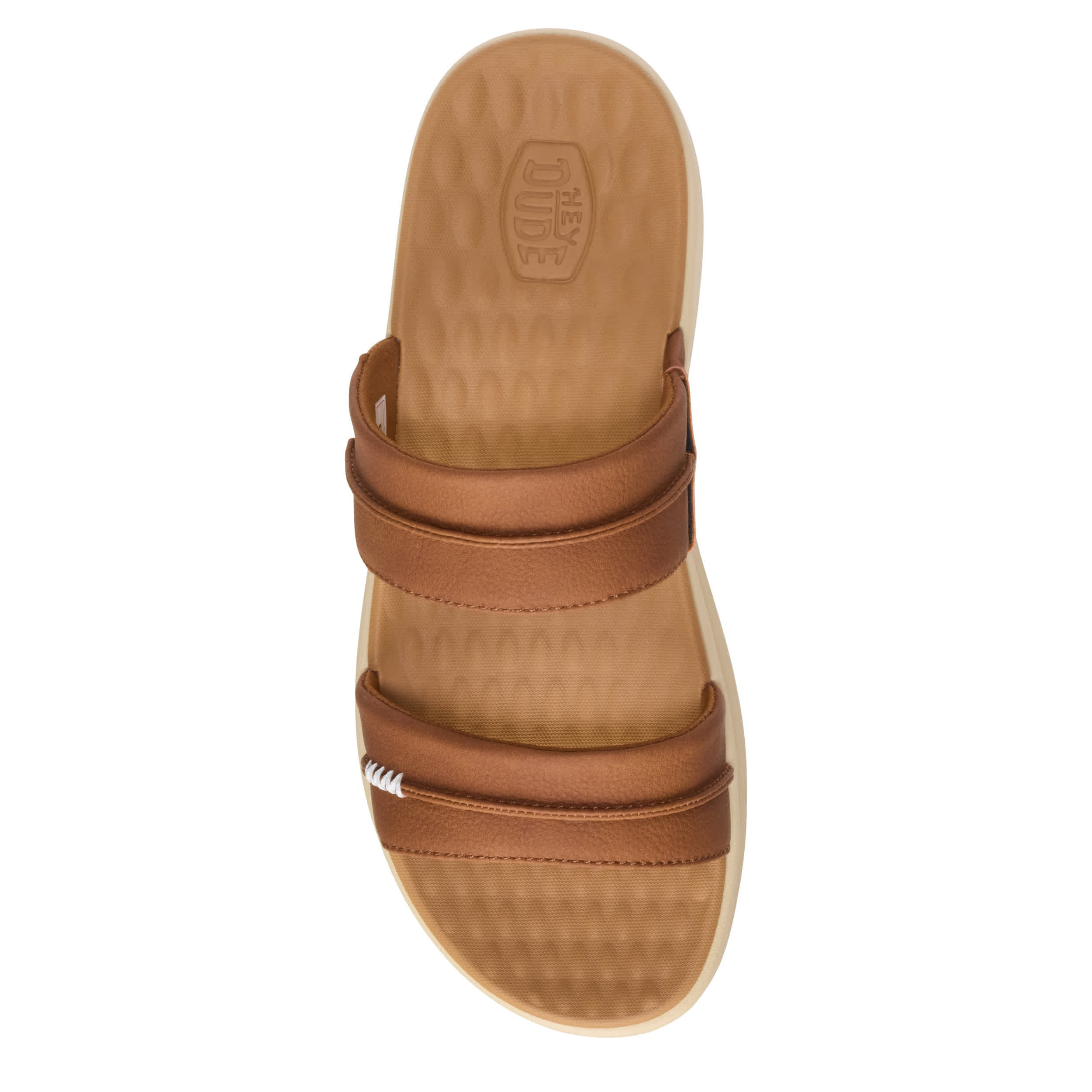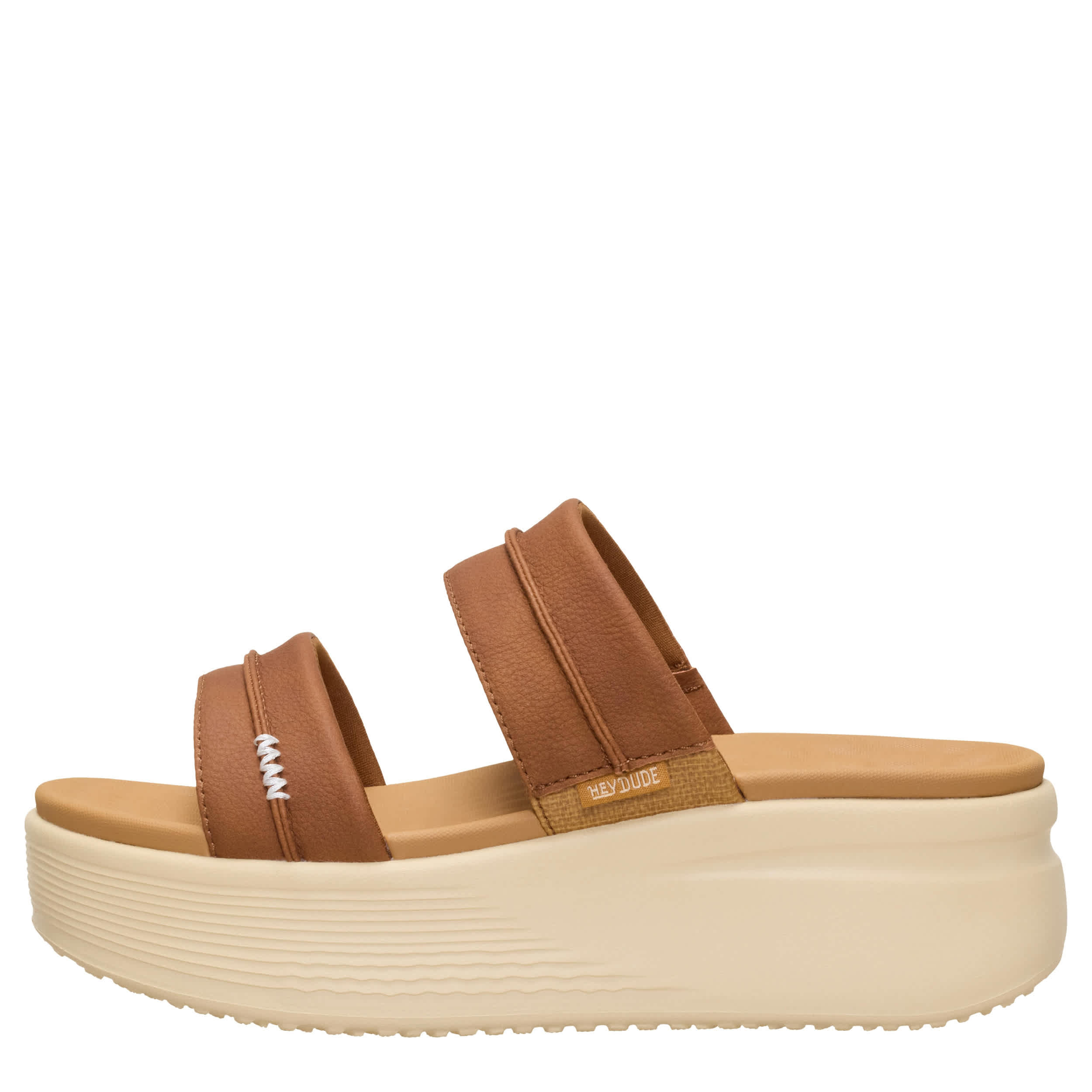 Root yourself in the stylish HEYDUDE Austin Slide Classic women's sandal. Featuring a faux leather upper with memory foam-cushioned straps for extra comfort, this wear-anywhere shoe is travel ready. The flexible outsole is light-as-air with a 2 1/2" boost from the platform for nice lift.