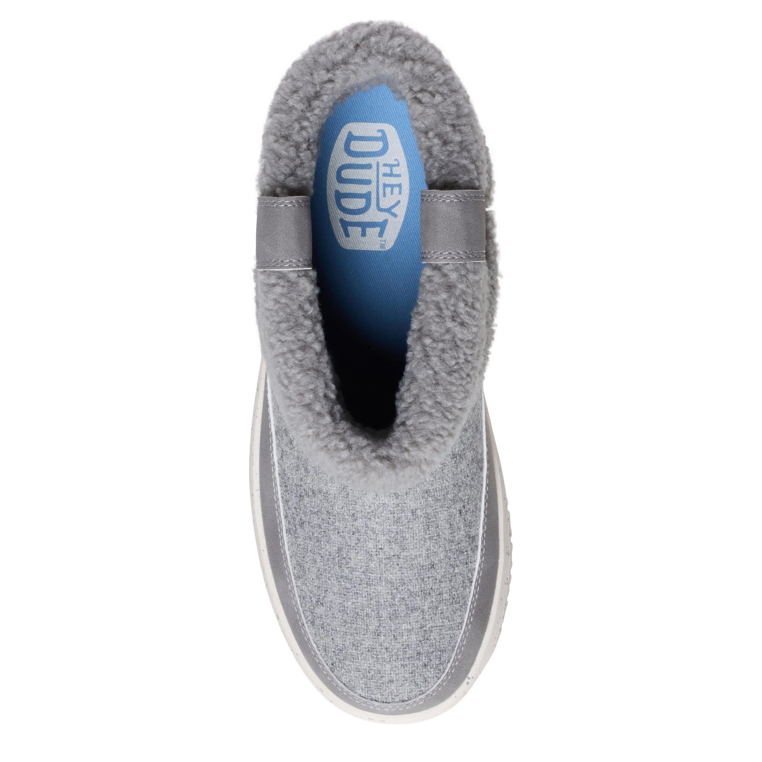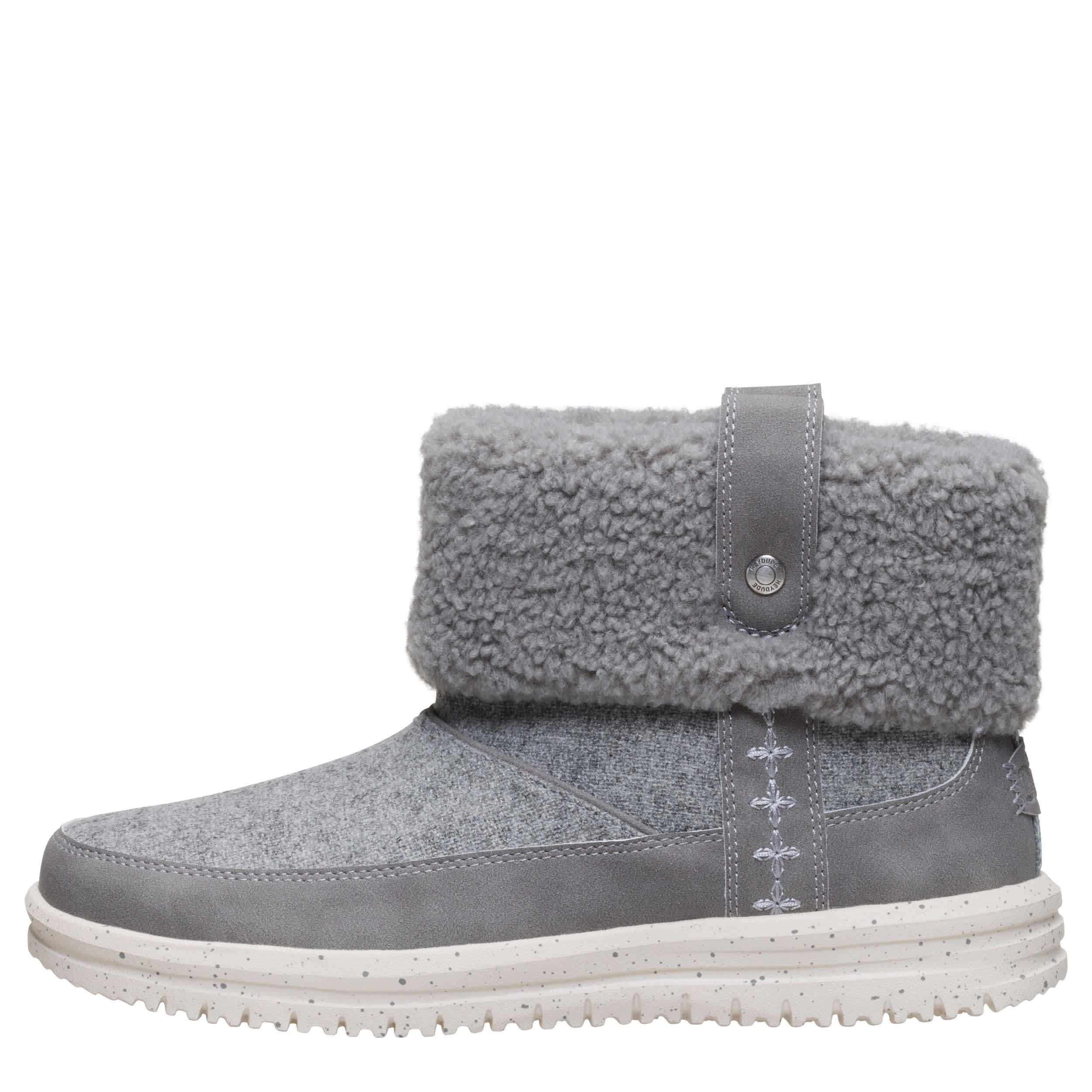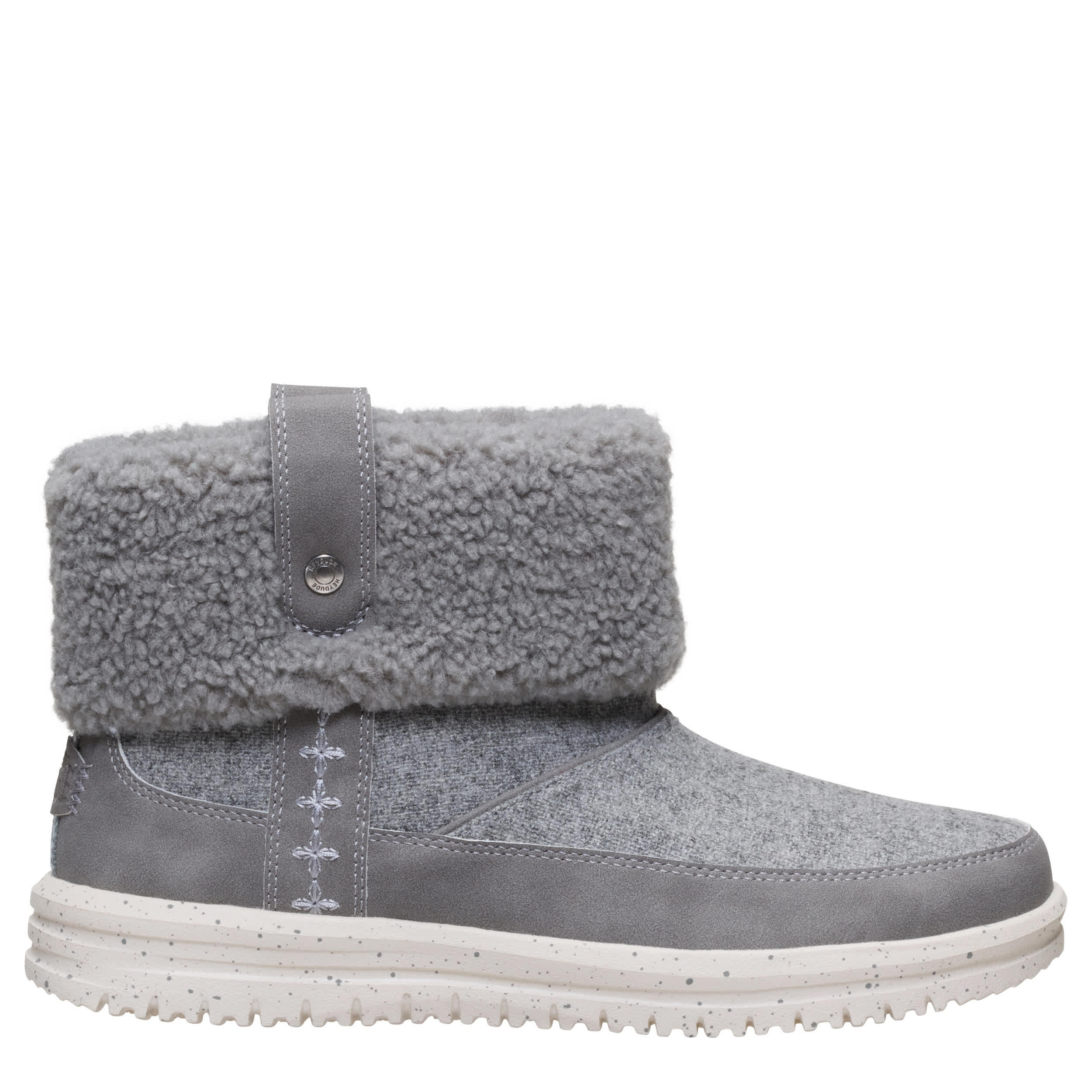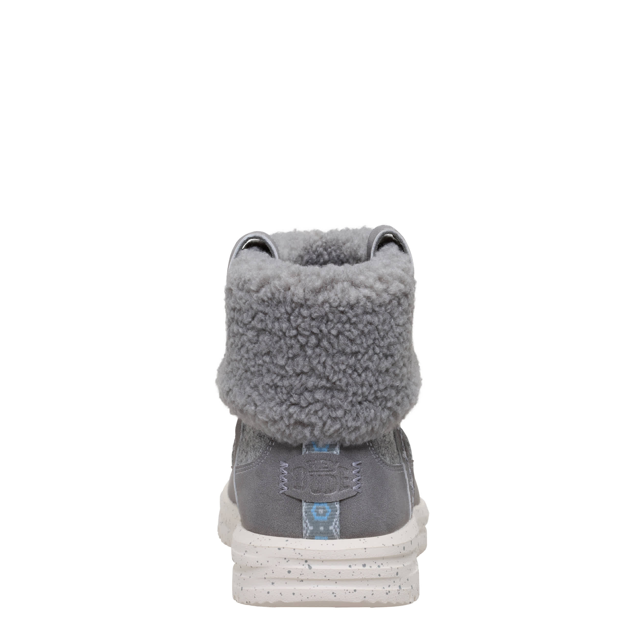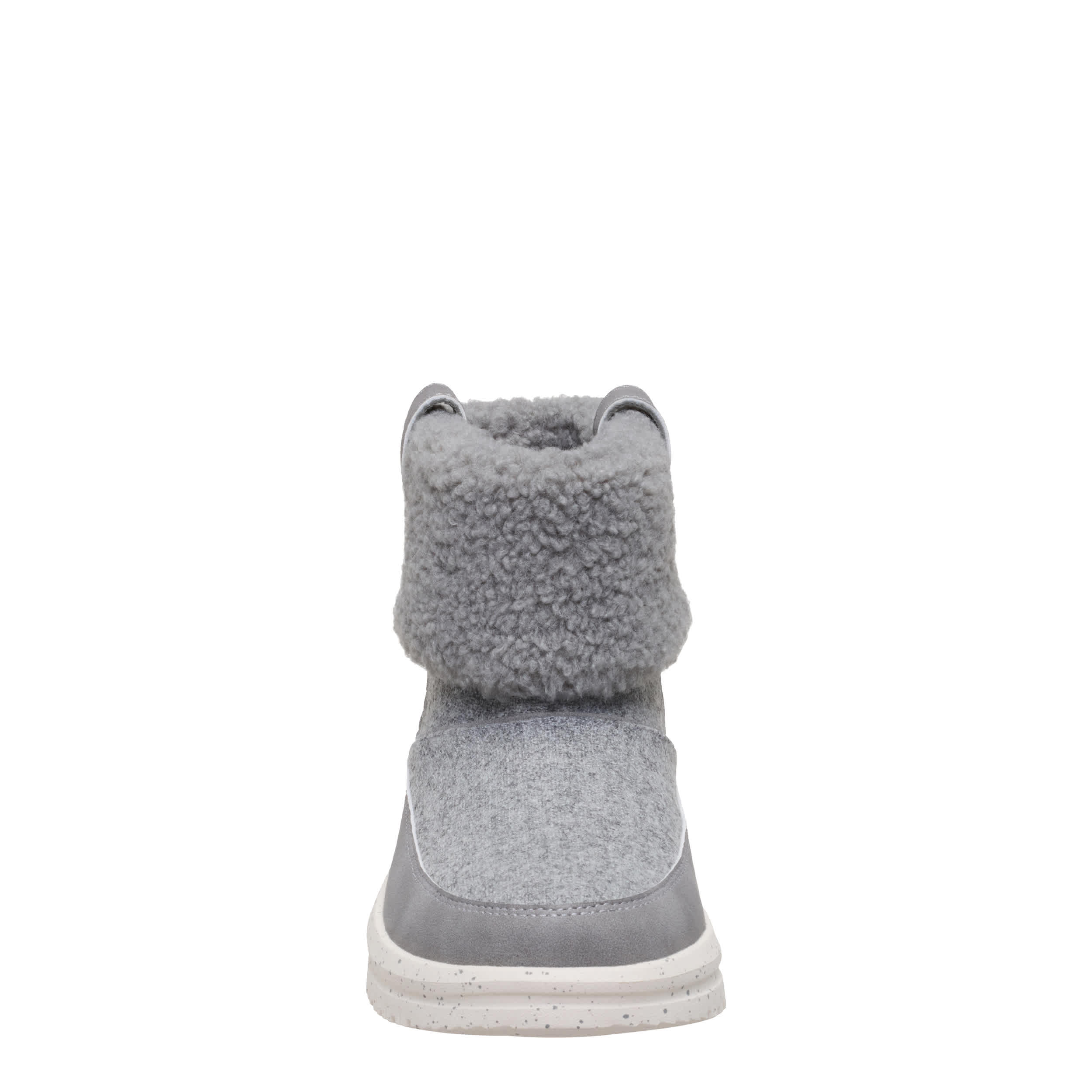 The HEYDUDE Camden Cuff Wool Cozy boot keeps you "still-in-bed" cozy. With wool & faux suede upper featuring dual pull tabs and plush sherpa for warm comfort, this easy-on boot is travel ready. A cushy insole and speckled midsole keep your winter tasks confidently on schedule.
